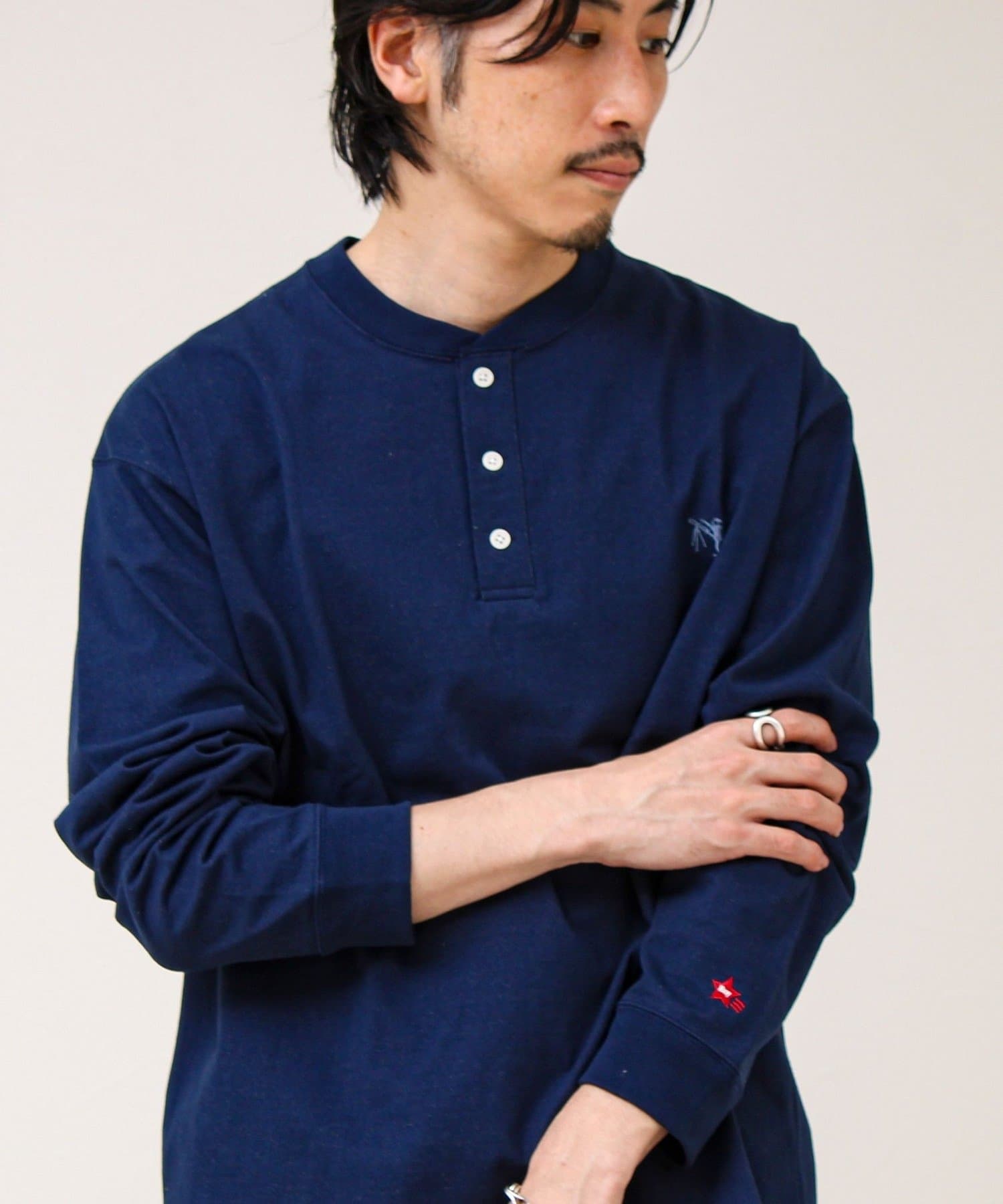 さりげない刺繍が効く、ヘンリーネックの大人ロンT