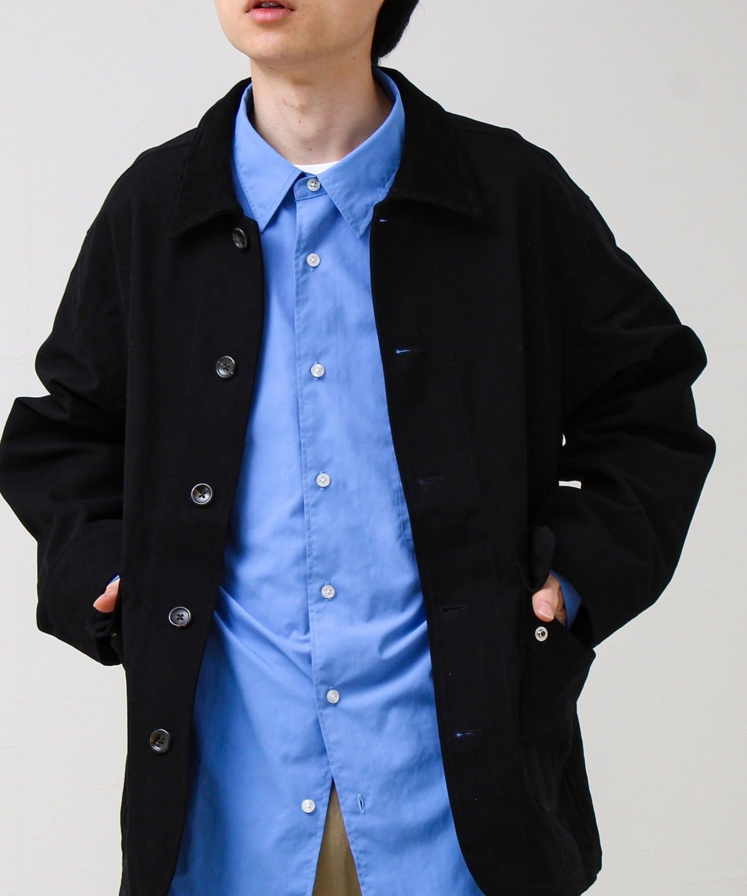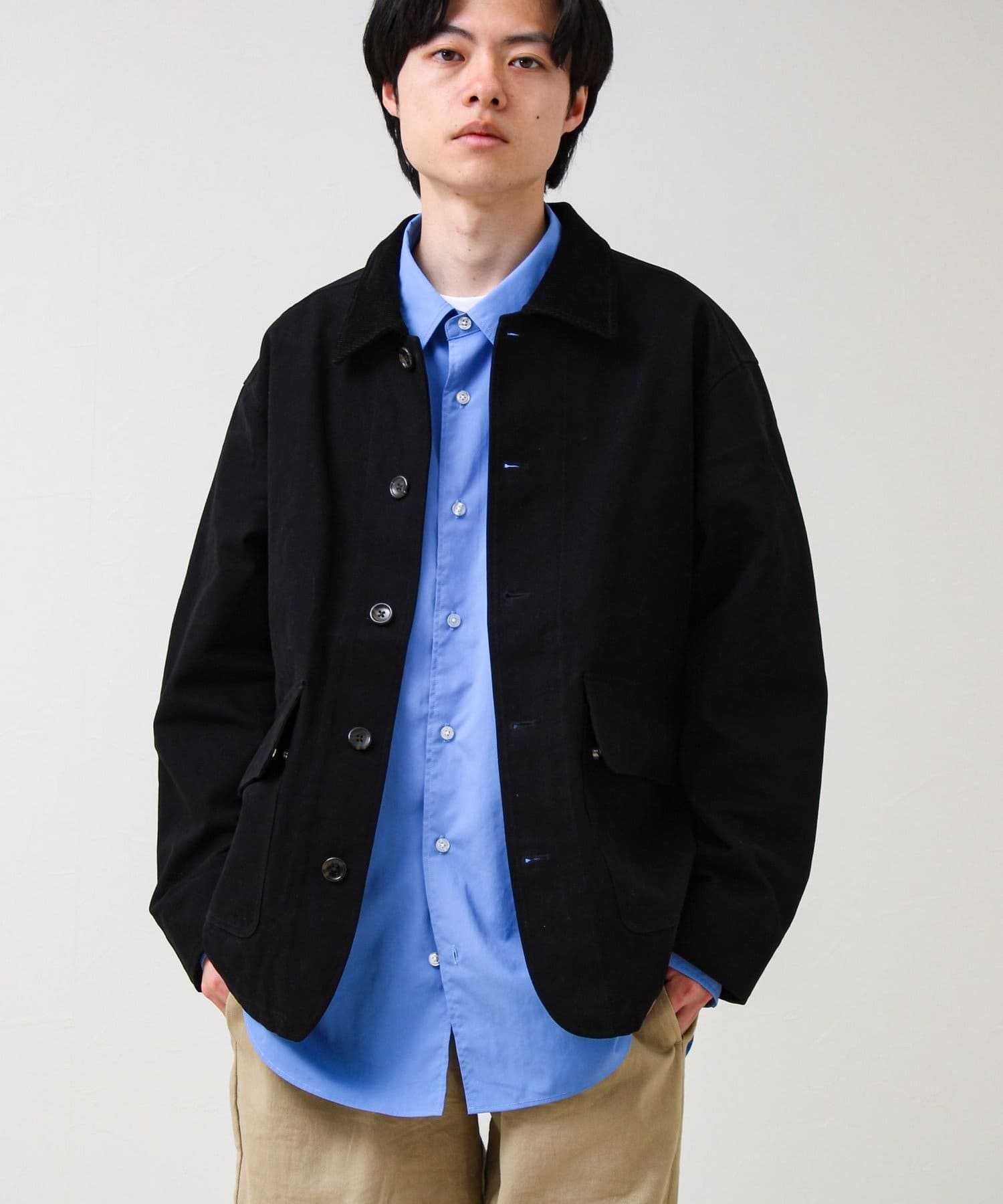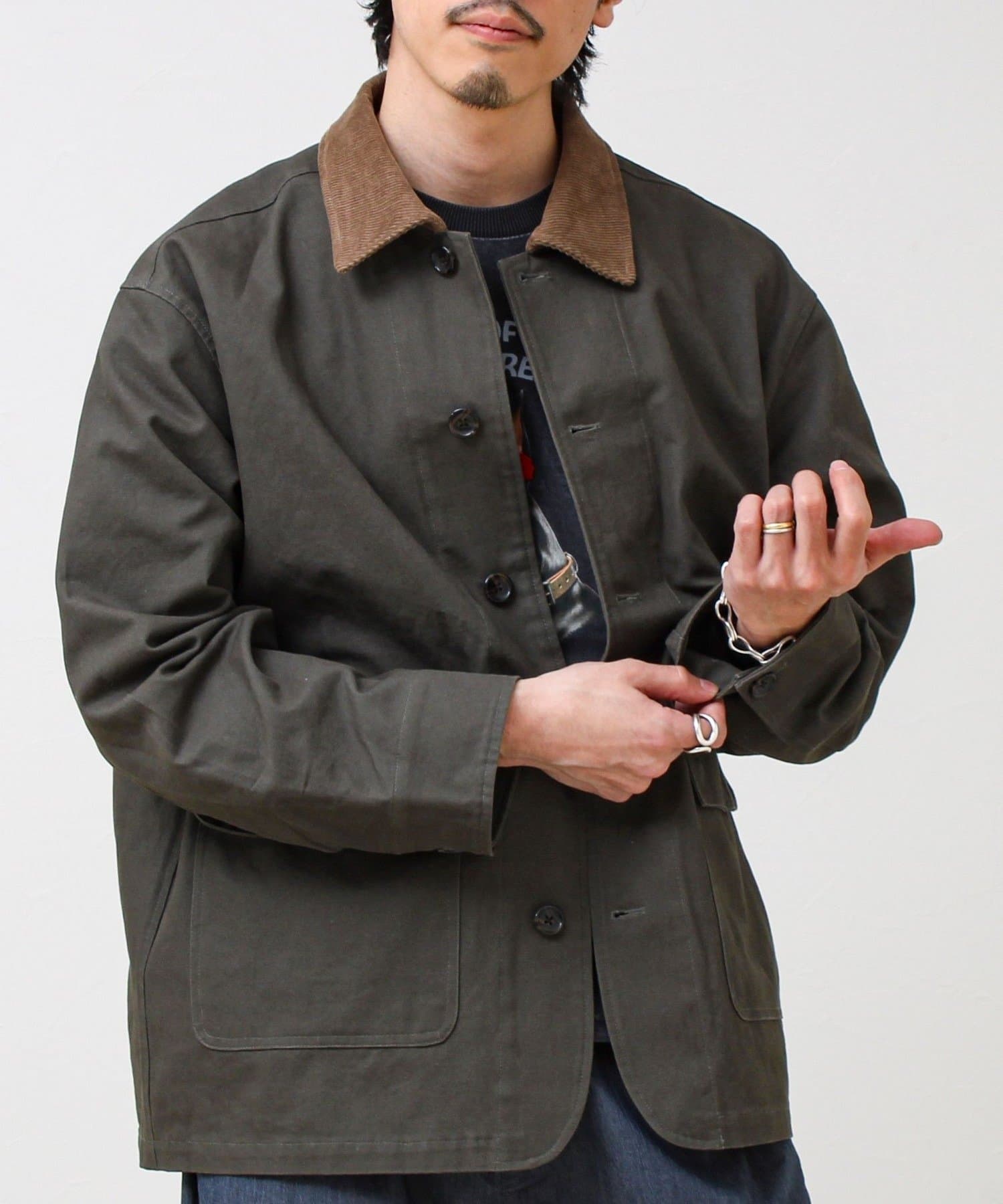 ・ダック生地の無骨さ×衿コーデュロイの品の良さで、ワークだけど大人っぽく着られる一着