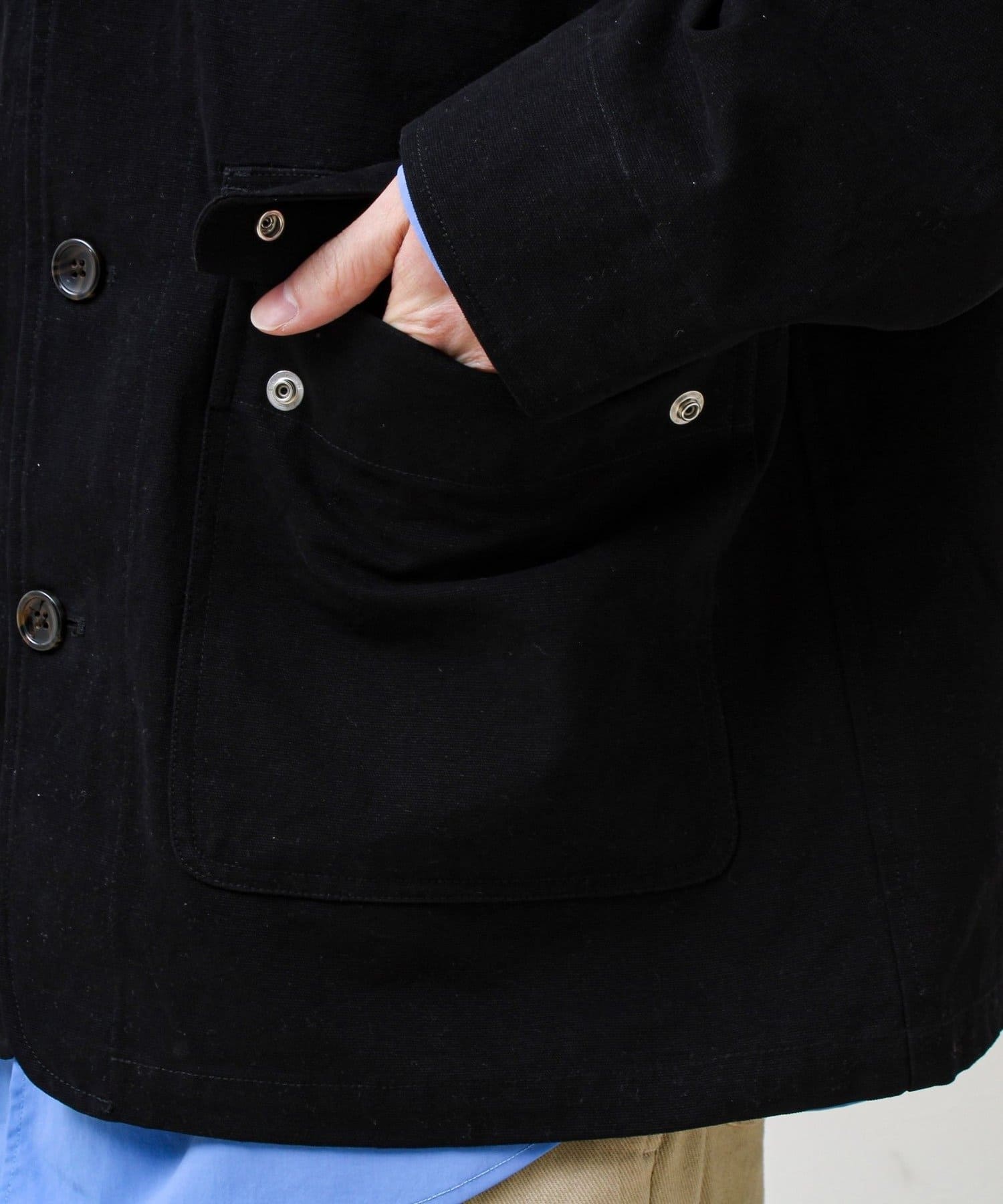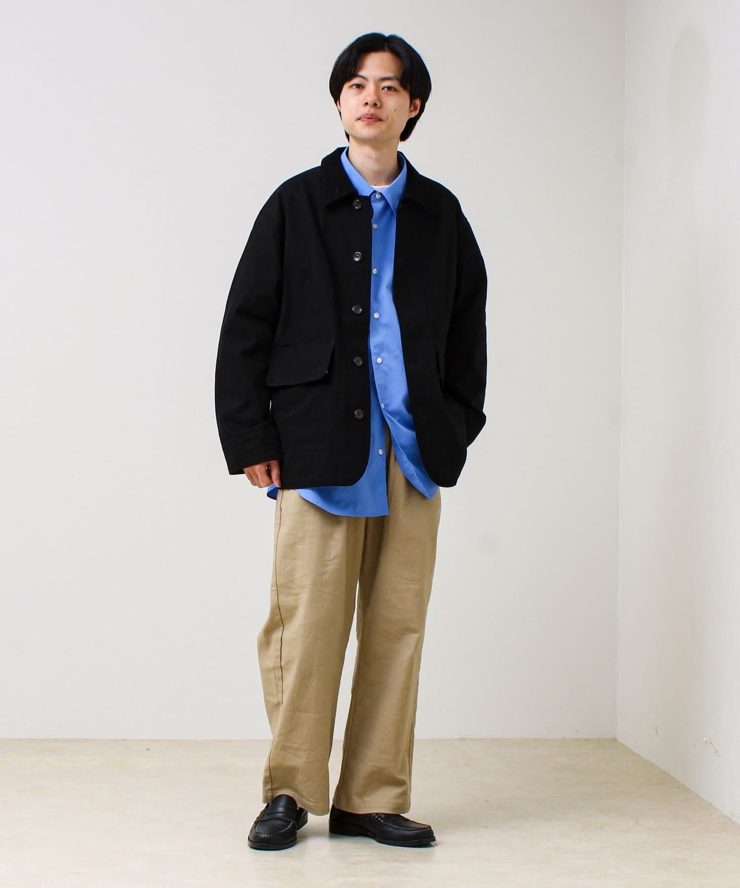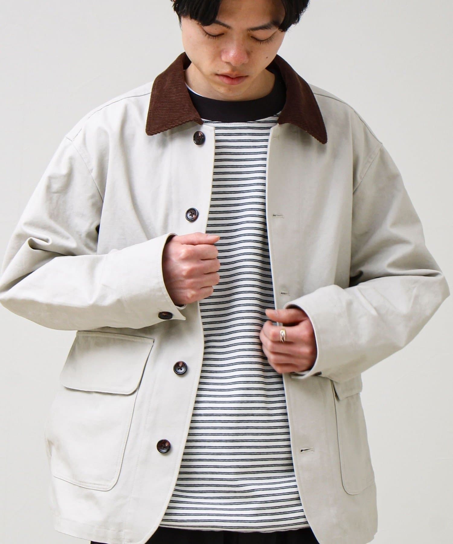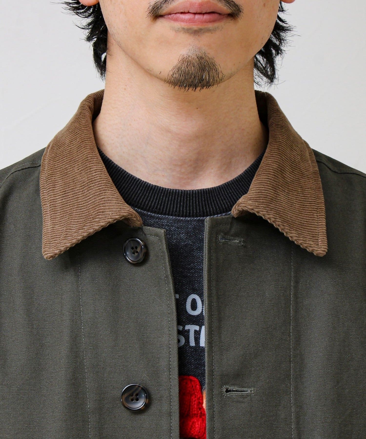・ダック生地の無骨さ×衿コーデュロイの品の良さで、ワークだけど大人っぽく着られる一着