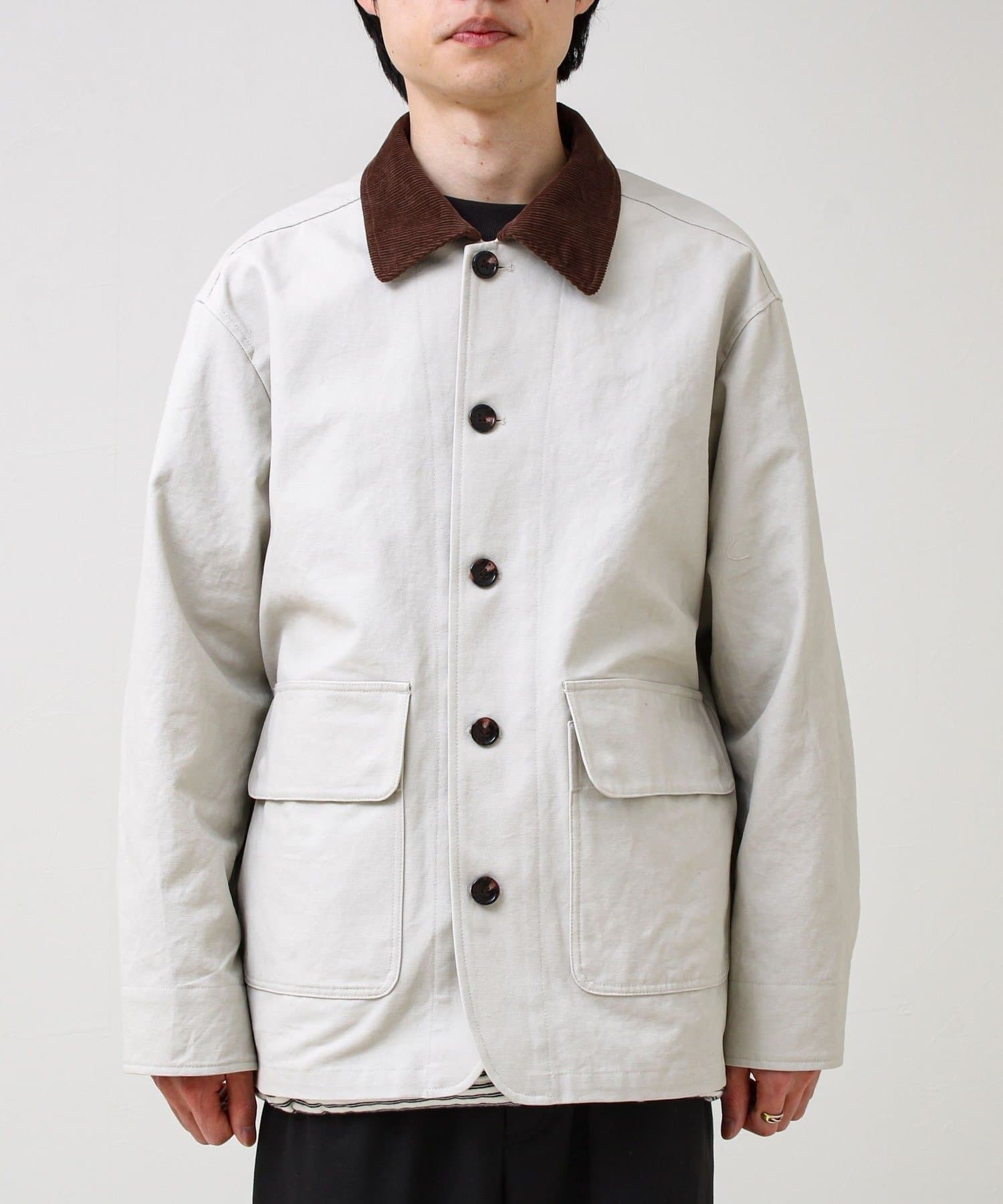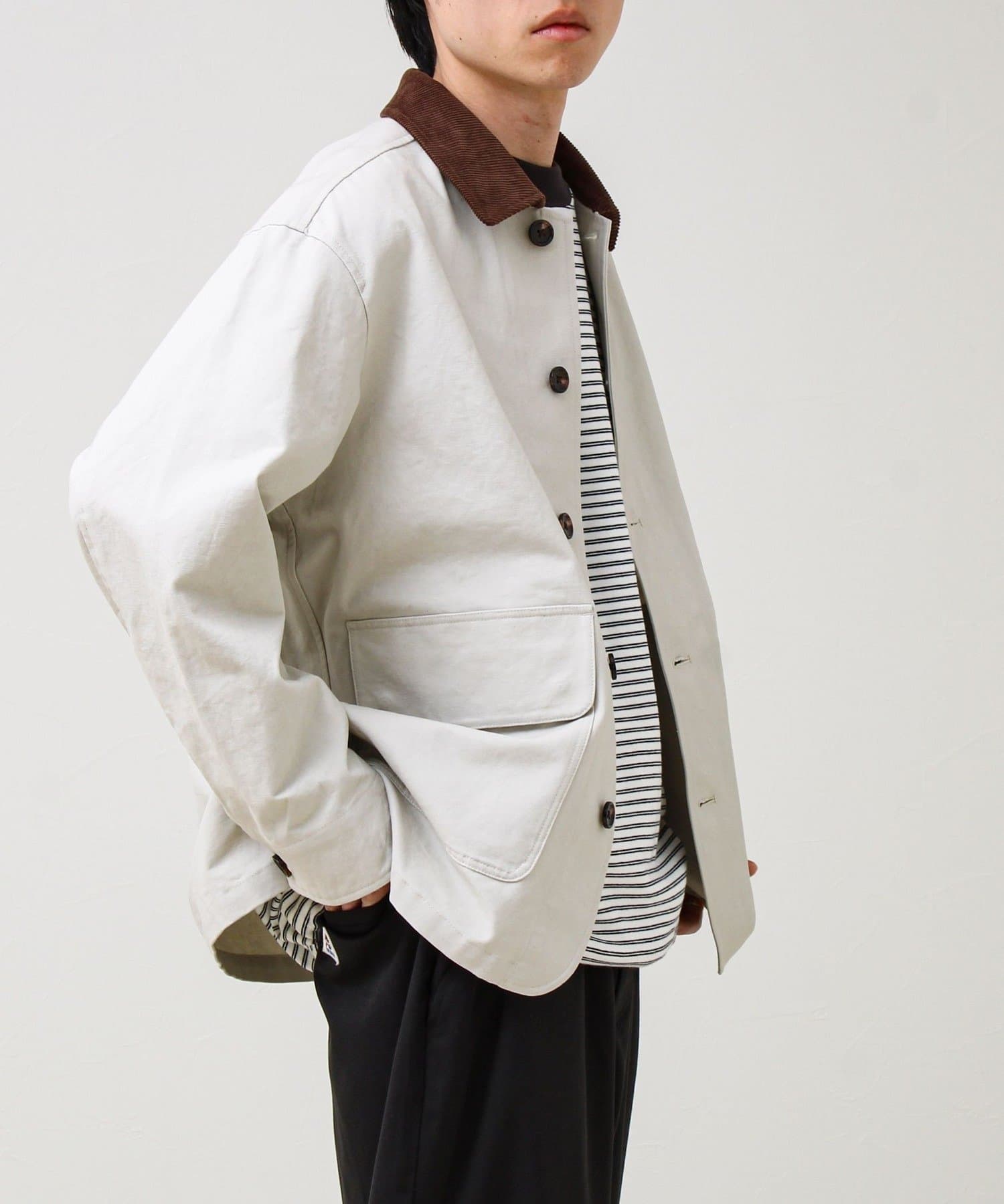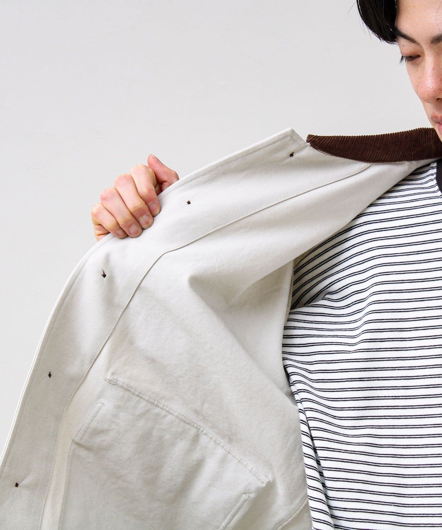 ・ダック生地の無骨さ×衿コーデュロイの品の良さで、ワークだけど大人っぽく着られる一着