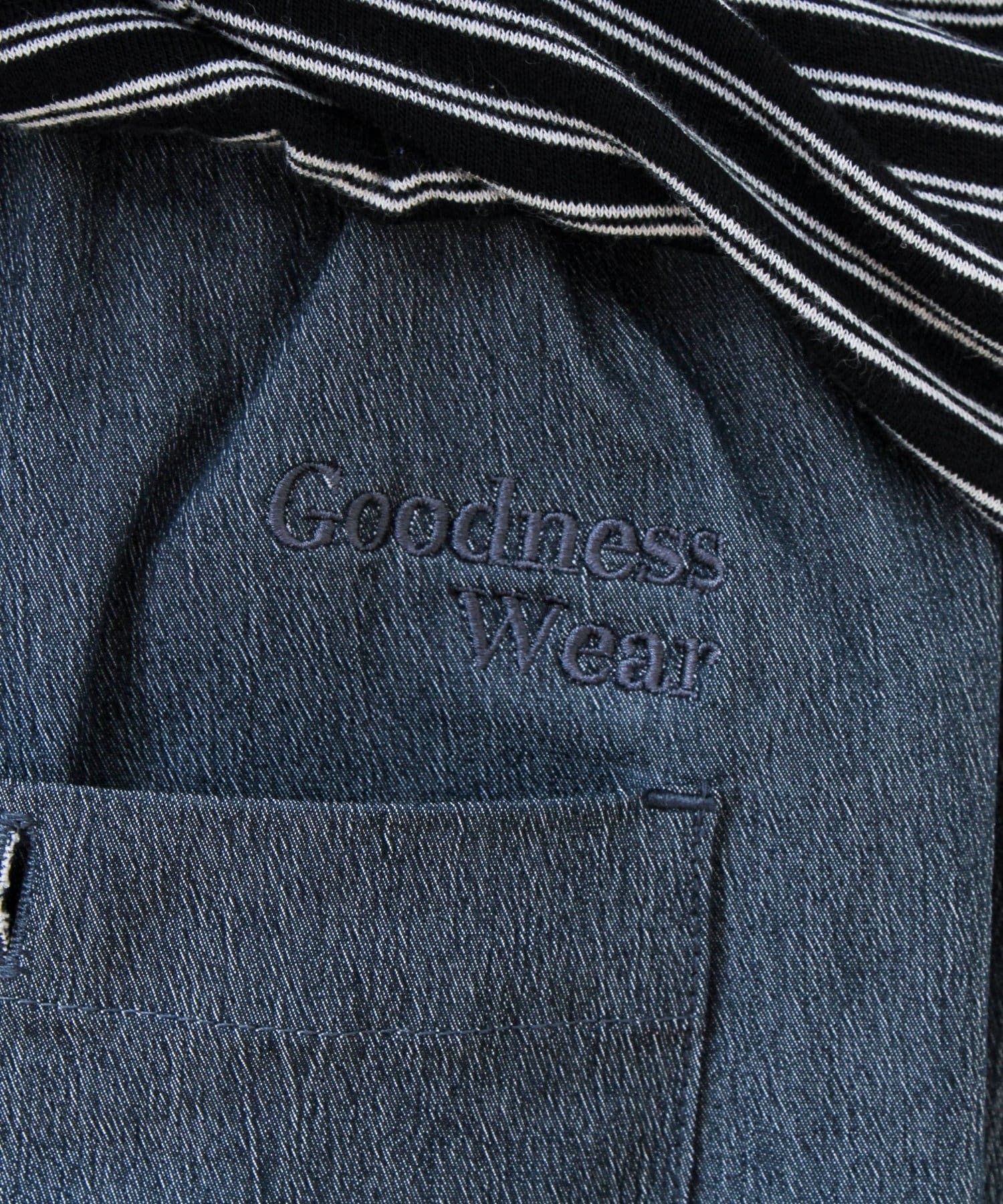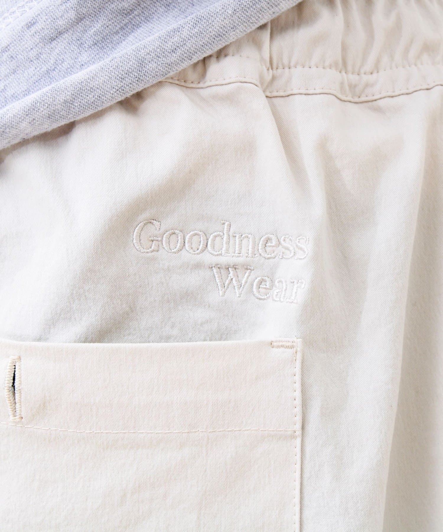 ・バックの「Goodness Wear」刺繍がさりげないアクセント