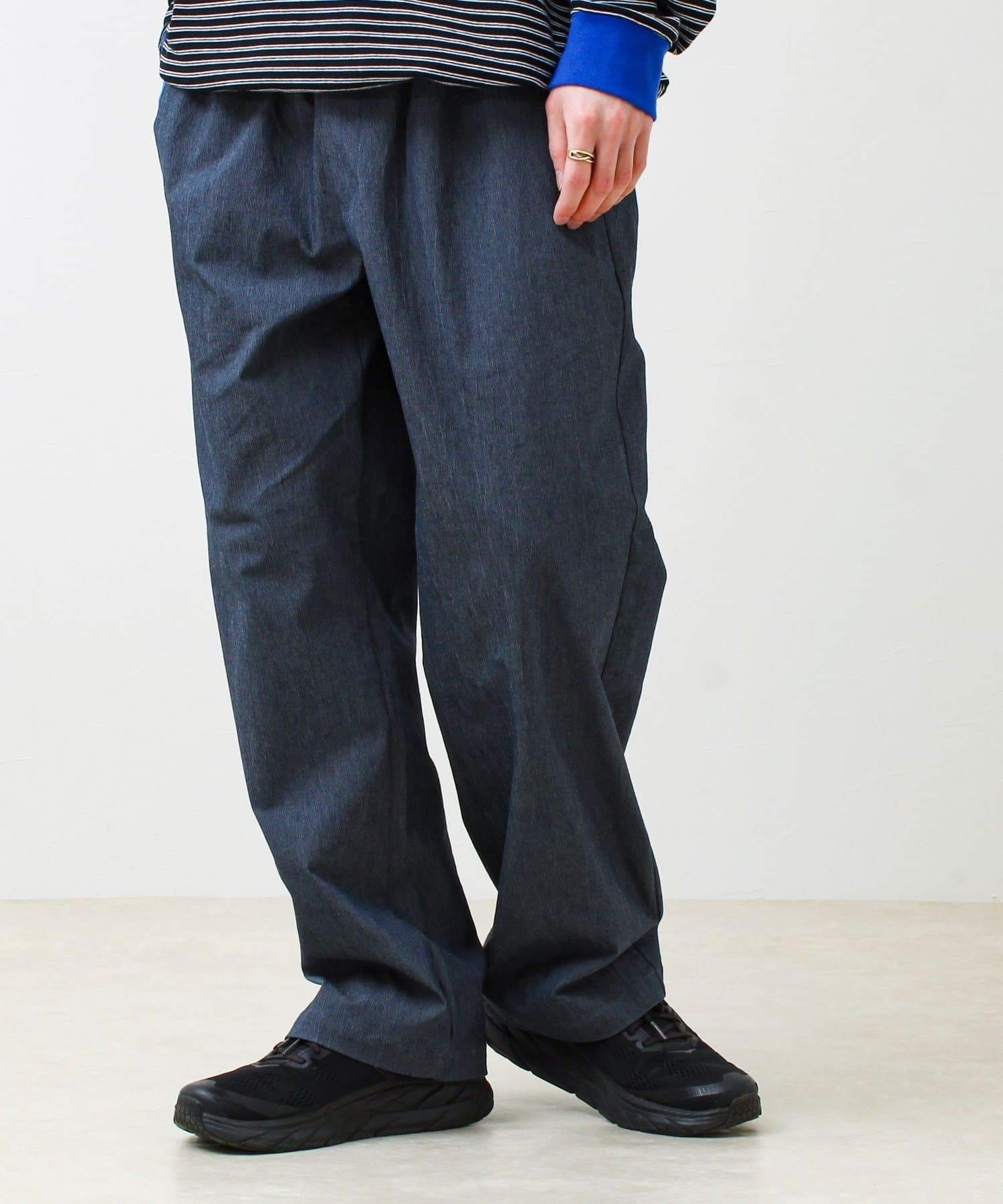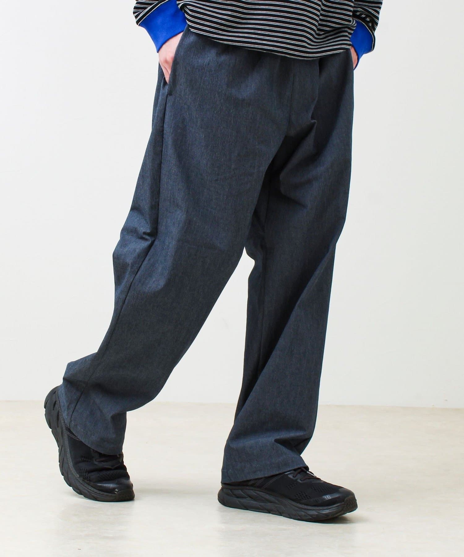 ボリュームトップスとも相性がよく、スウェット・シャツ・ジャケットまで幅広く対応。