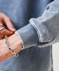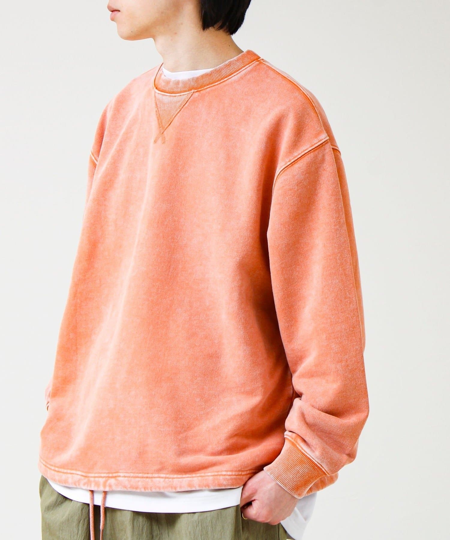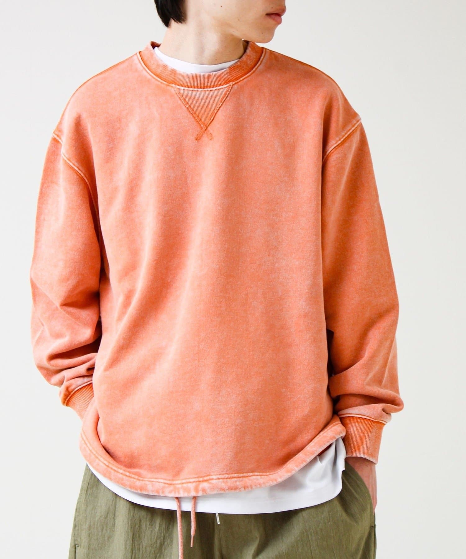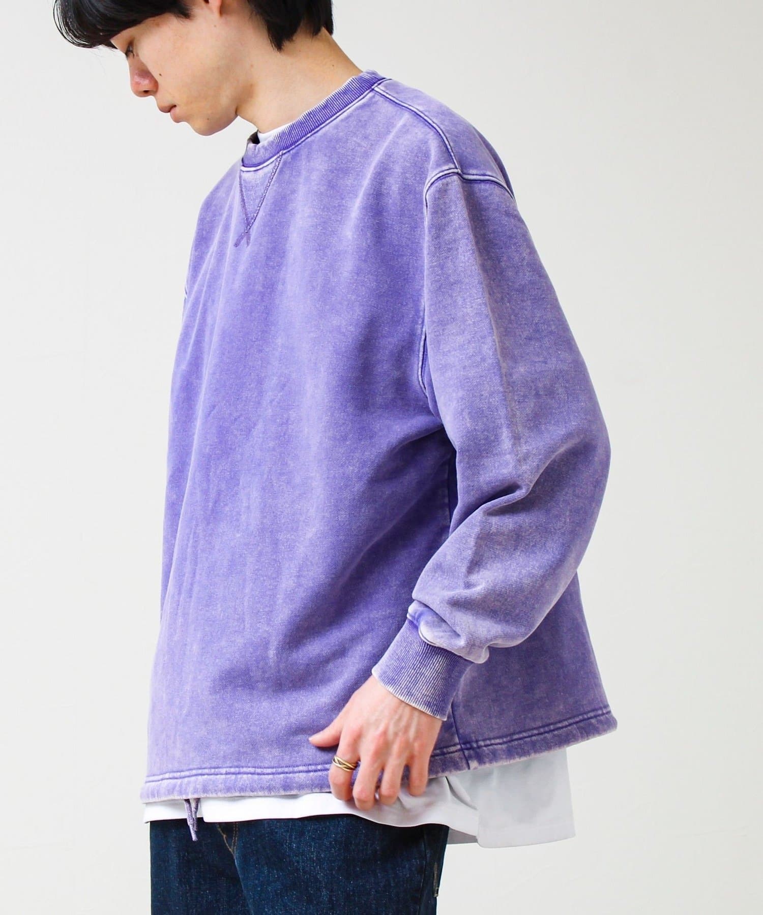 TC裏毛スノーパウダー素材を使用し、表面に粉をふいたようなフェード感のある仕上がり。新品なのに着古したようなヴィンテージライクな表情が魅力です。