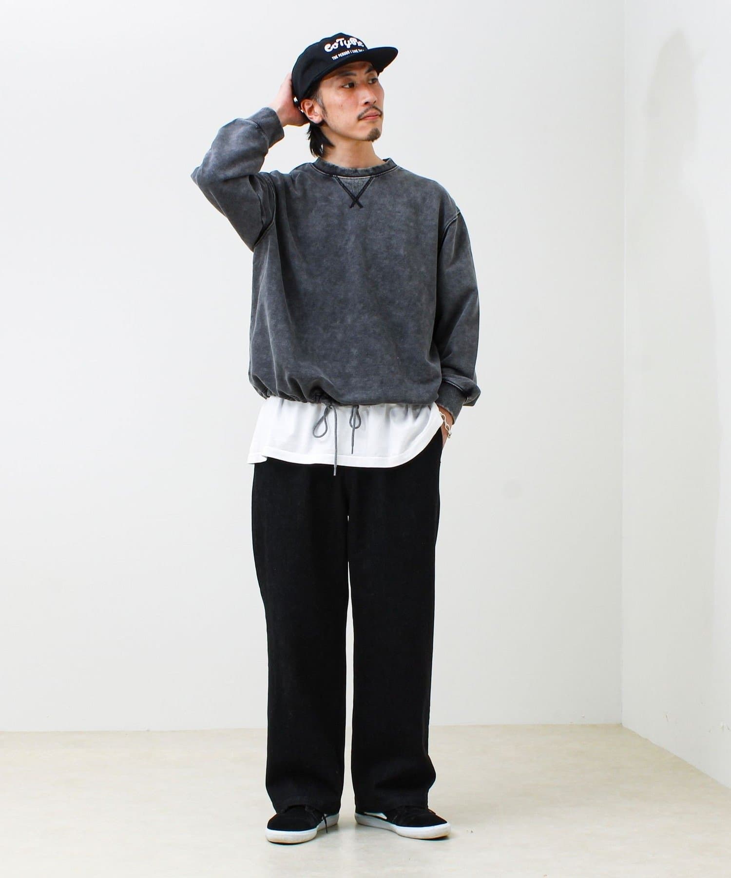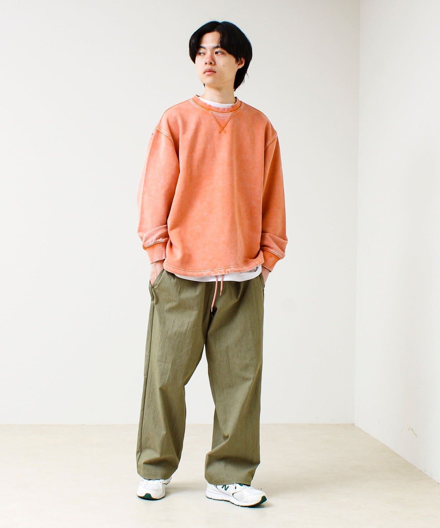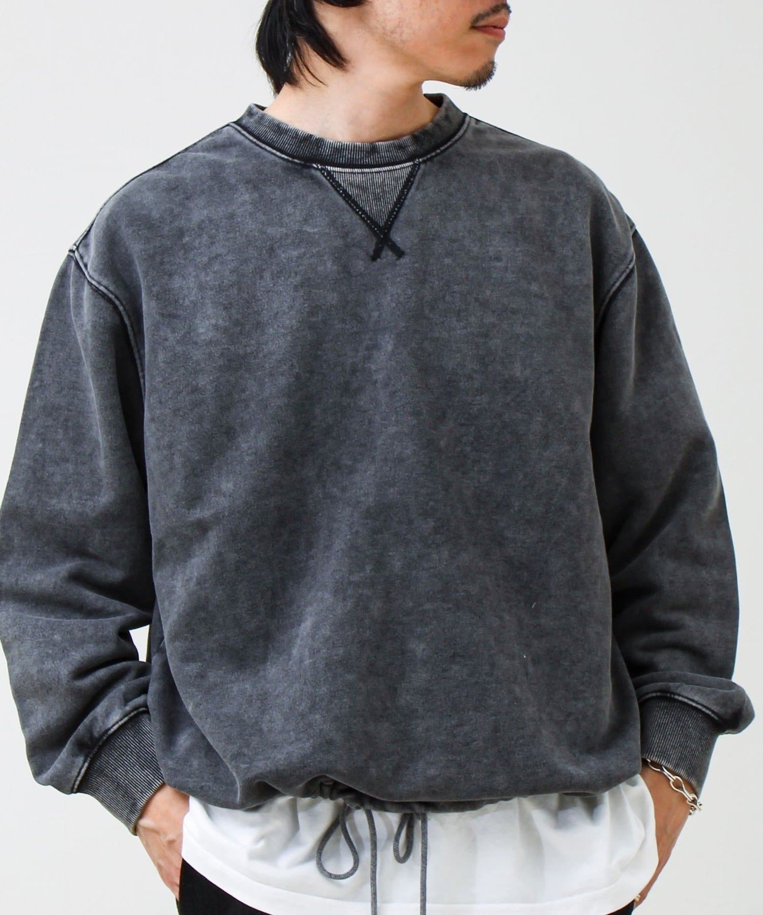 色ムラ感が雰囲気抜群。裾ドローコード付きのヴィンテージライク裏毛スウェット