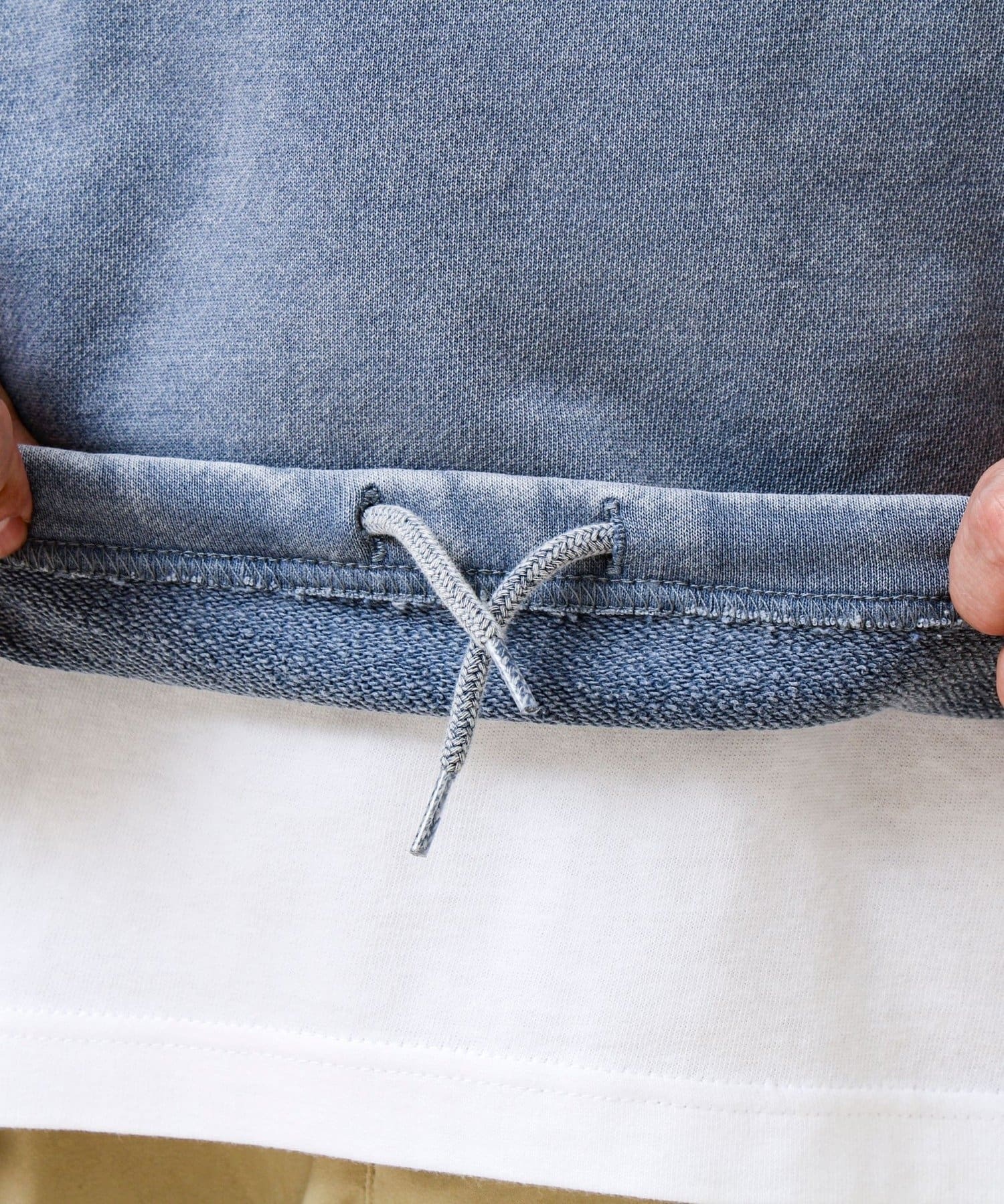 #GLOSTER #裏毛スウェット #ヴィンテージ風 #フェード加工 #ドローコード付き #無地スウェット #大人カジュアル #レイヤードコーデ #ユニセックス #26SS #春スウェット