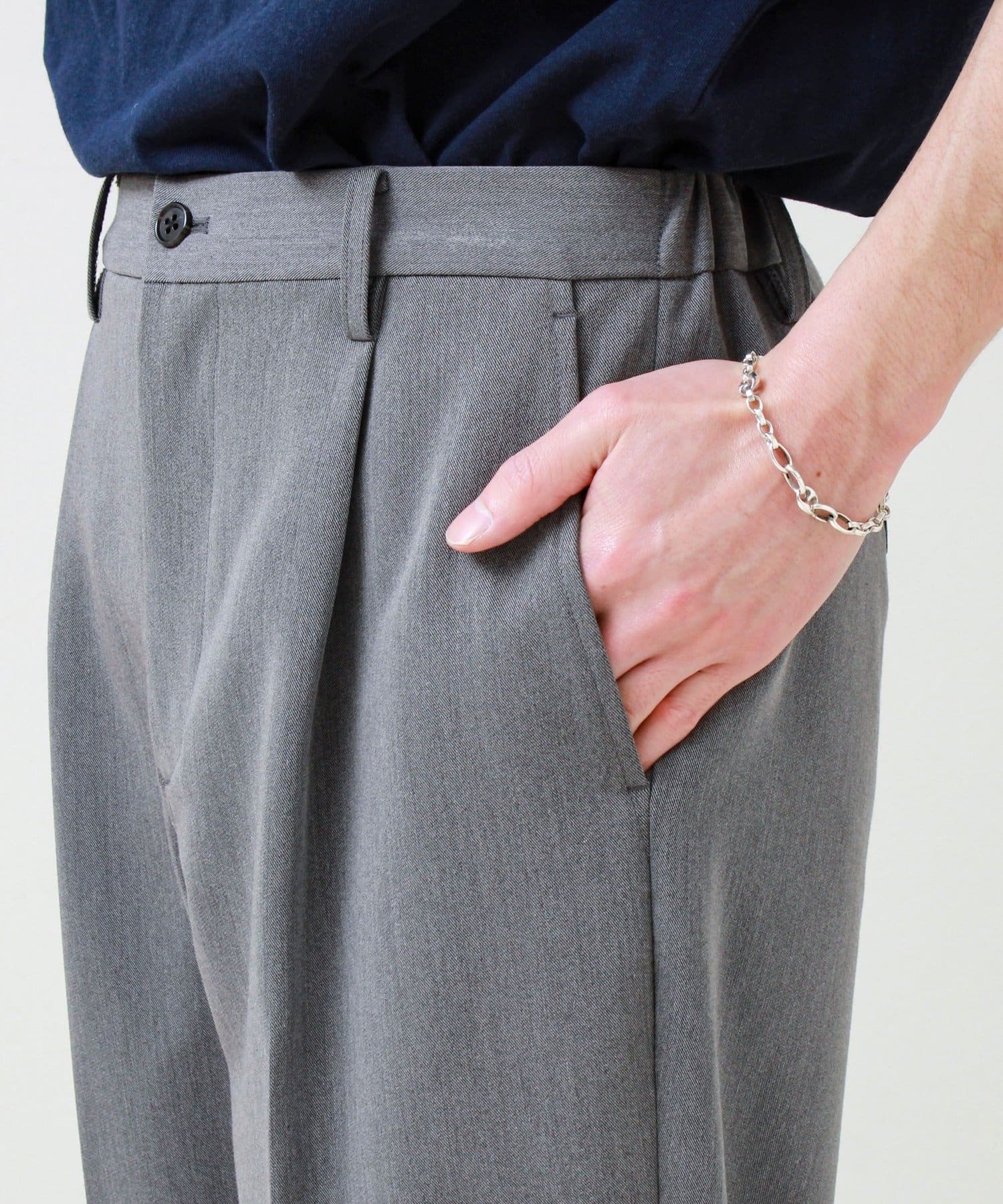 ・ベルトループ付きで、タックインスタイルやきれいめコーデにも対応