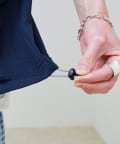 シルエット調整が可能で、丸みのあるシルエットやタックイン風の着こなしも楽しめる。