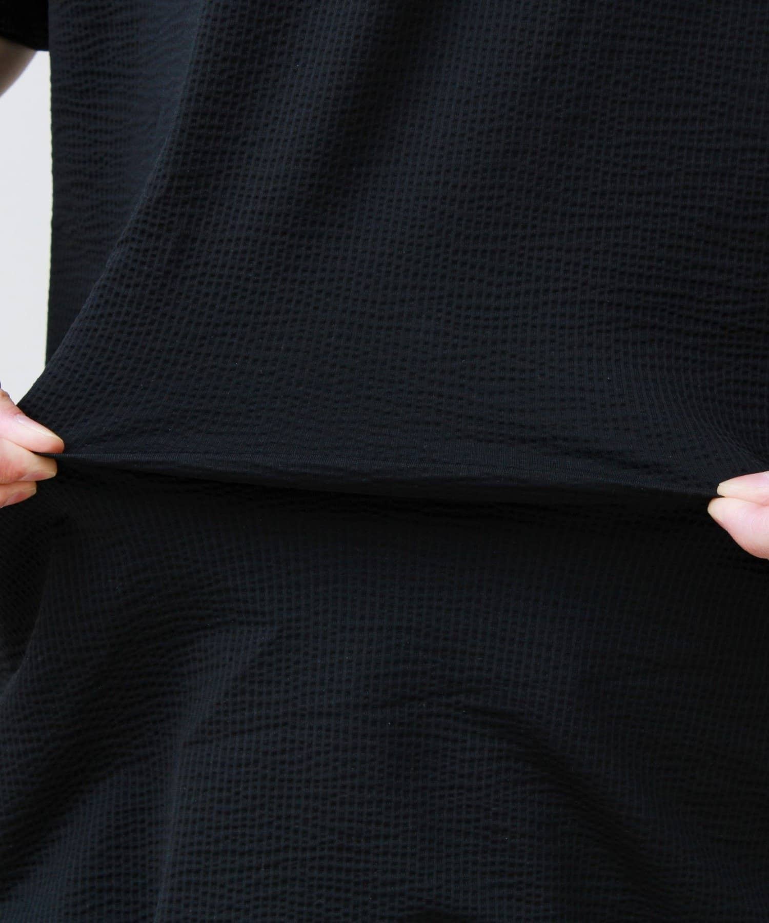 凹凸感のある生地で、肌離れが良く軽やかな着心地。夏でも快適に着用可能。