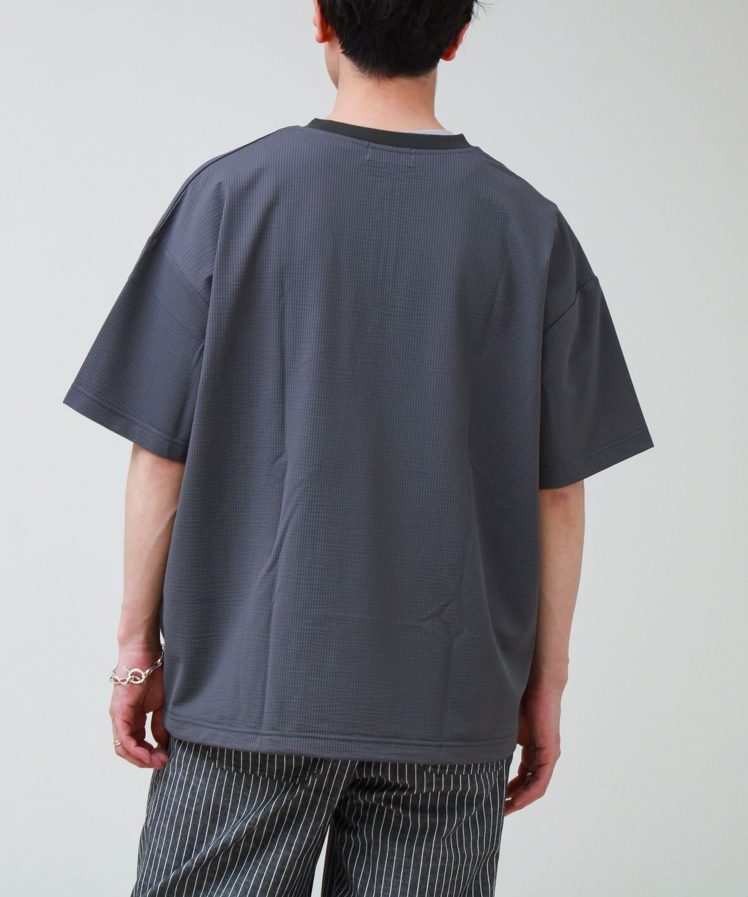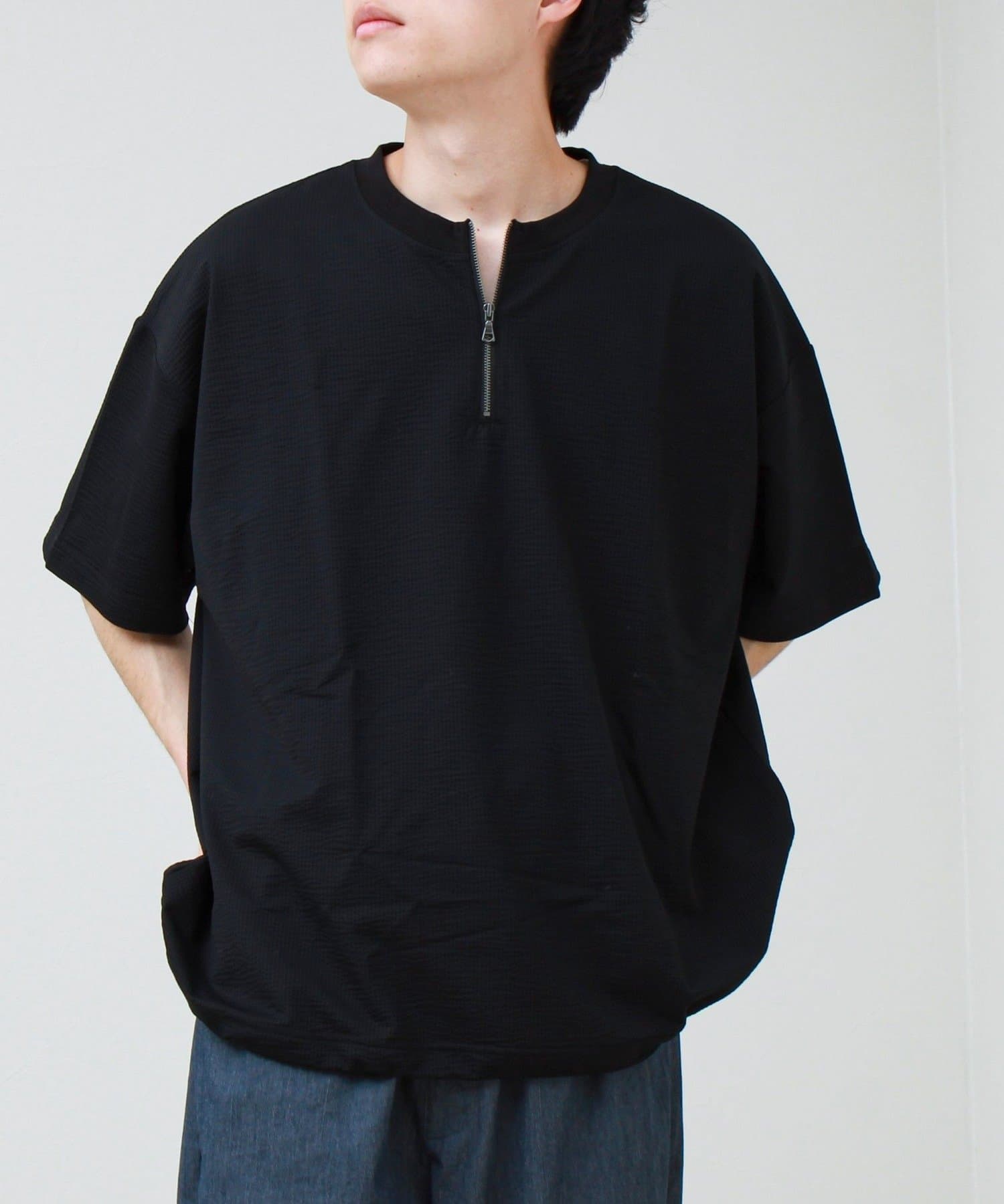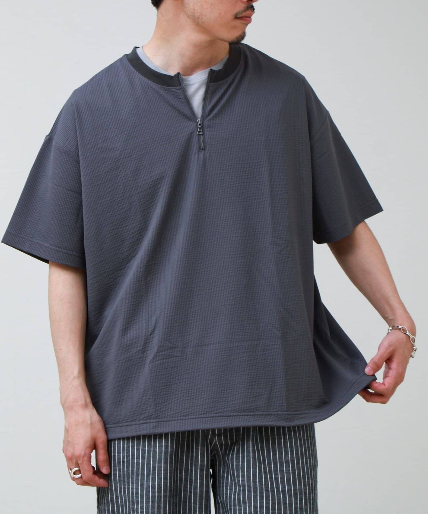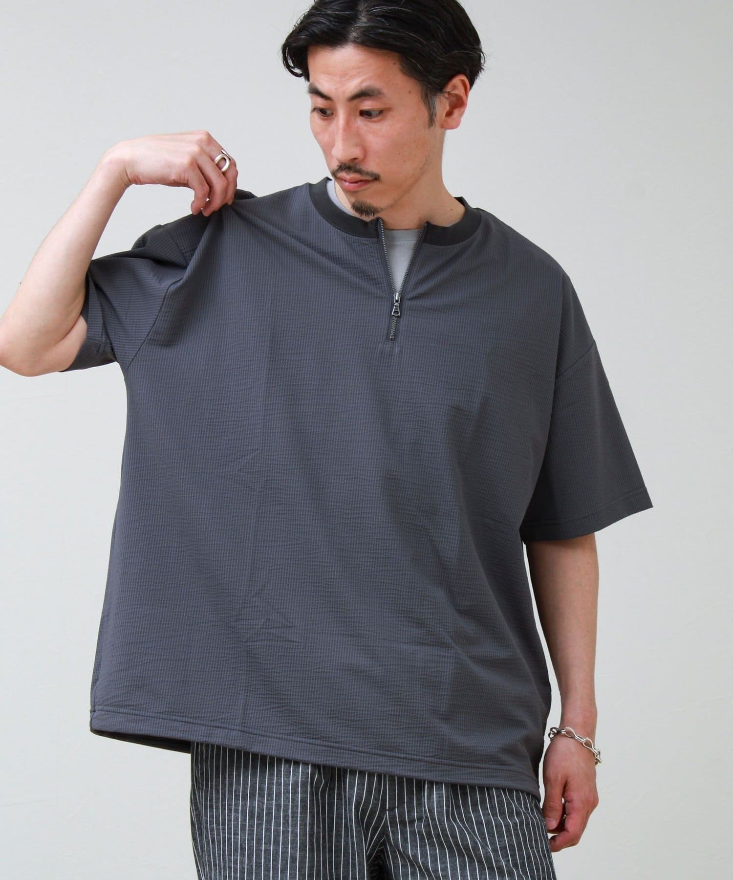 TOP > FREDY & GLOSTER > メンズ > トップス > Tシャツ/カットソー > カットサッカー ハーフジップTシャツ