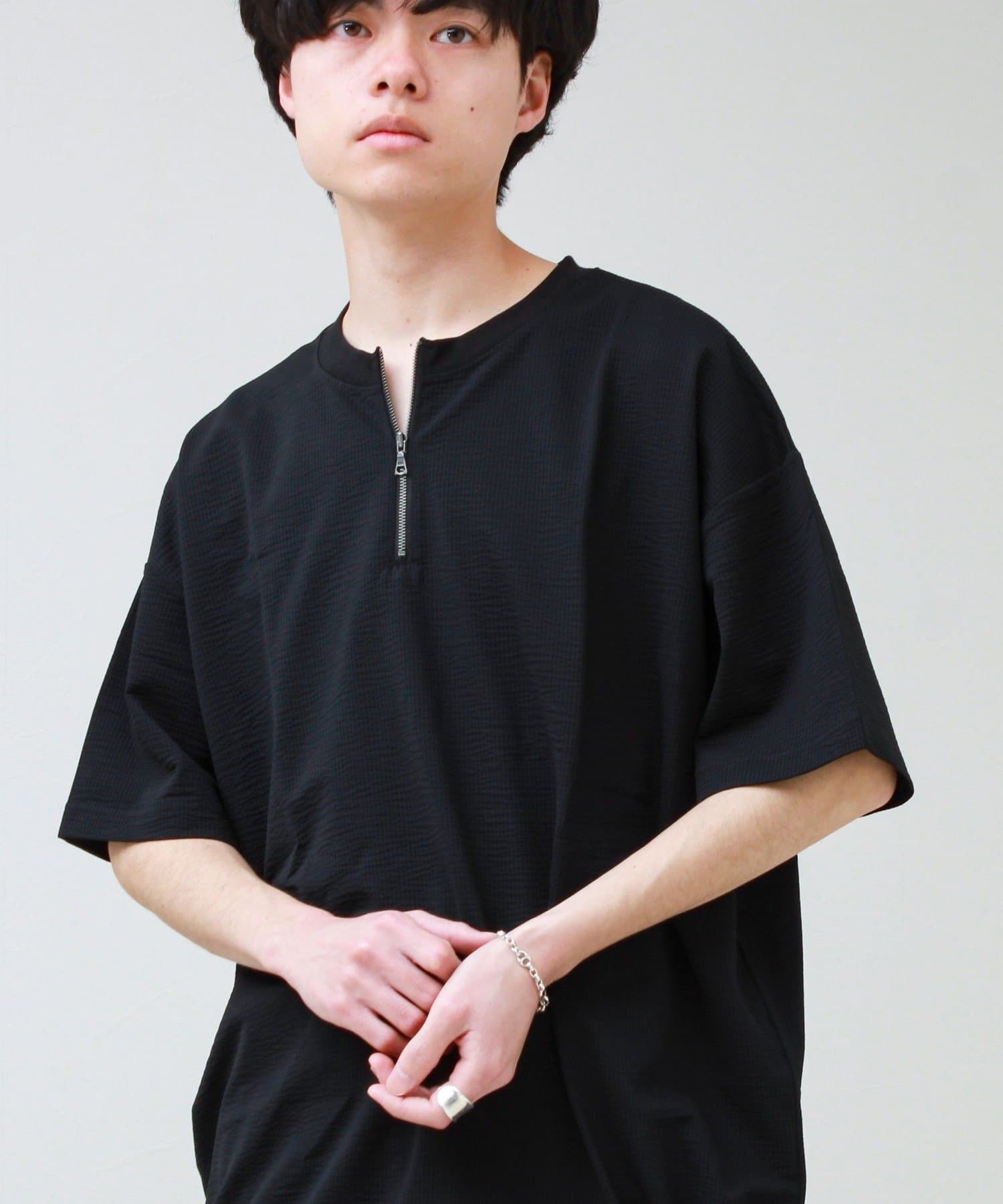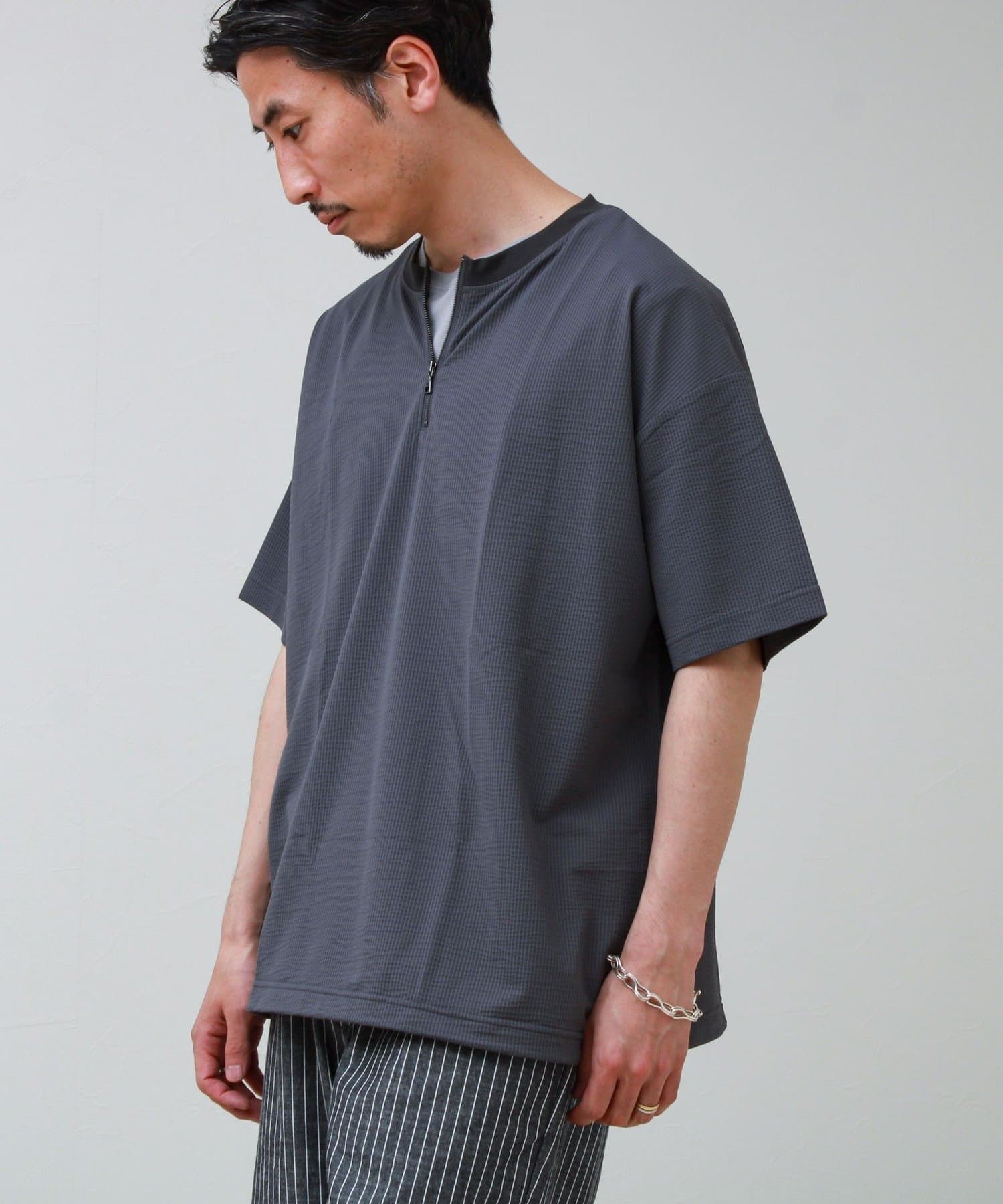 FREDY & GLOSTER(フレディ アンド グロスター) カットサッカー ハーフジップTシャツ