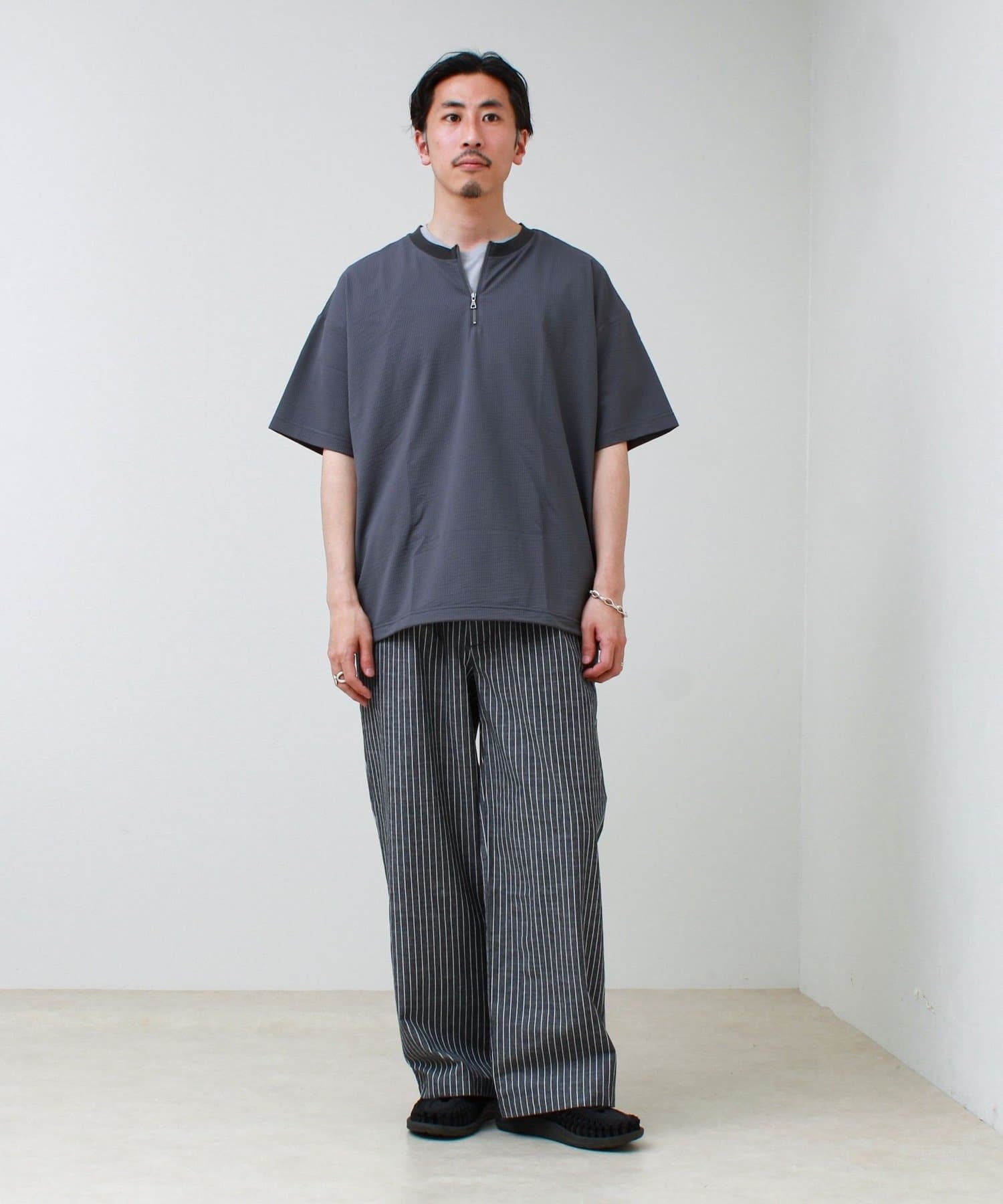 #GLOSTER #ハーフジップ #カットサッカー #機能素材 #無地T #ワイドシルエット #リラックスコーデ #大人カジュアル #シンプルコーデ #夏服コーデ #ユニセックス #レイヤードスタイル