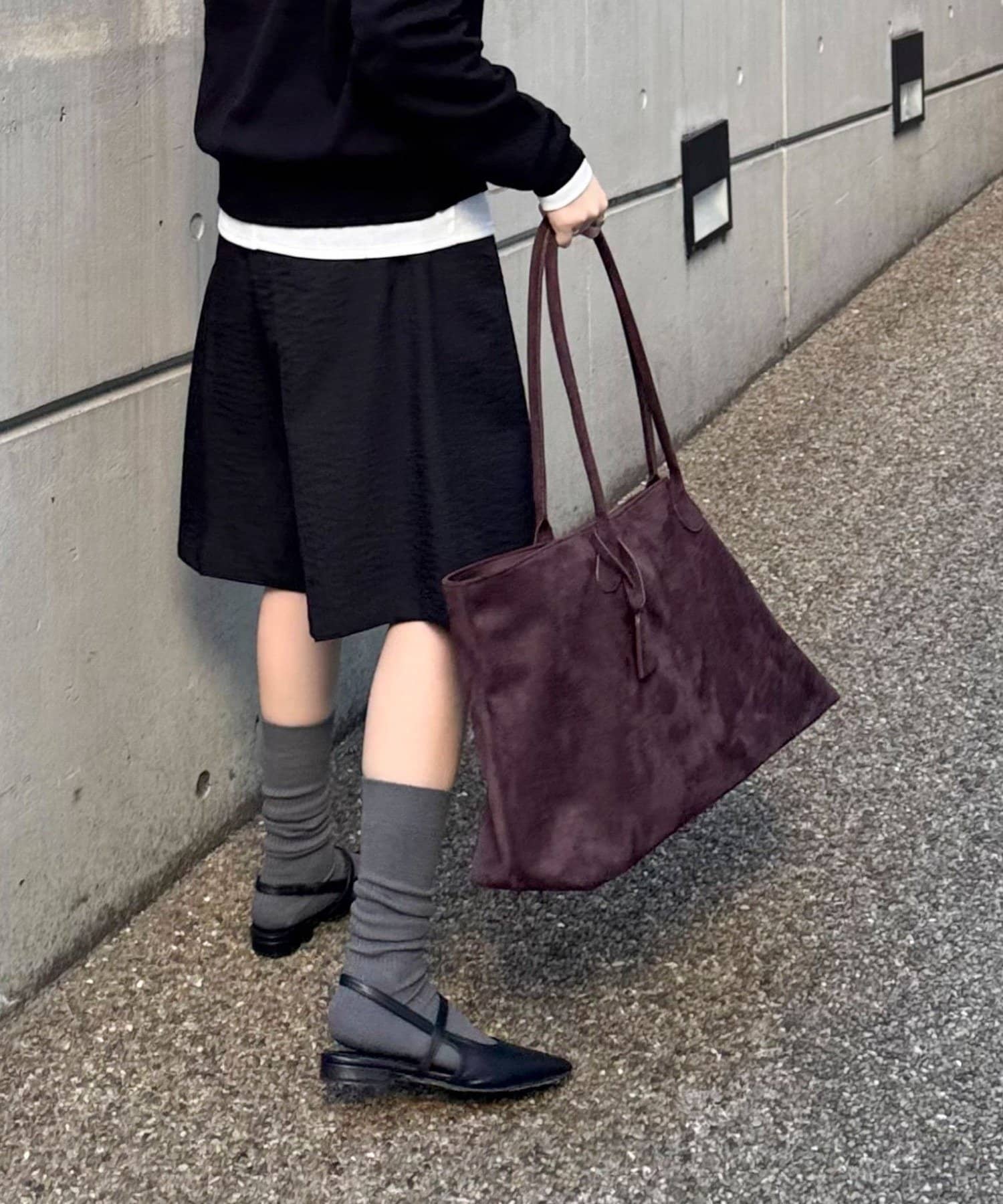 ・なめらかな質感が魅力のフェイクスエード素材を使用したトートバッグ