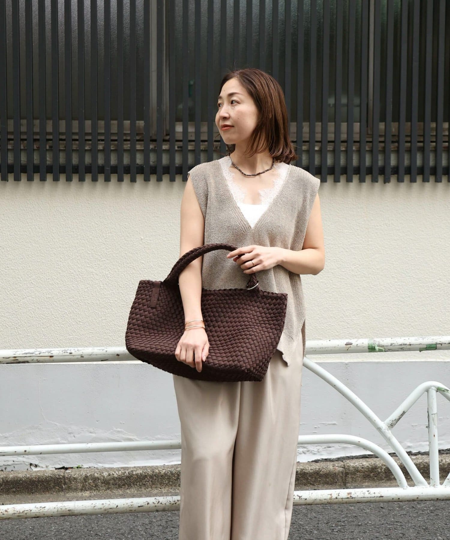 ・たっぷり入るサイズ感ながら、メッシュ編みの素材が軽量感を演出