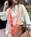 ・首元はもちろん、ビスチェ風やウエストに巻いたり、ヘアアレンジに取り入れたりなど、アイデア次第でさまざまなアレンジが楽しめます。