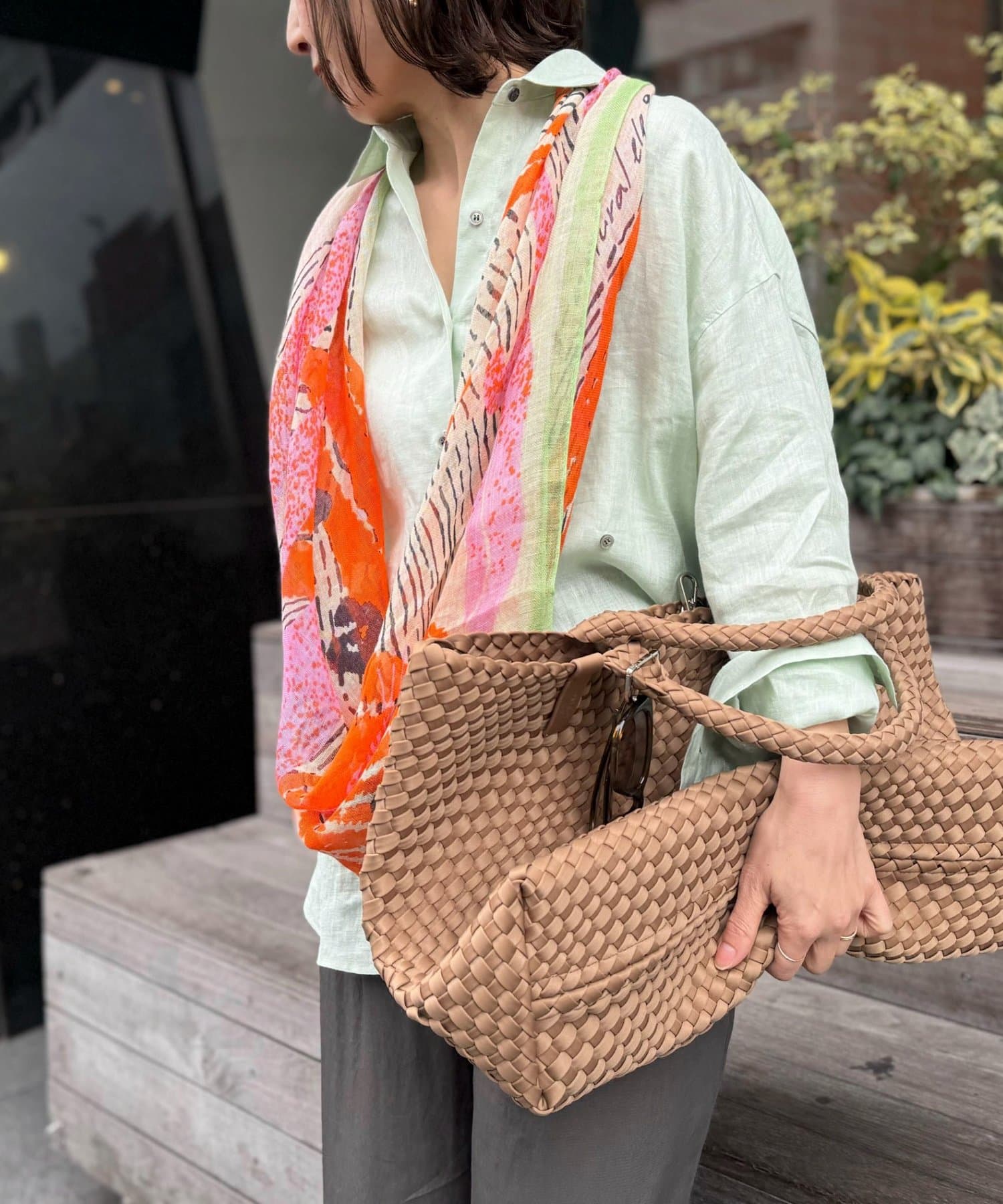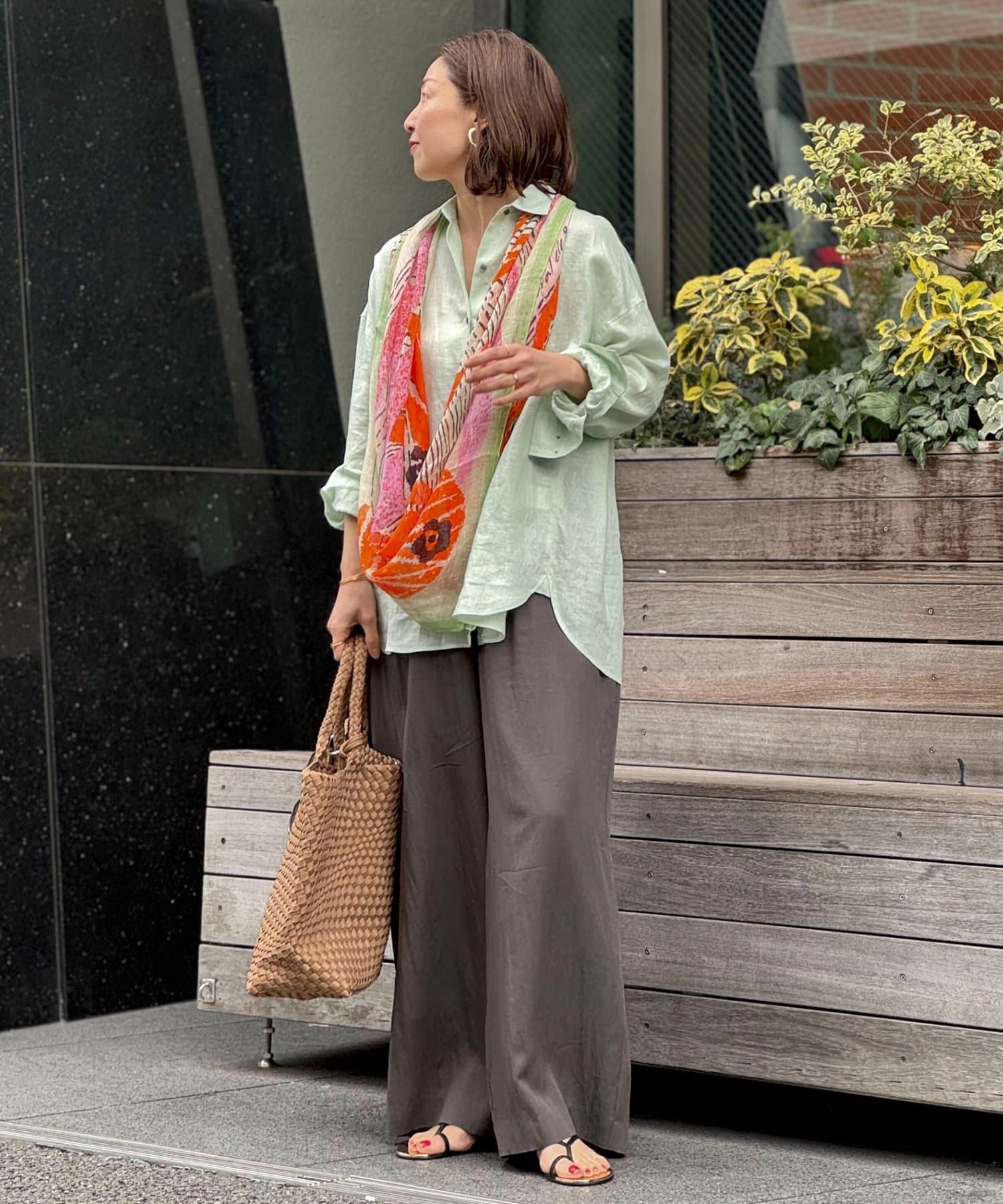 ・アーティスティックな色彩が特徴のリネンスカーフ