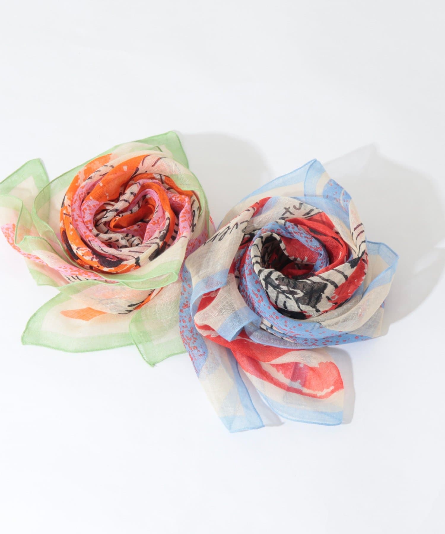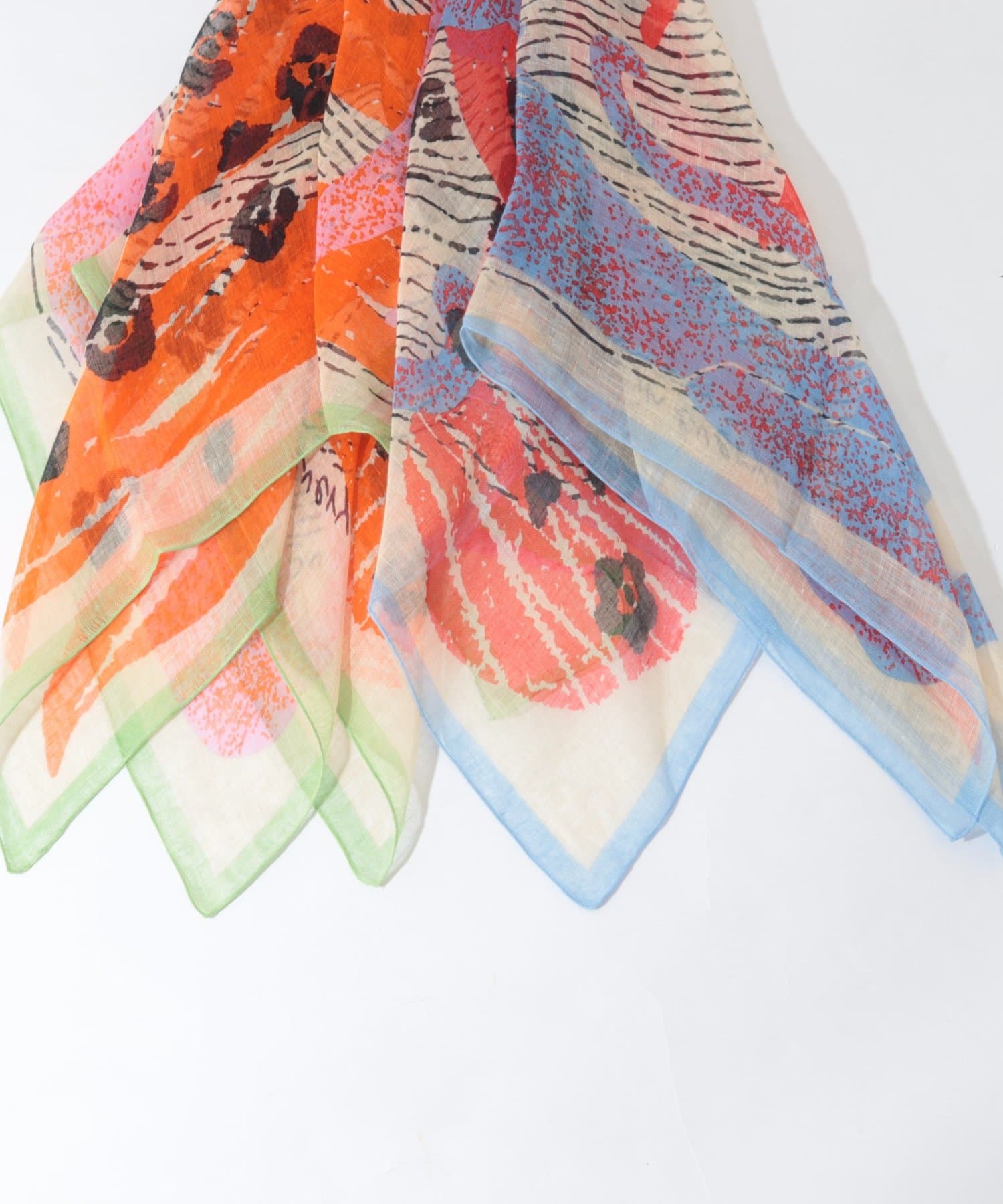 ・アーティスティックな色彩が特徴のリネンスカーフ