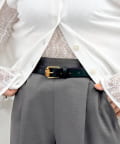 ・シンプルなコーディネートにこそ映える、洗練されたデザインのバンブーバックルベルト