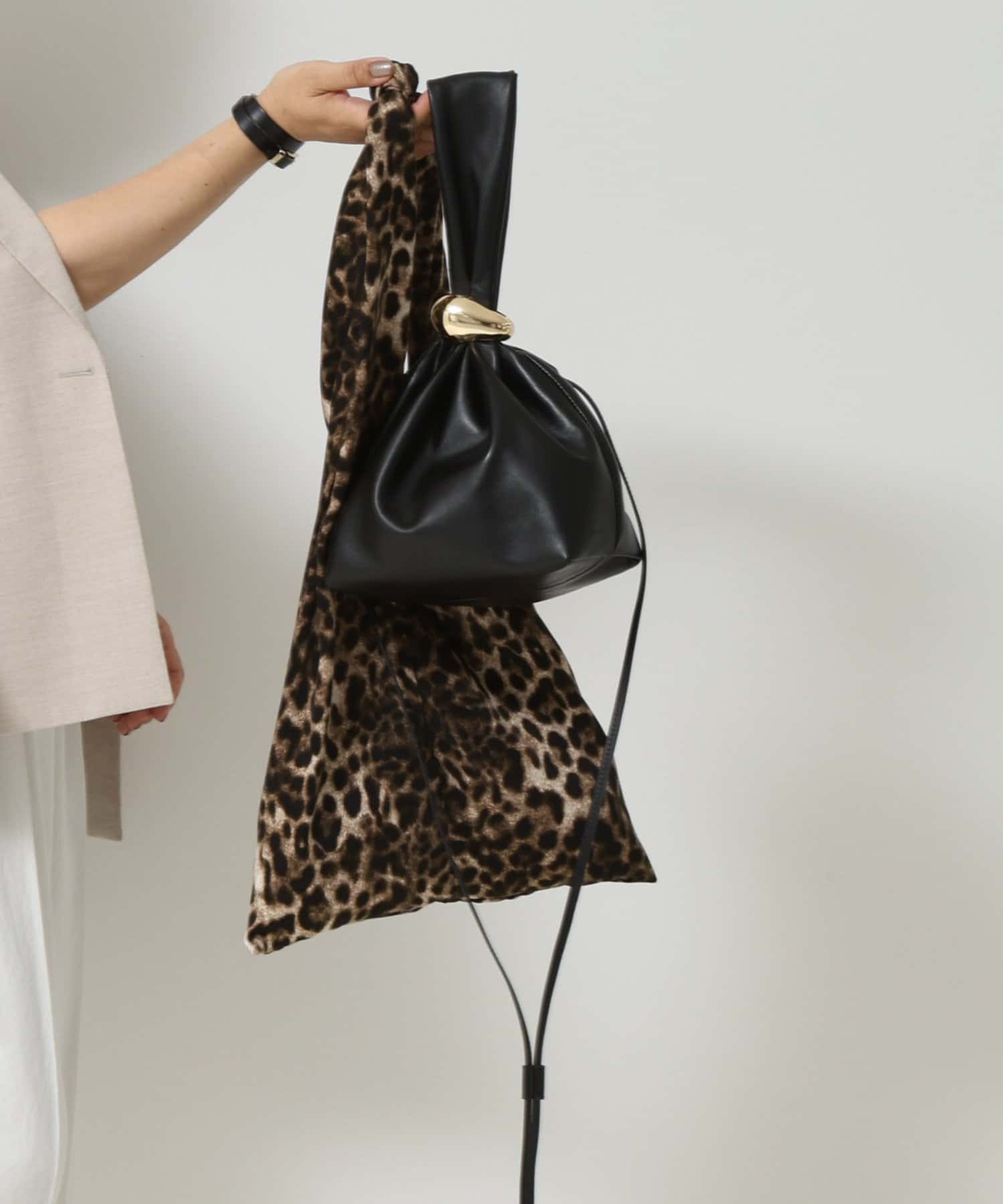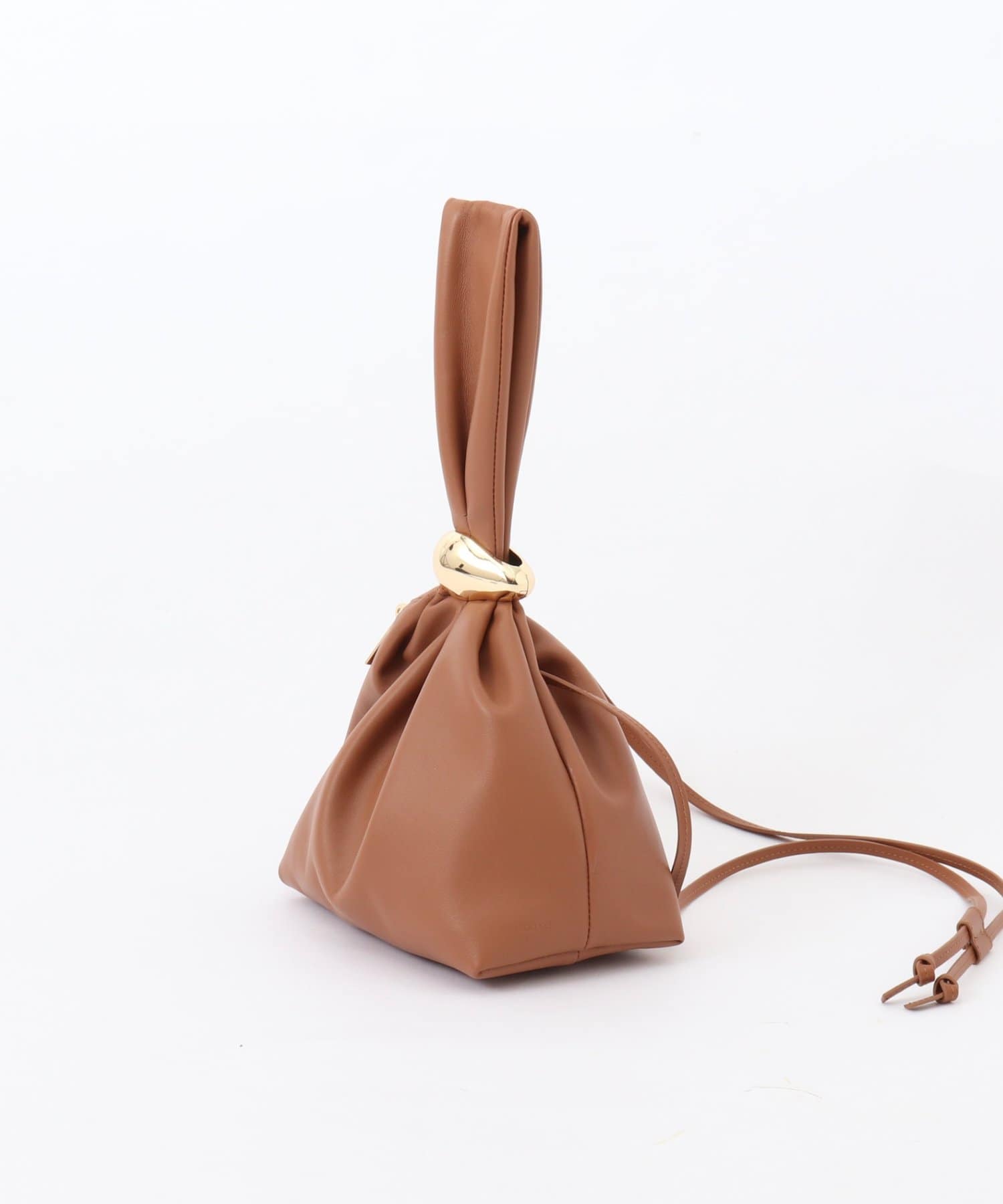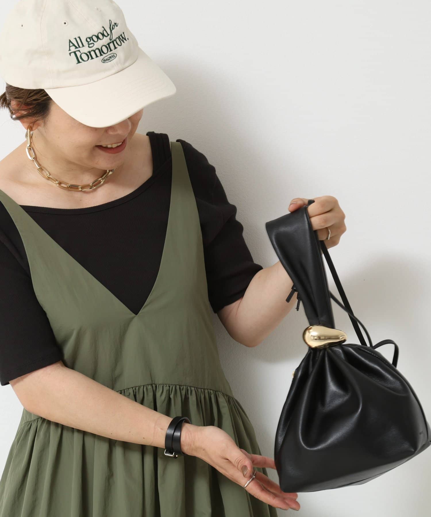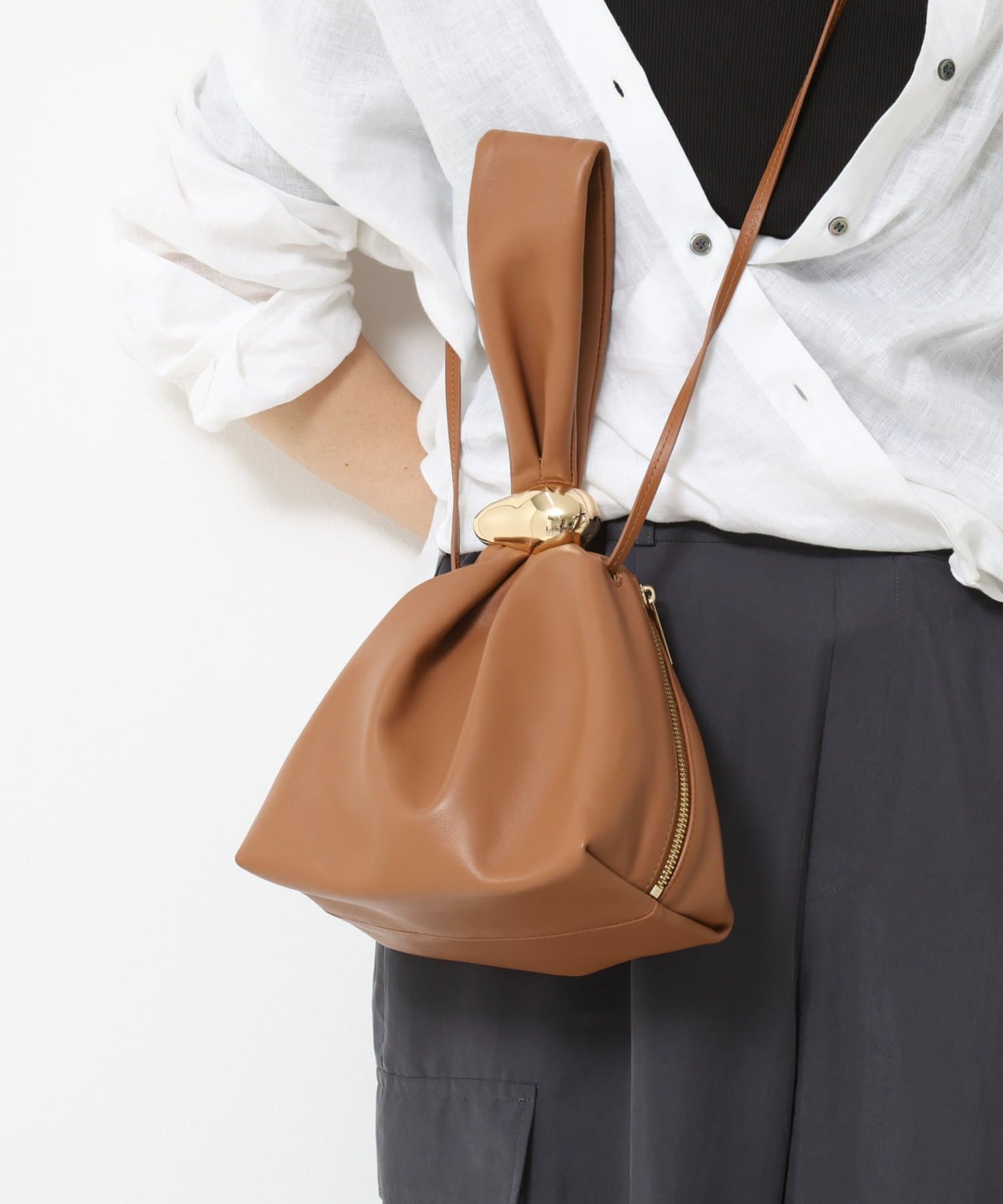 ニュアンスデザインでなんとも可愛い大きな金具モチーフが付いた、巾着風バッグです。