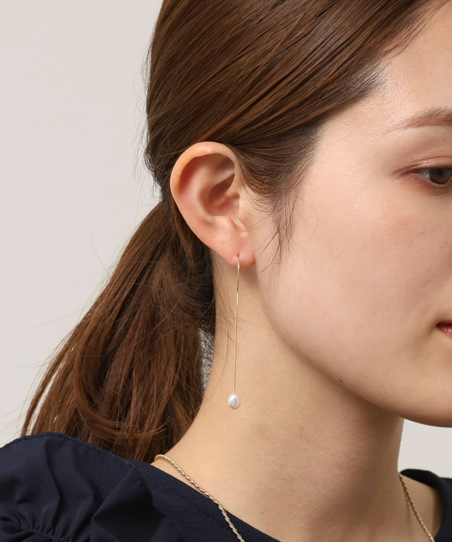 ・耳元で揺れる、一粒の輝き。淡水パール ドロップピアス