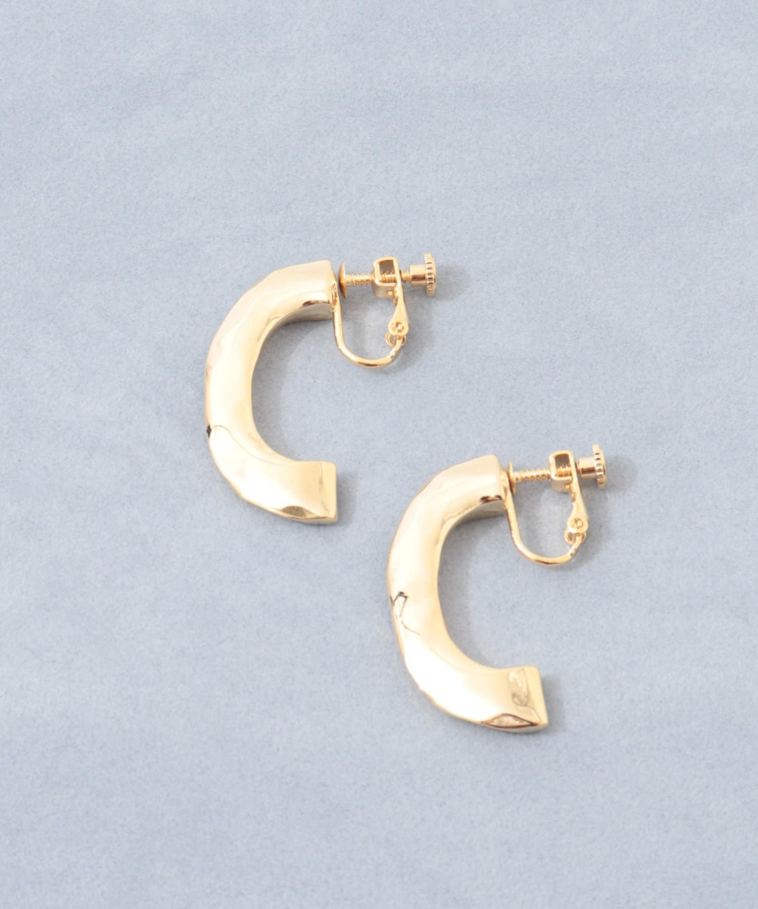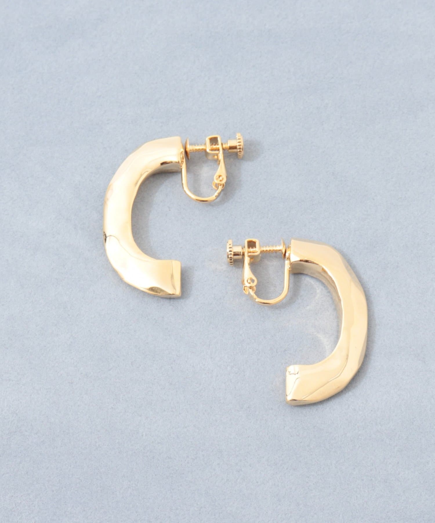 ・耳元にさりげない輝きを添える、C型ゴールドイヤリング。
