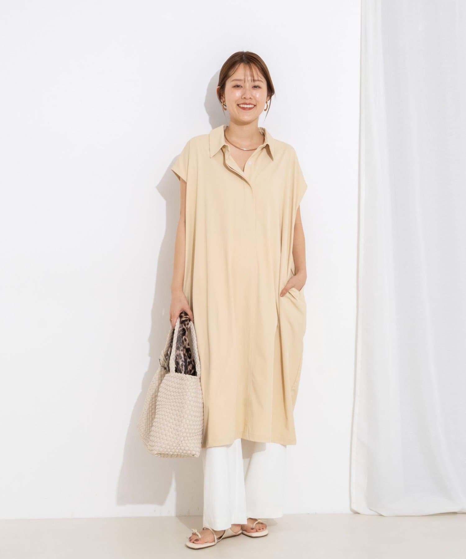 ・ワンピースとして一枚でも、パンツとレイヤードしての着用も◎