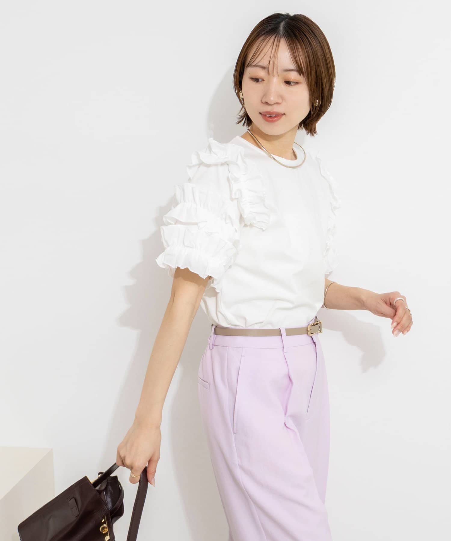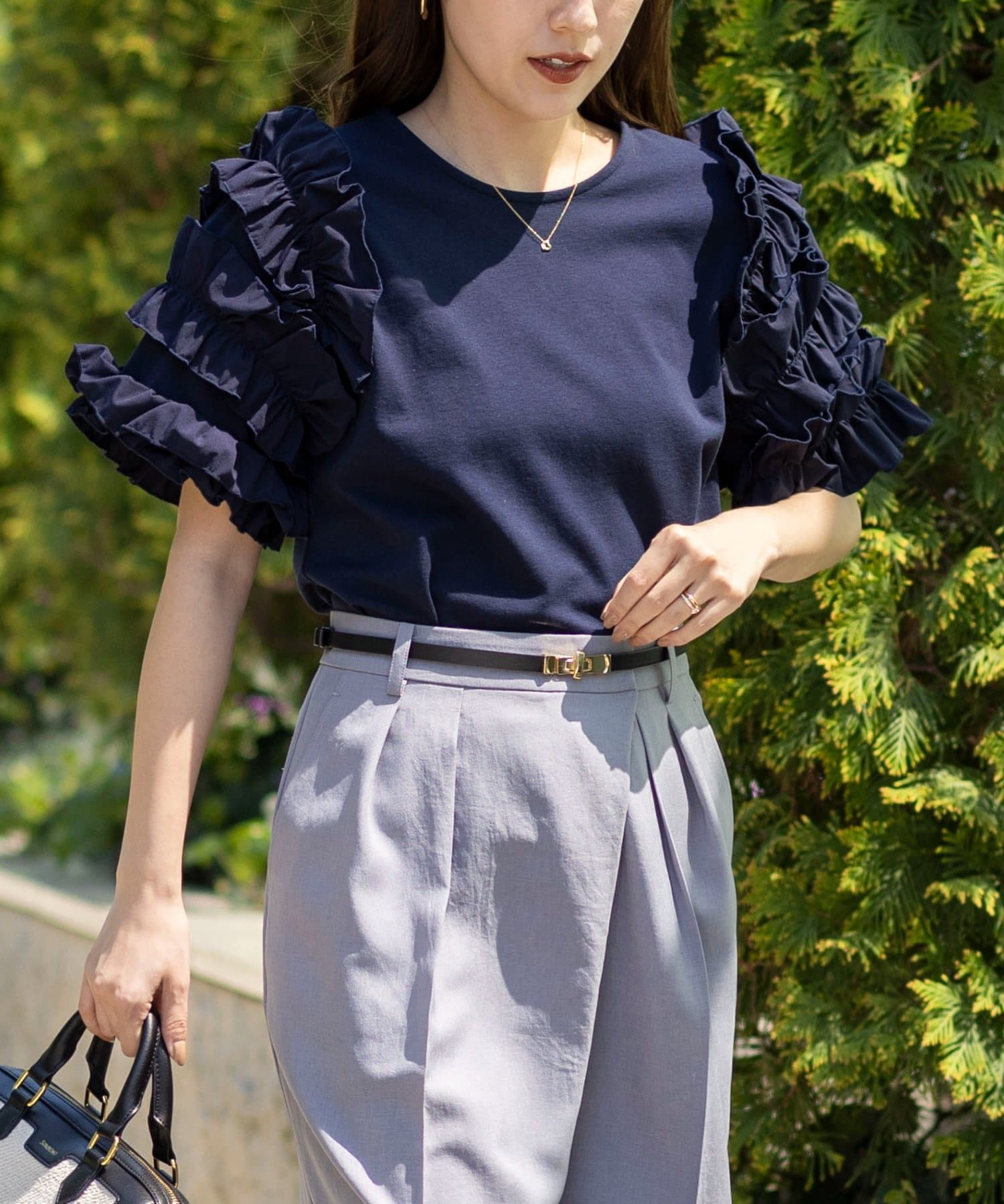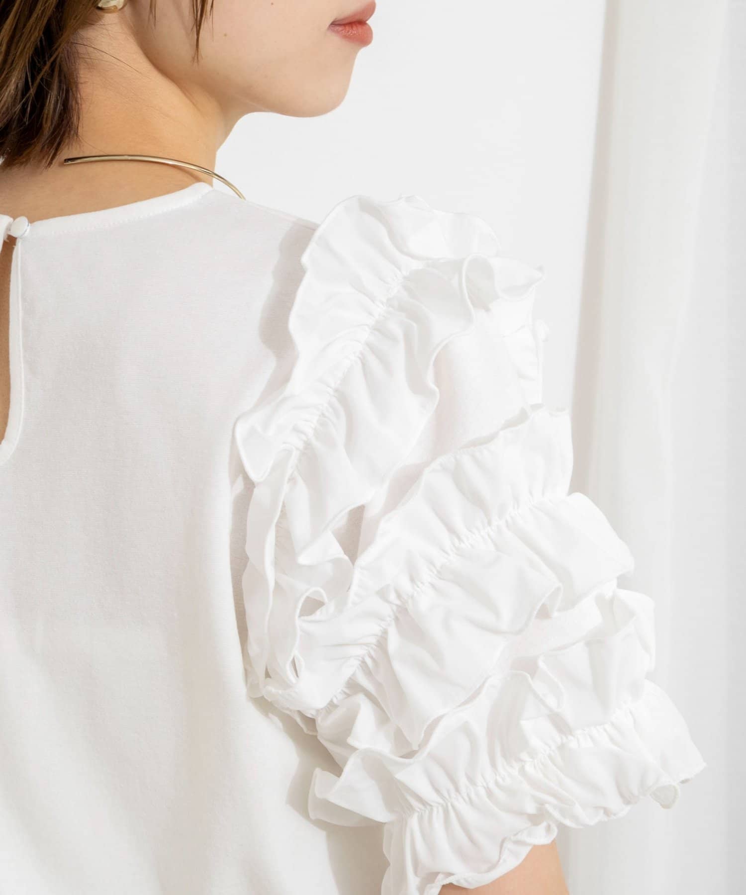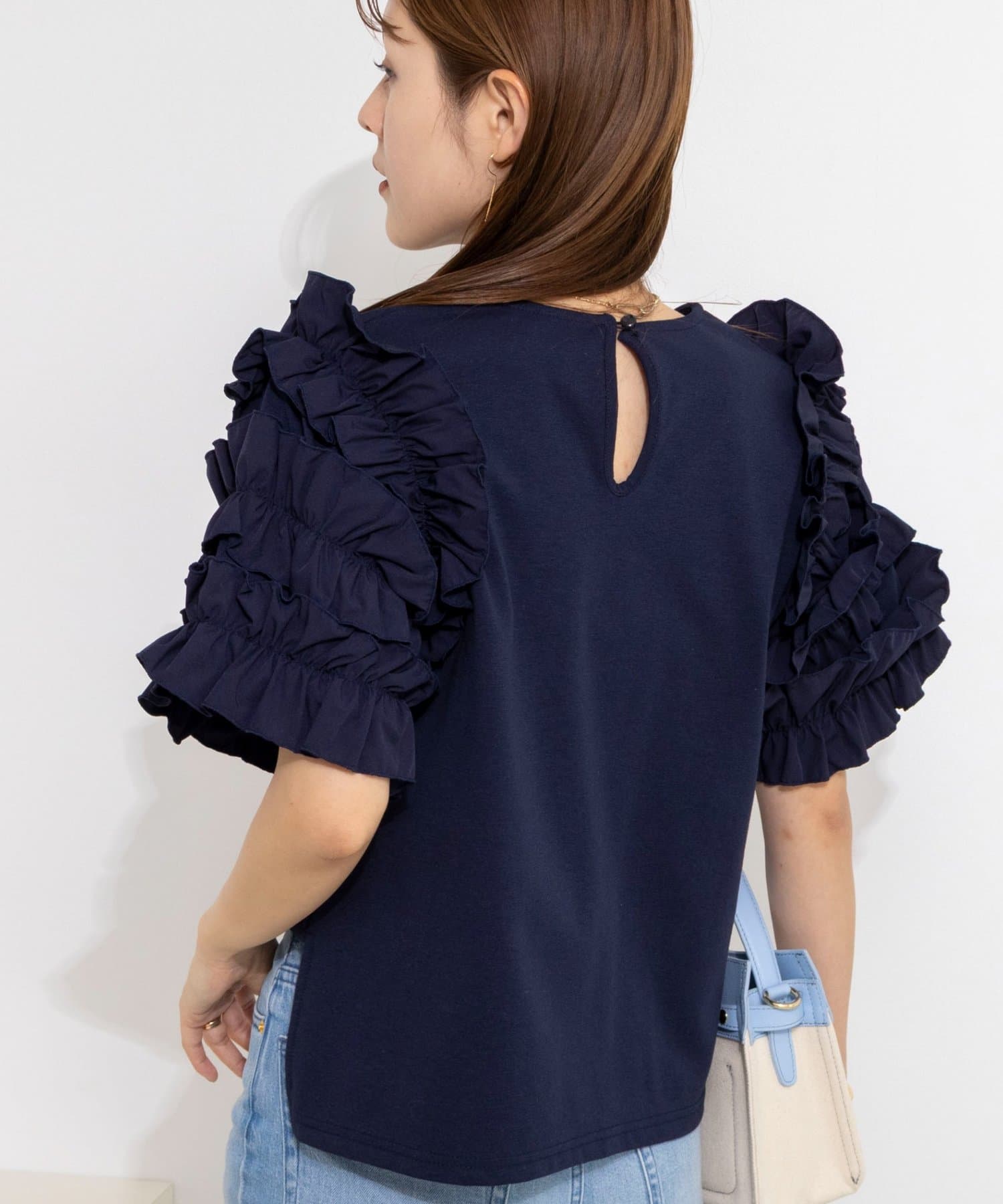 ・フリルの付いた袖が華やかで、1枚で着映えするデザイン