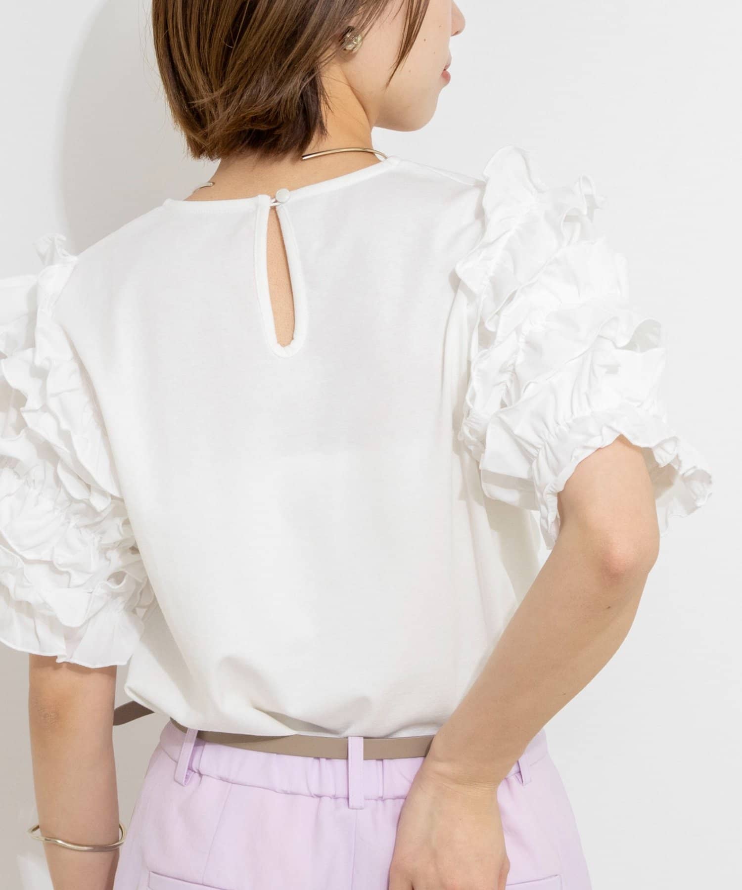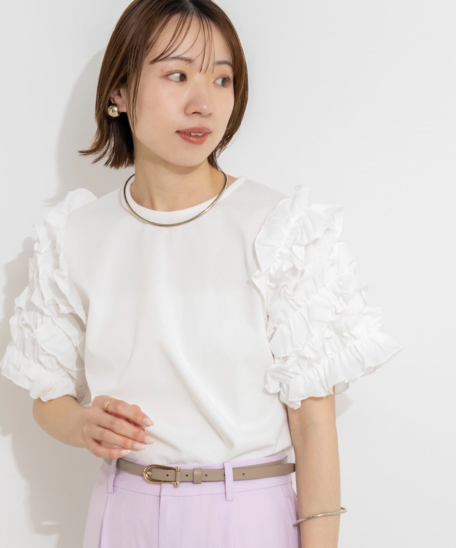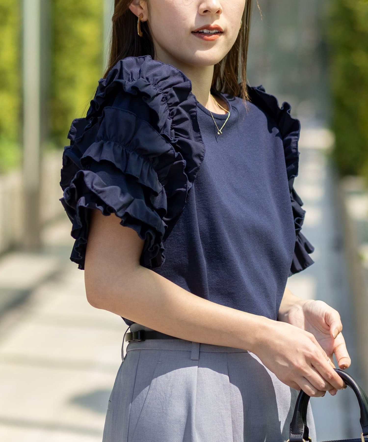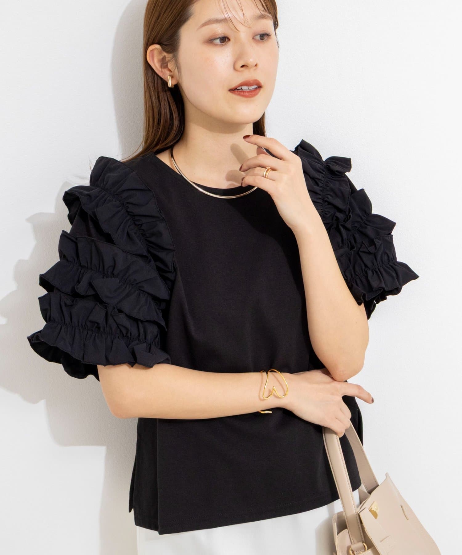 ・フリルの付いた袖が華やかで、1枚で着映えするデザイン