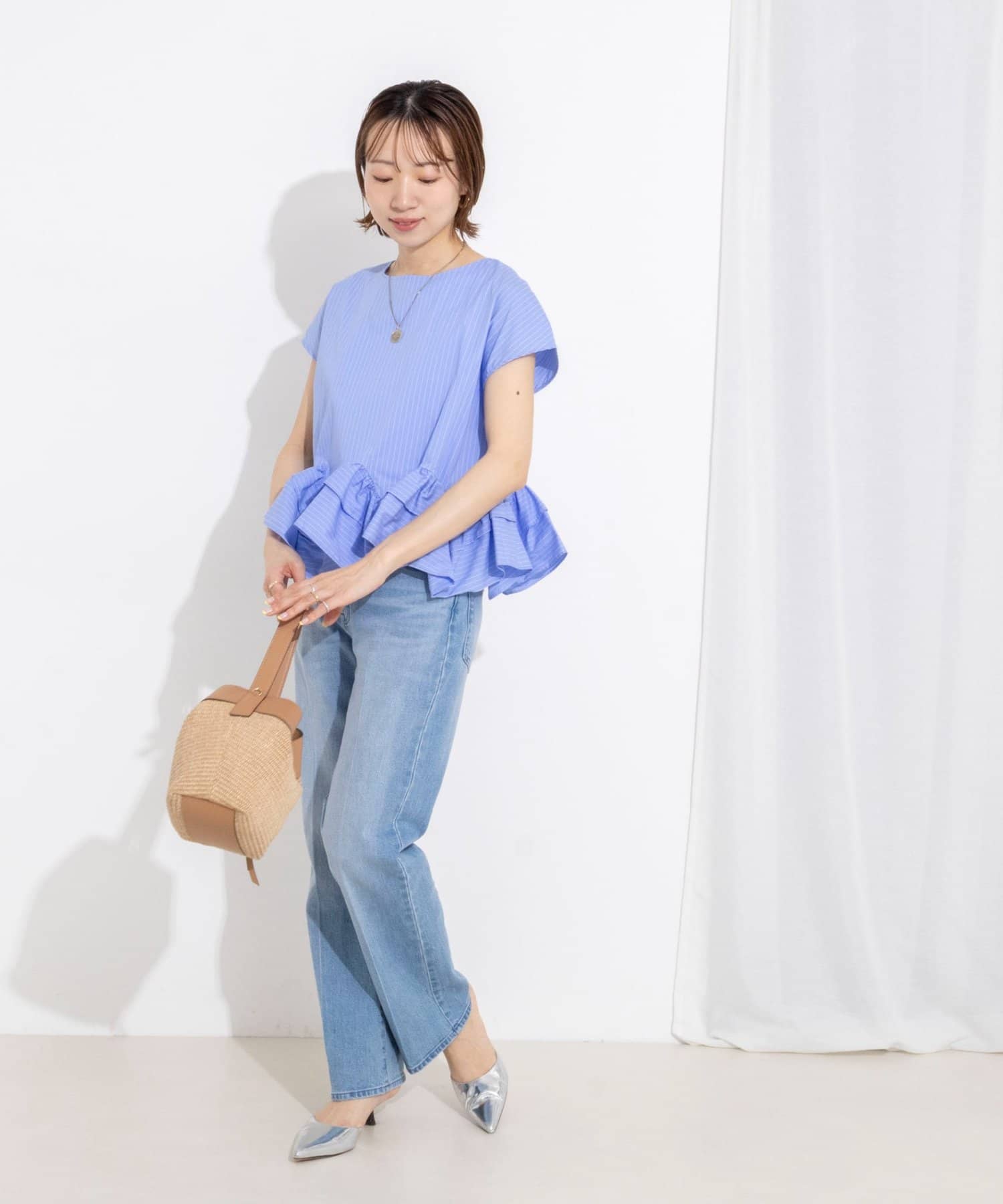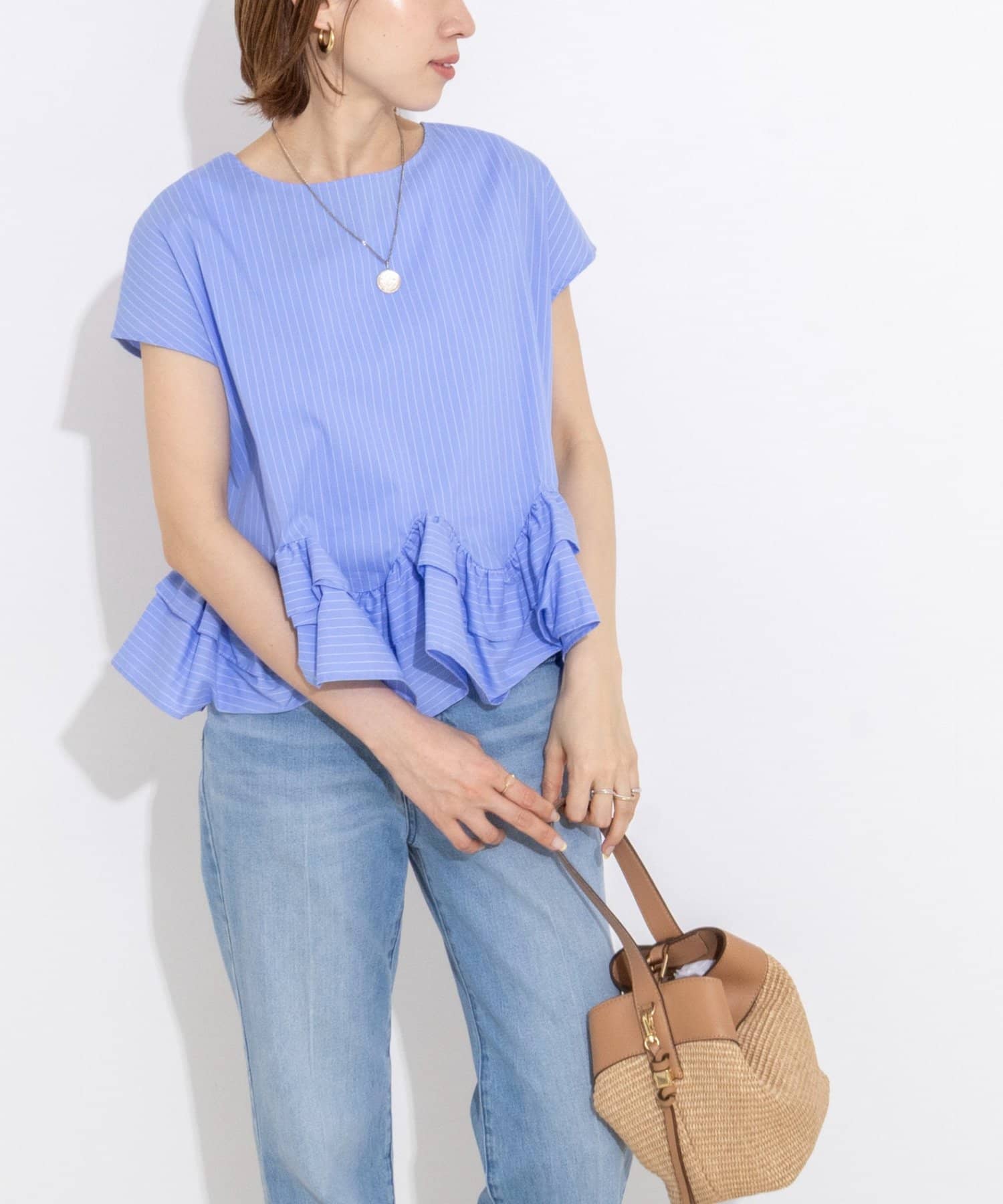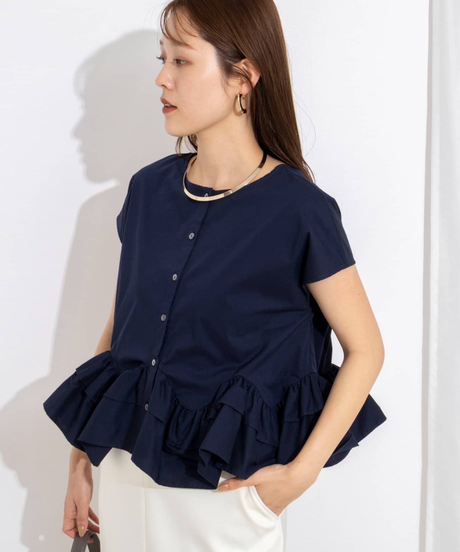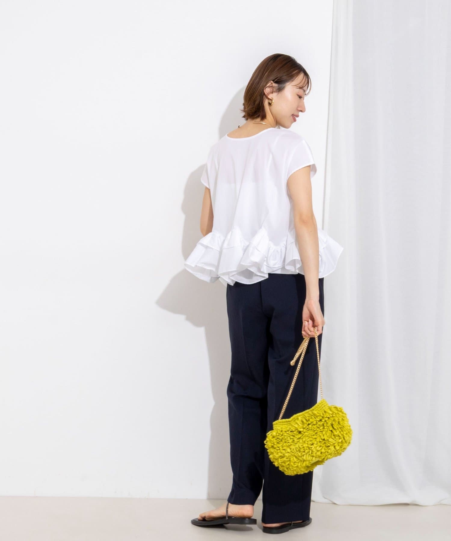 ・ウエスト切替のフリルデザインで、1枚で華やかなスタイルアップが叶うブラウス