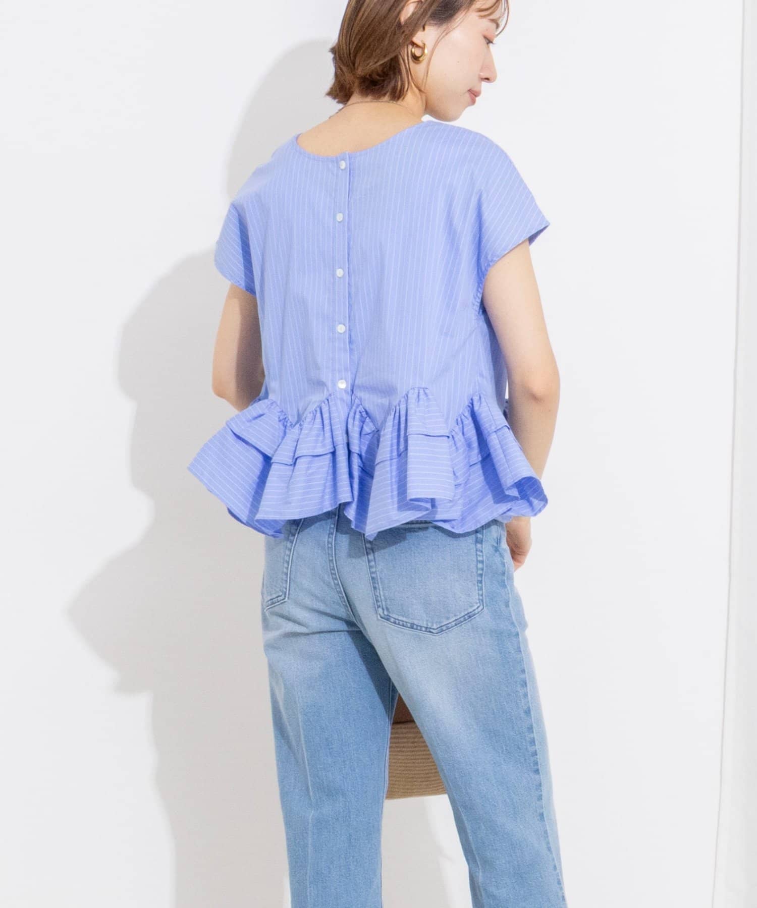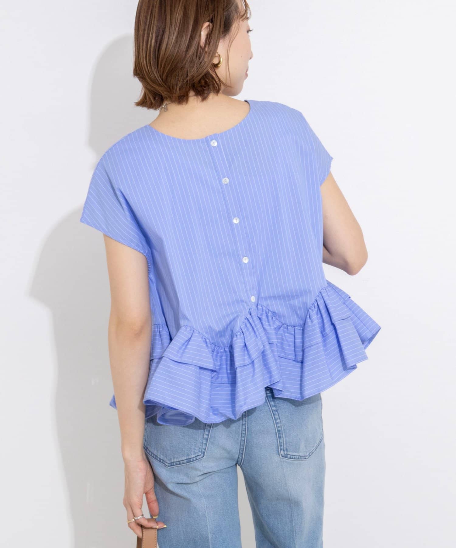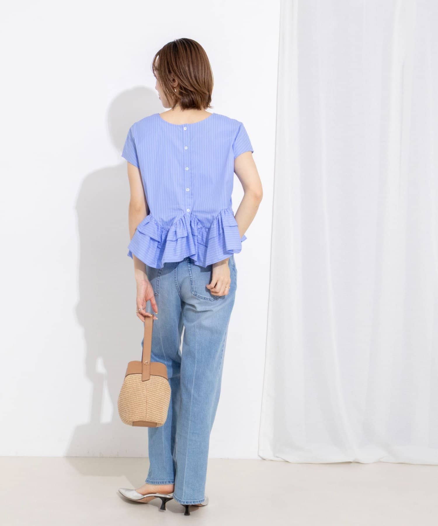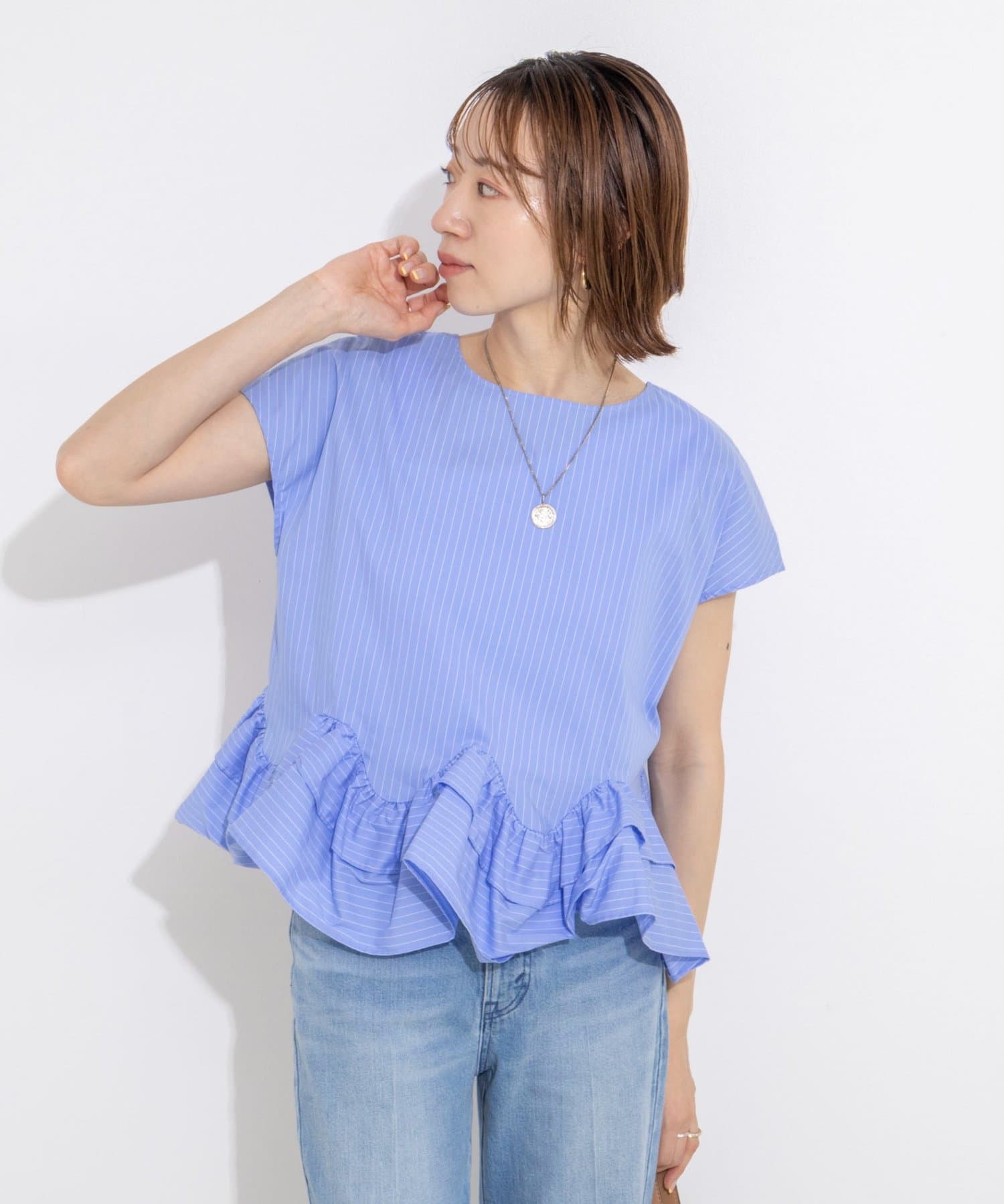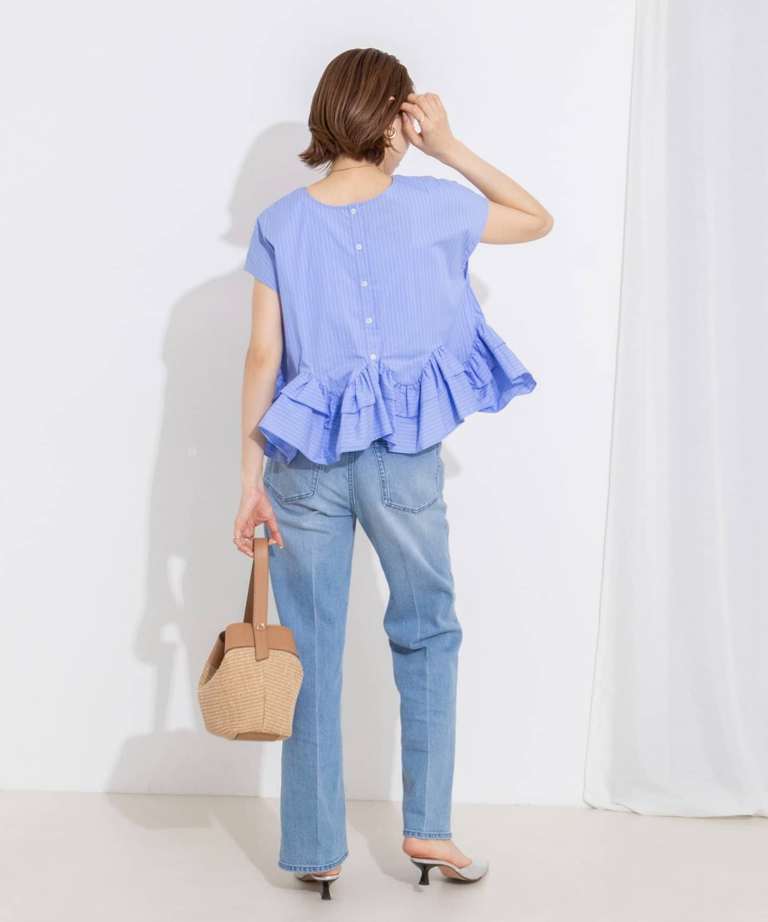 ・ウエスト切替のフリルデザインで、1枚で華やかなスタイルアップが叶うブラウス