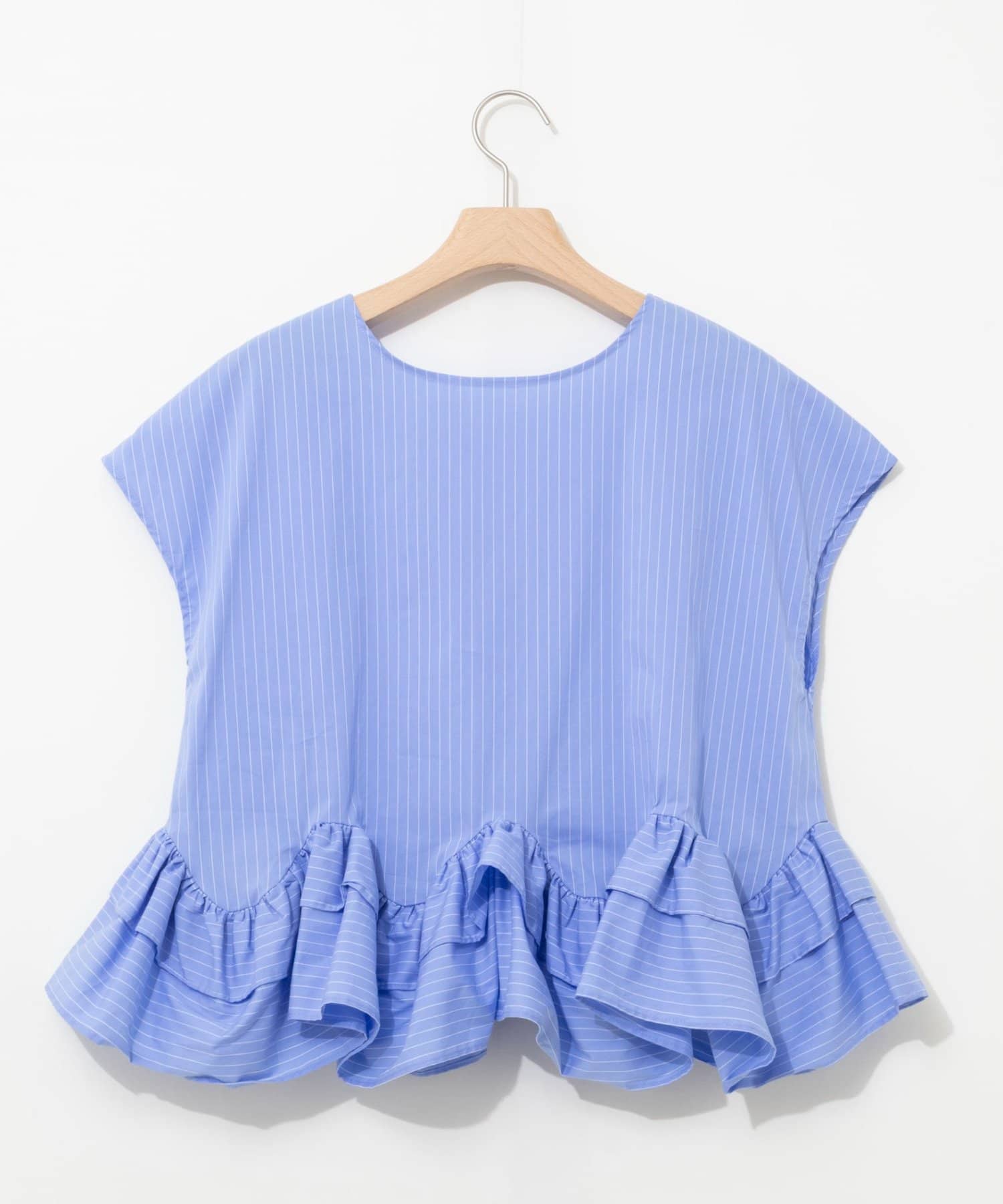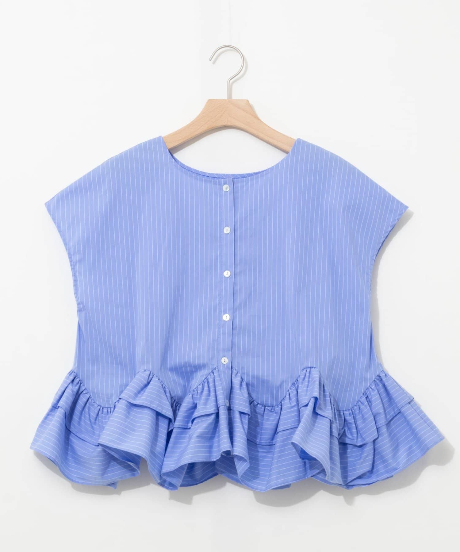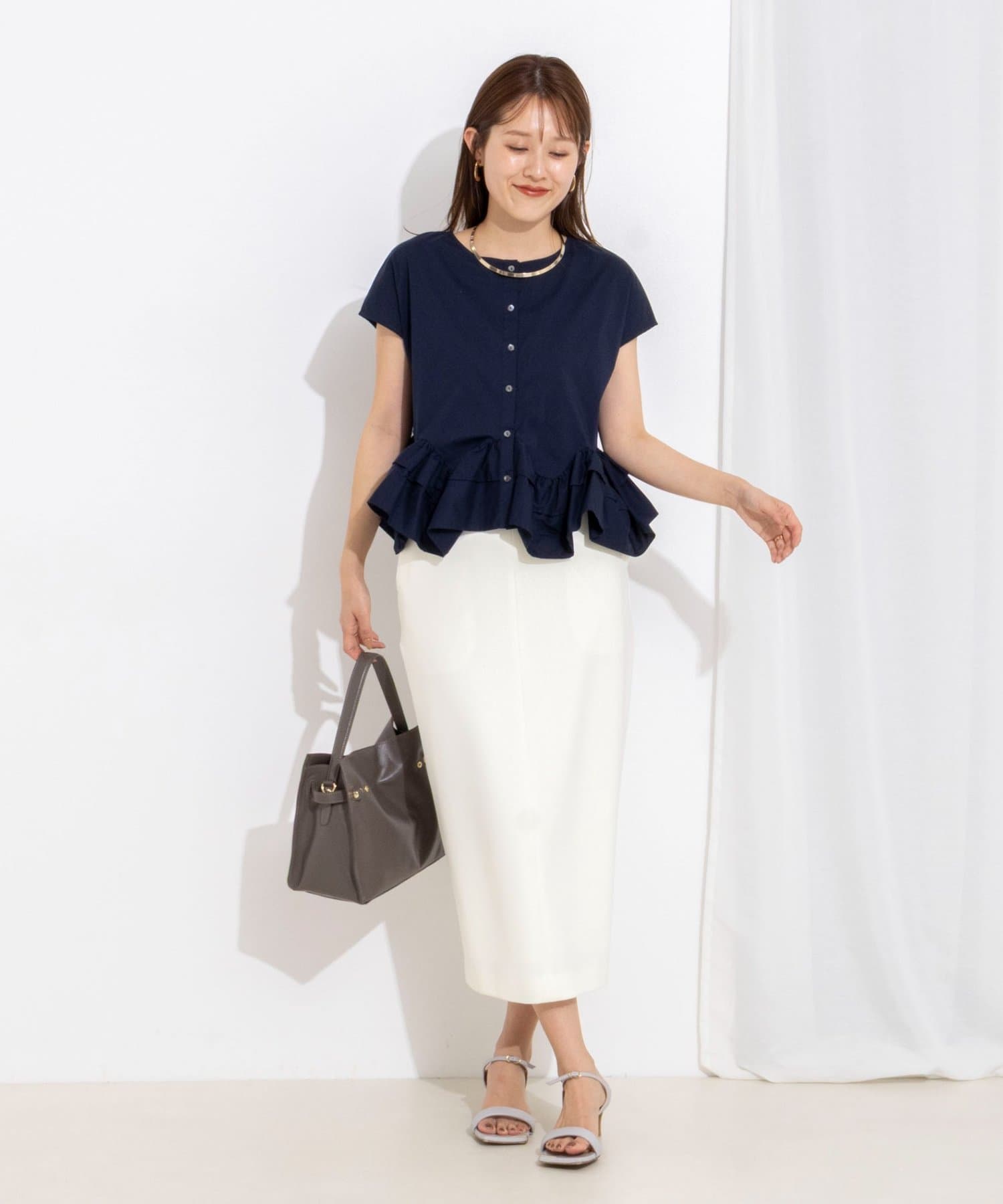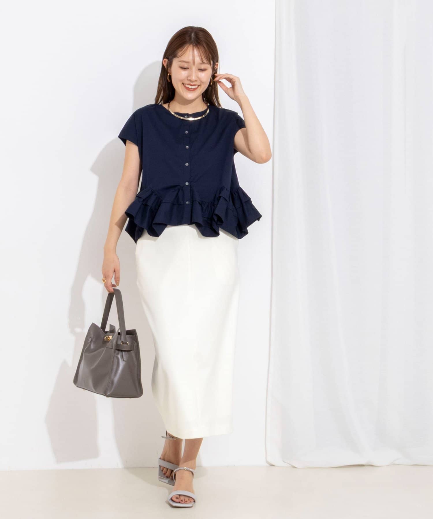 ・ウエスト切替のフリルデザインで、1枚で華やかなスタイルアップが叶うブラウス