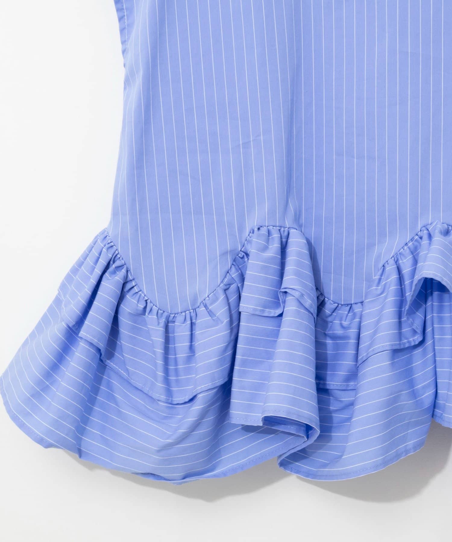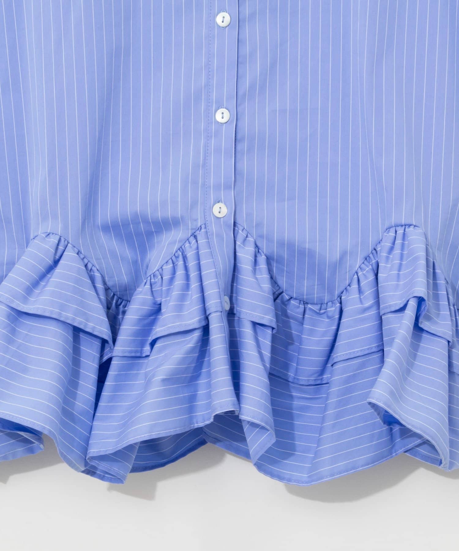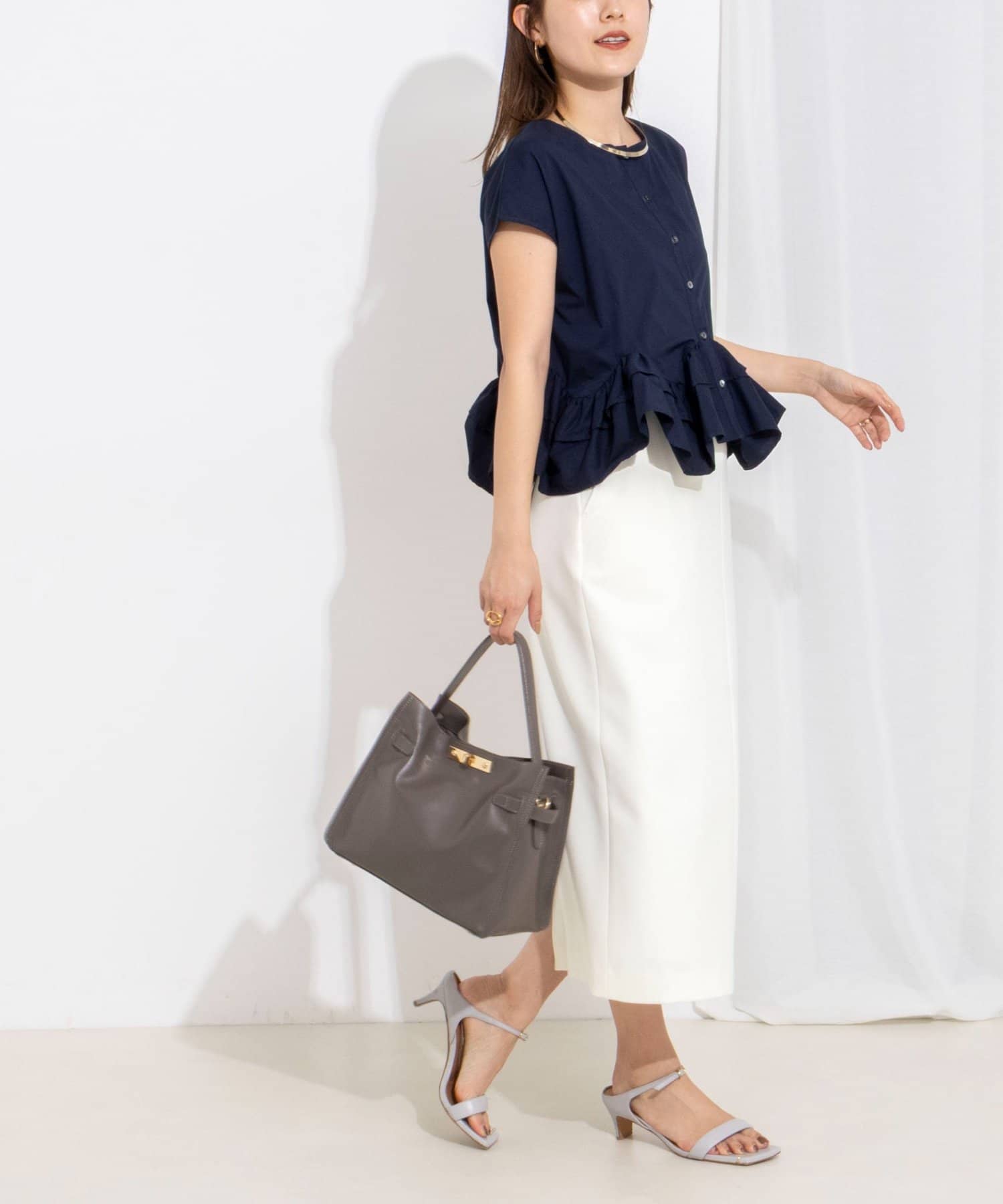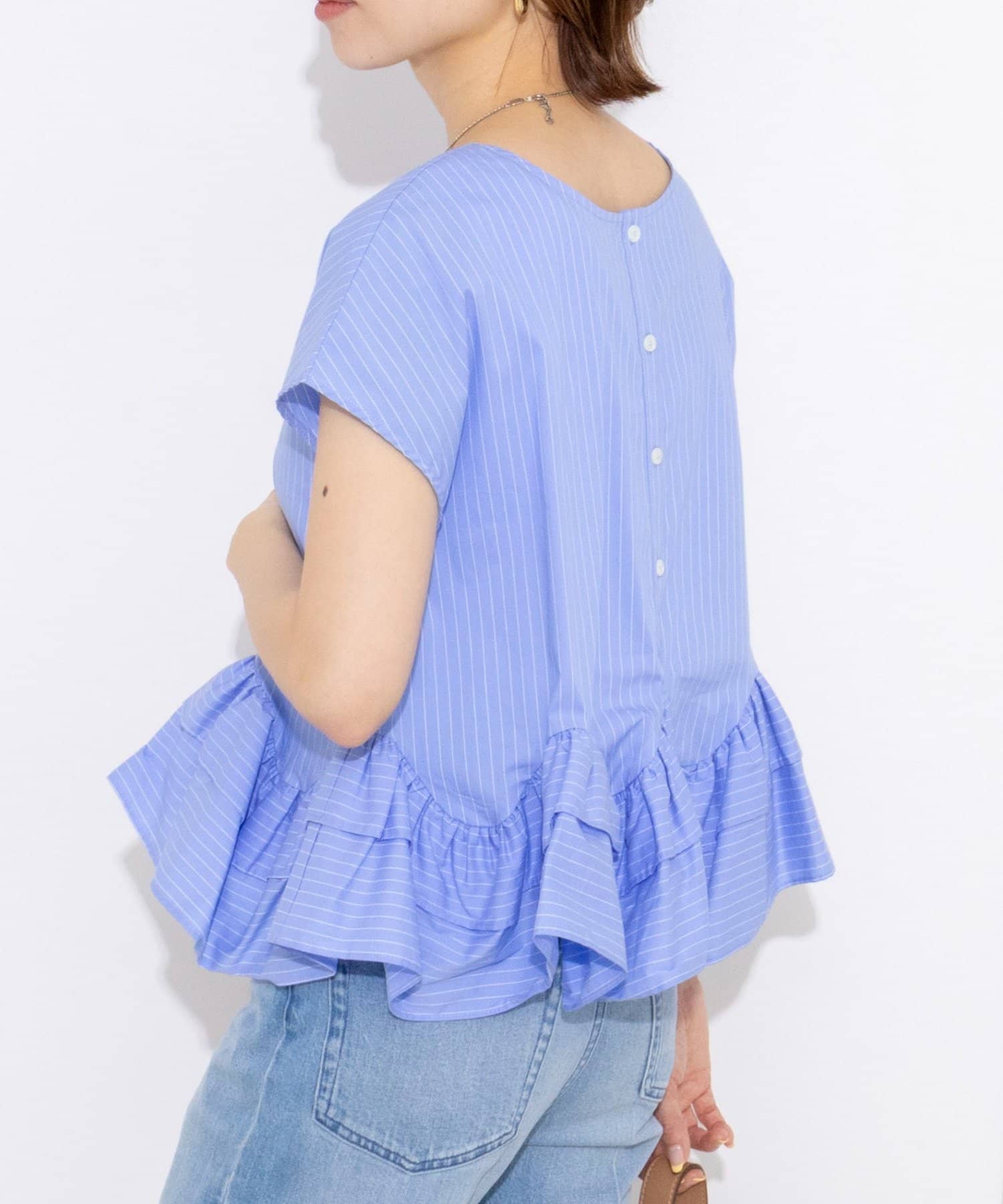 ・ウエスト切替のフリルデザインで、1枚で華やかなスタイルアップが叶うブラウス