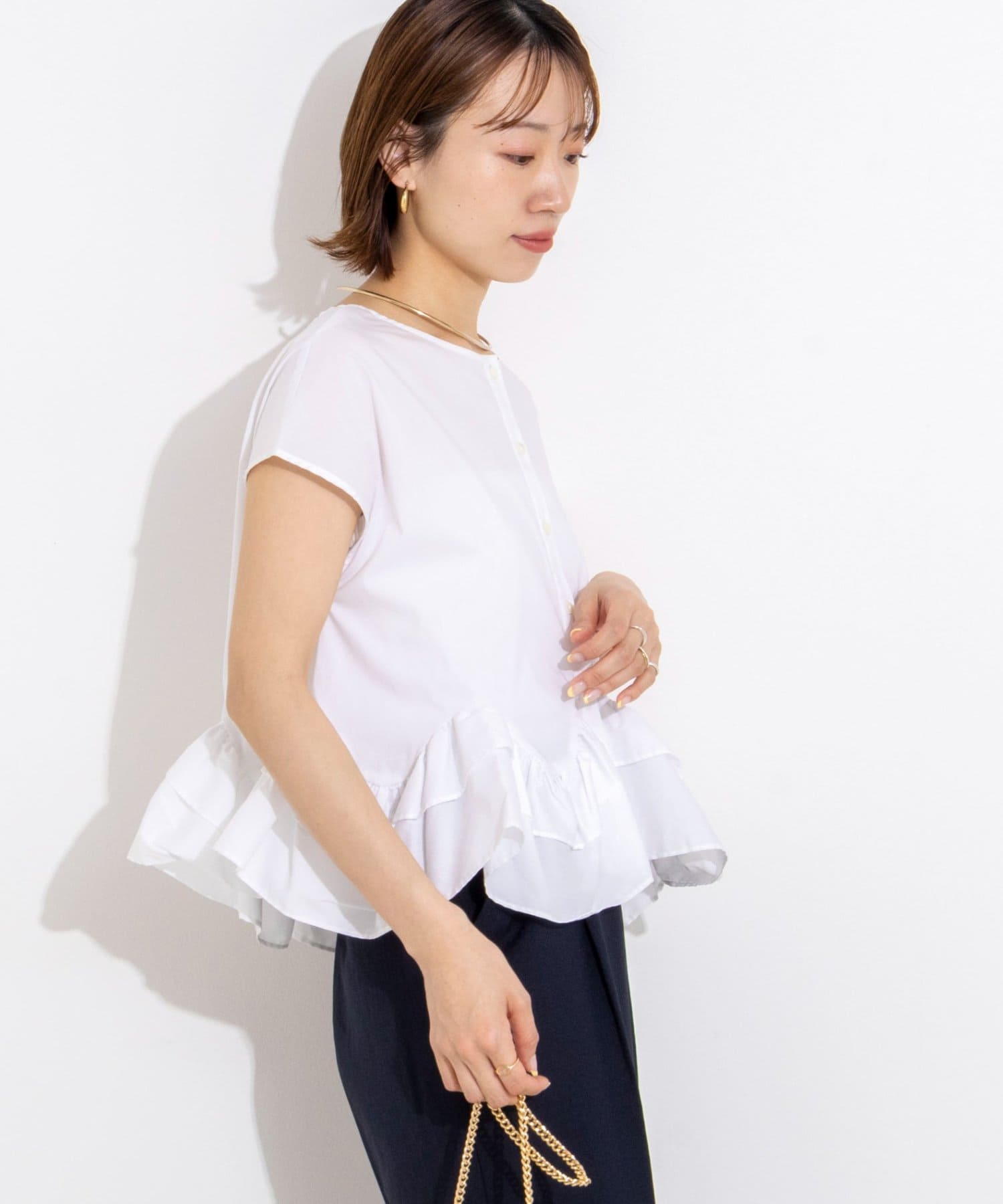 • NOLLEY'S(ノーリーズ) ウオッシャブルペプラムフリル2WAY半袖ブラウス