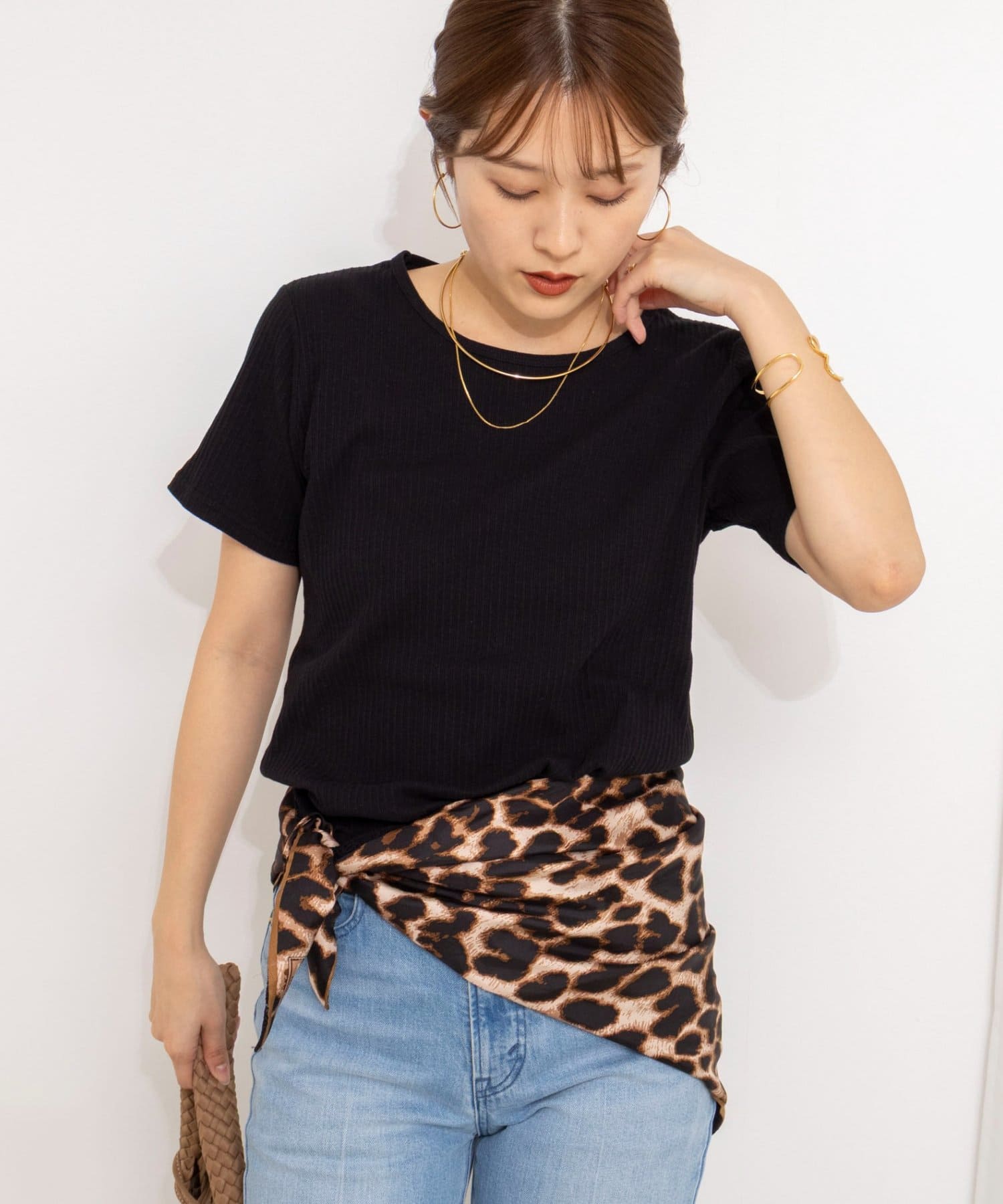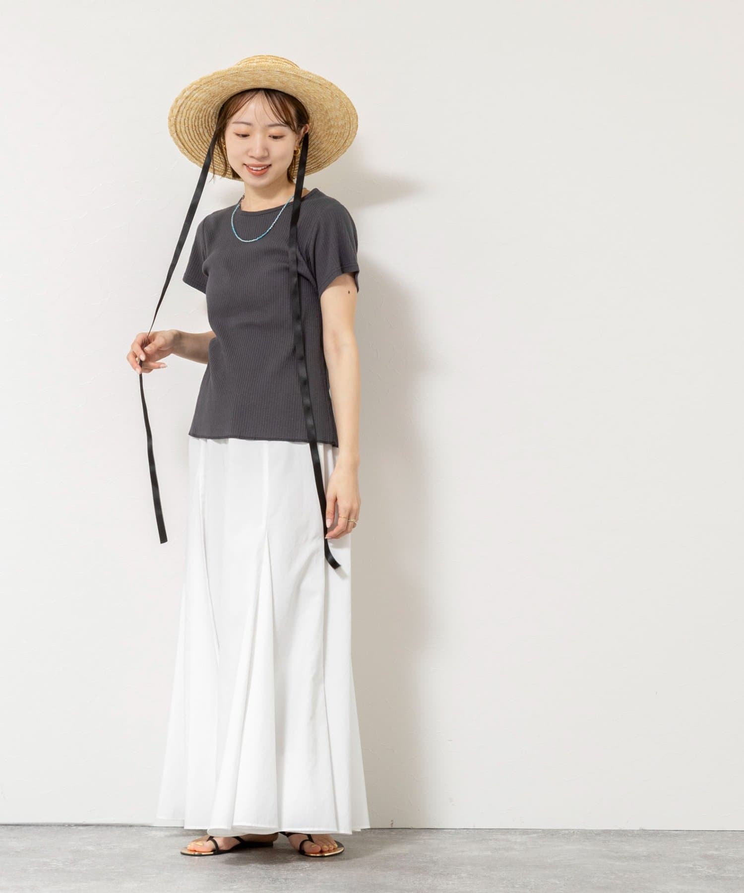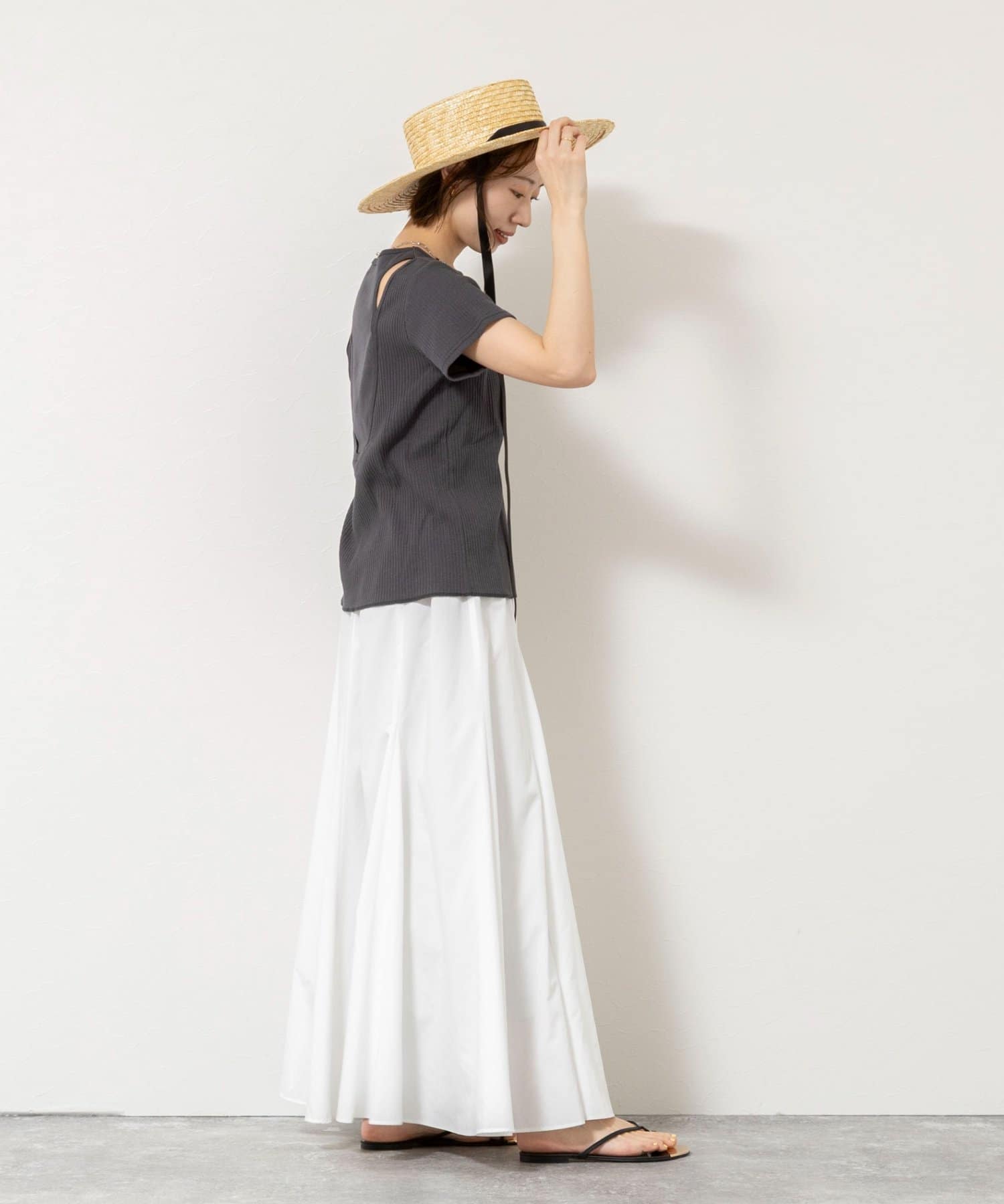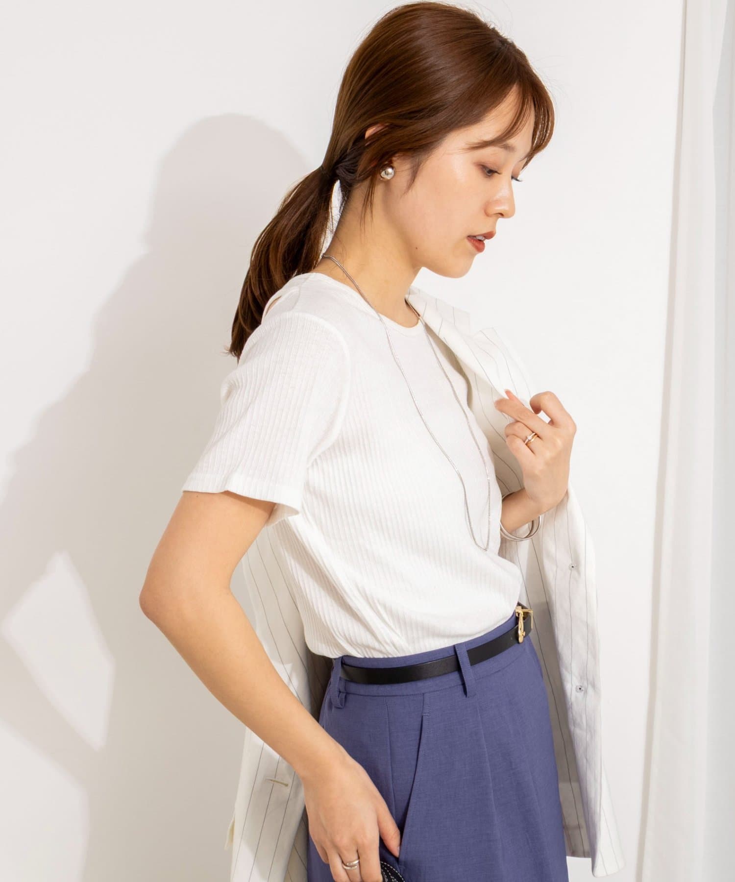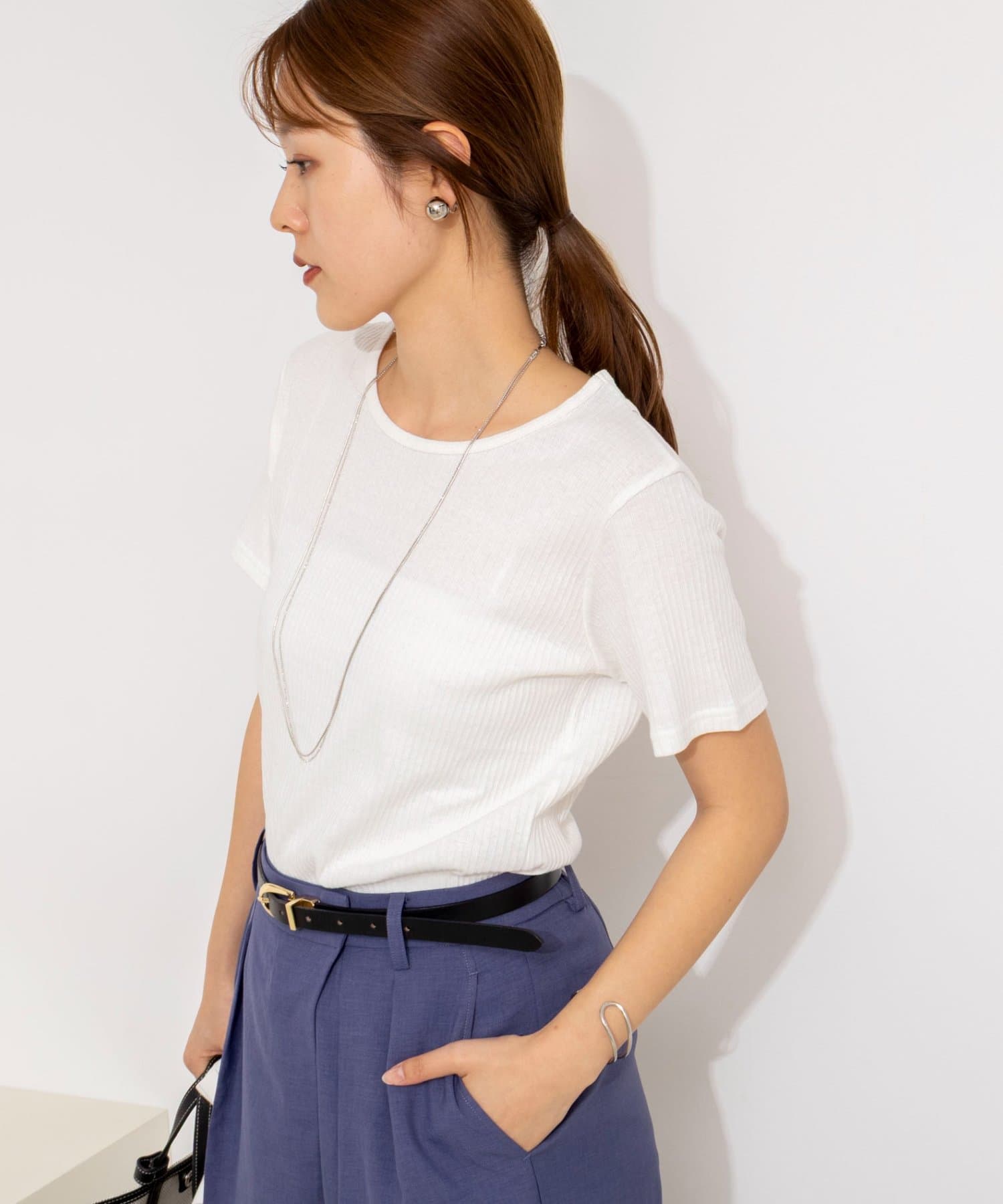 ・伸縮性のあるリブ素材が身体のラインをきれいに拾い、女性らしいメリハリのあるシルエットに