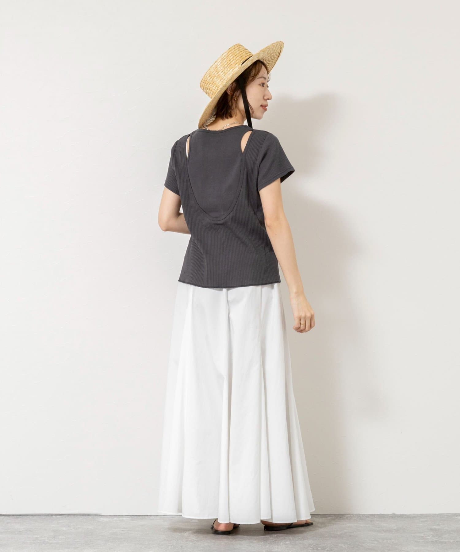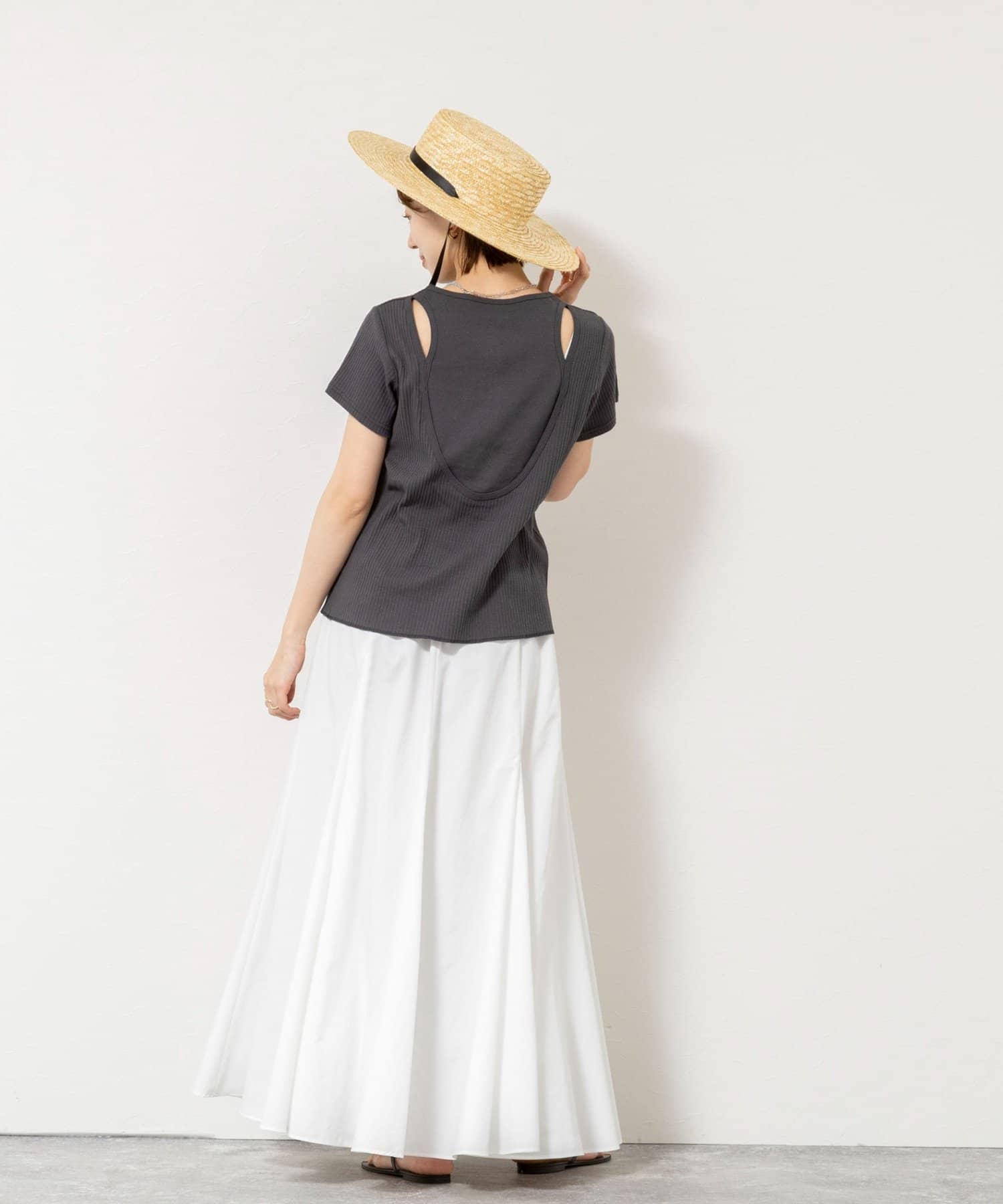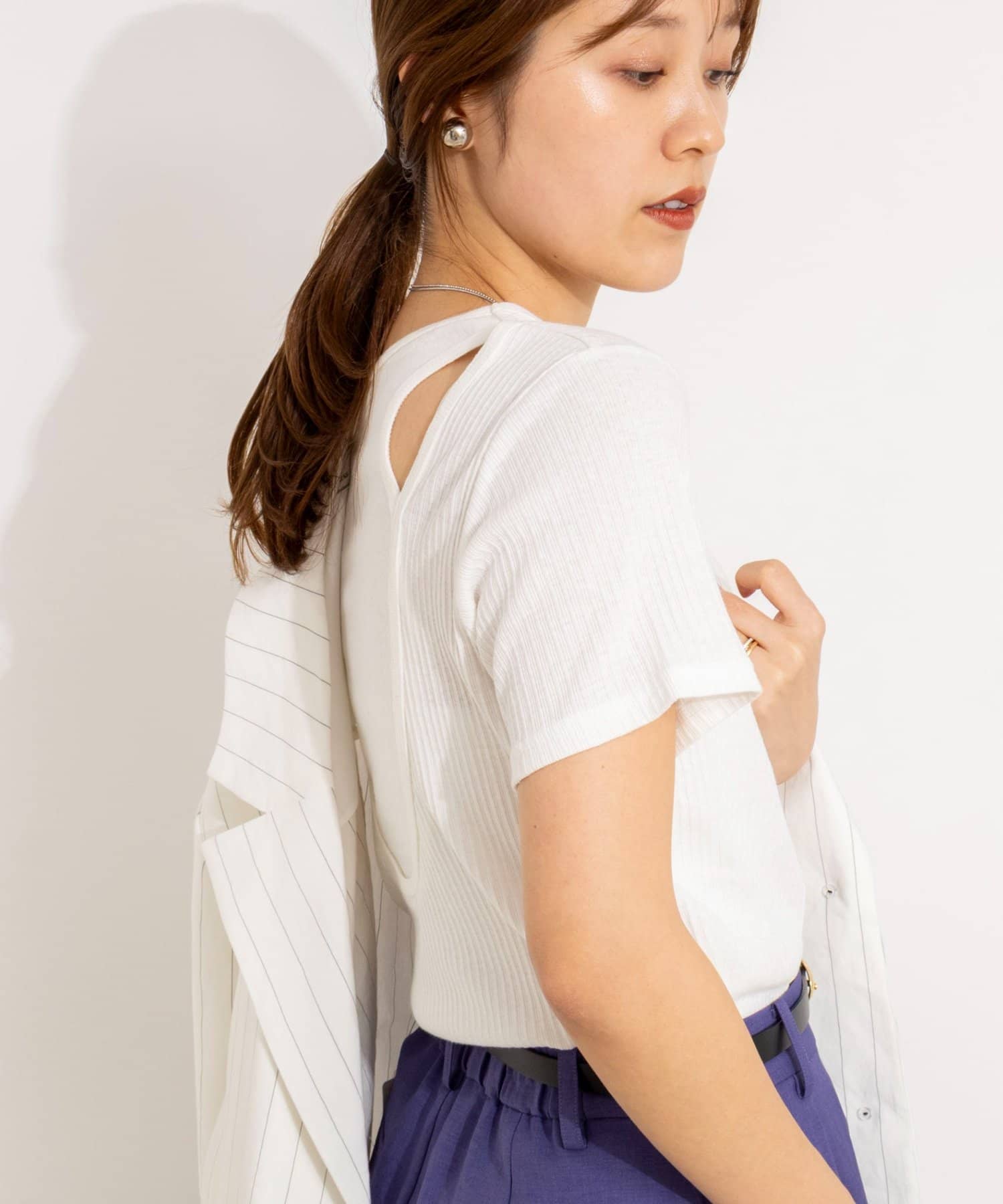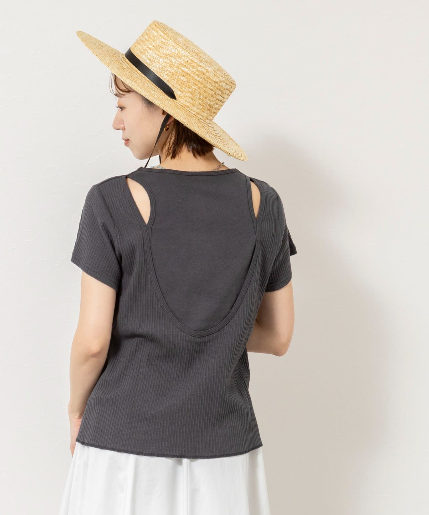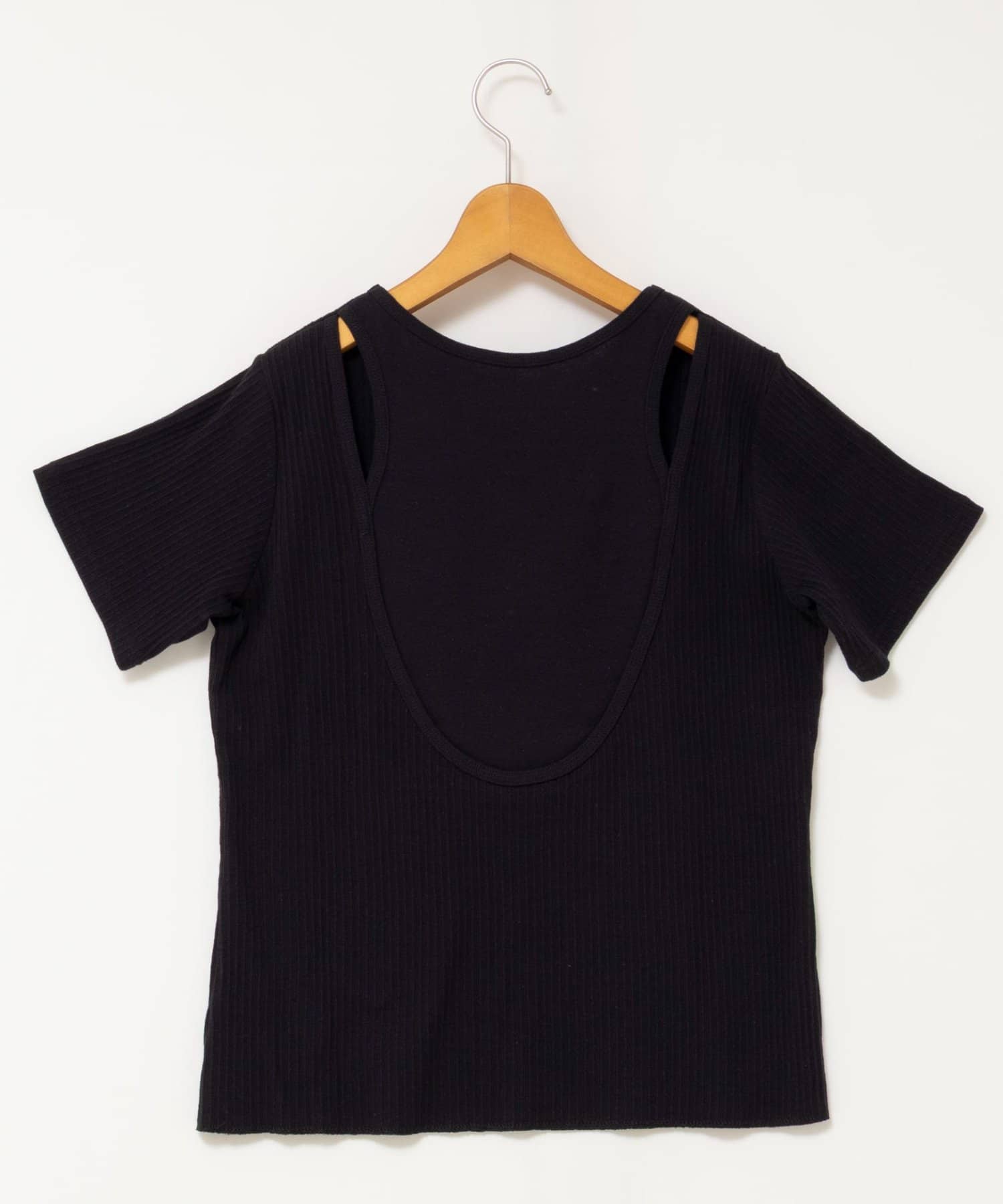 ウォッシャブルバックデザインリブTシャツ