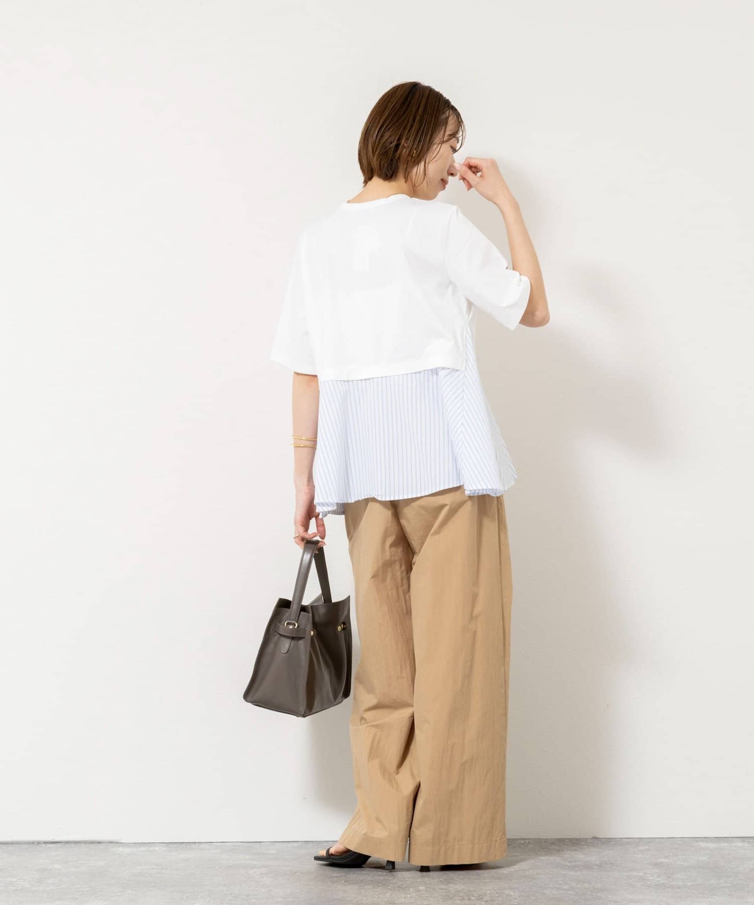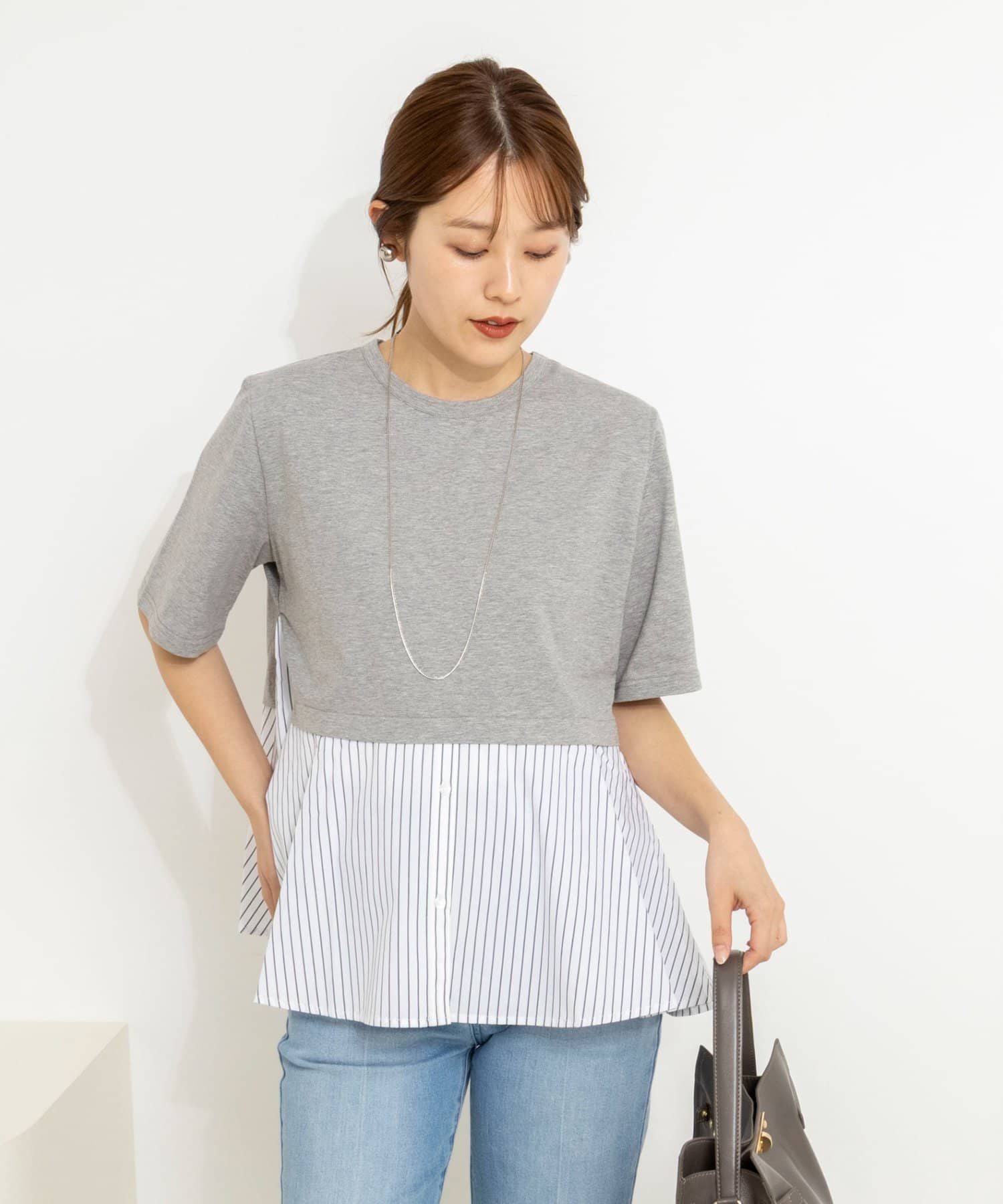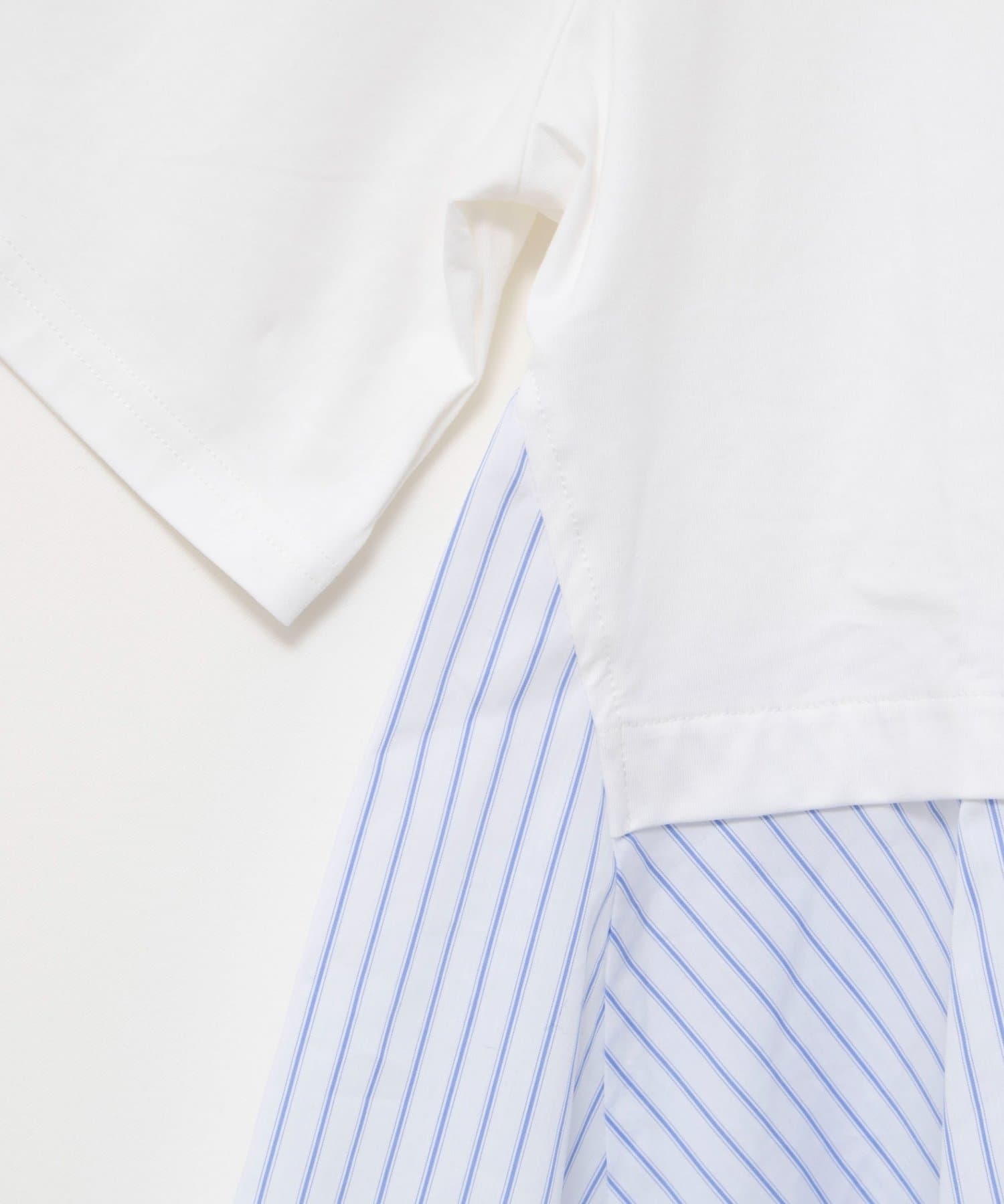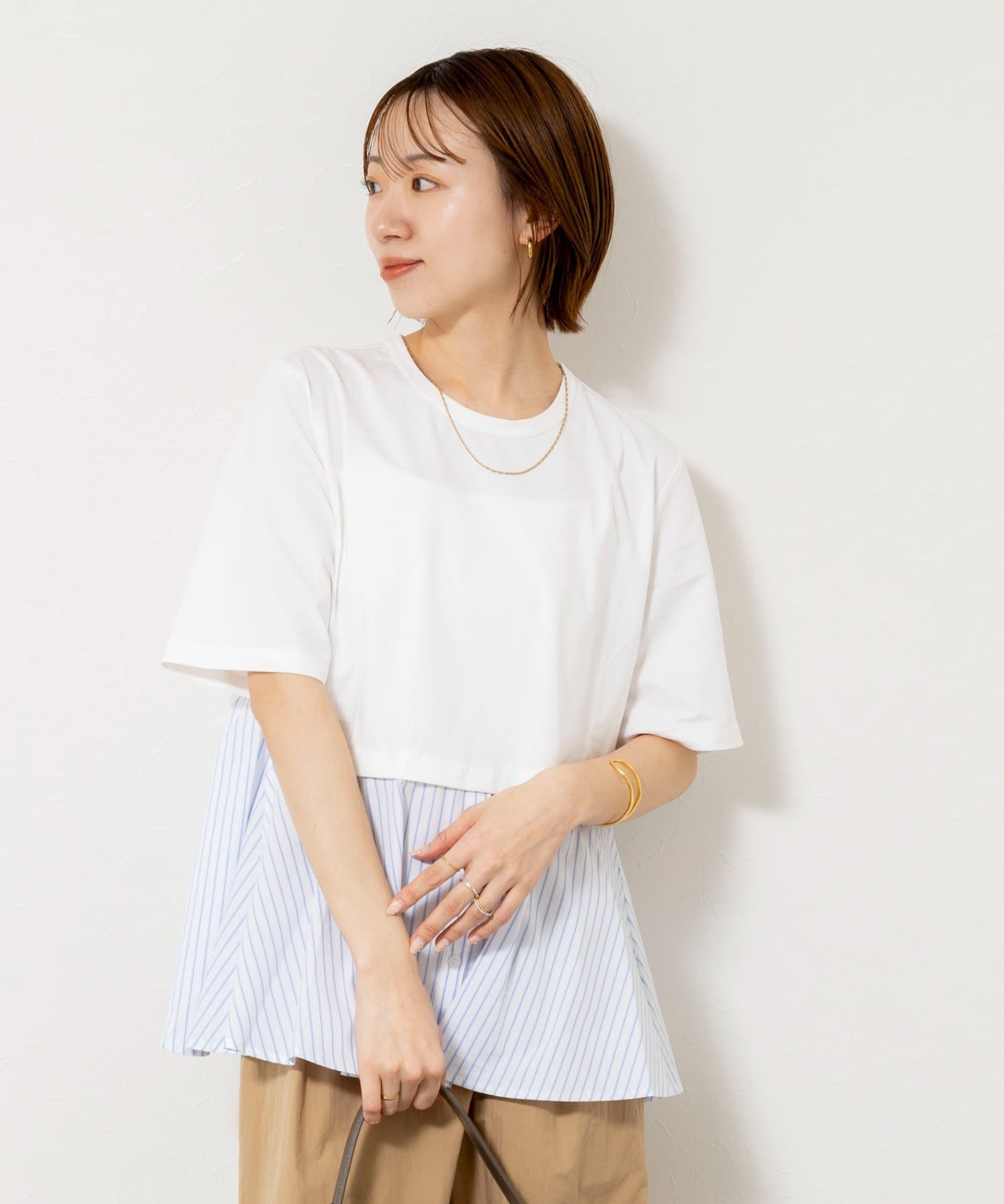 ・裾のストライプ布帛がシャツ見えしてきちんと感をプラス