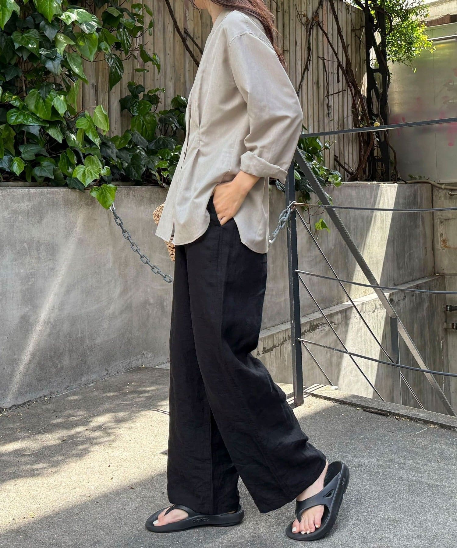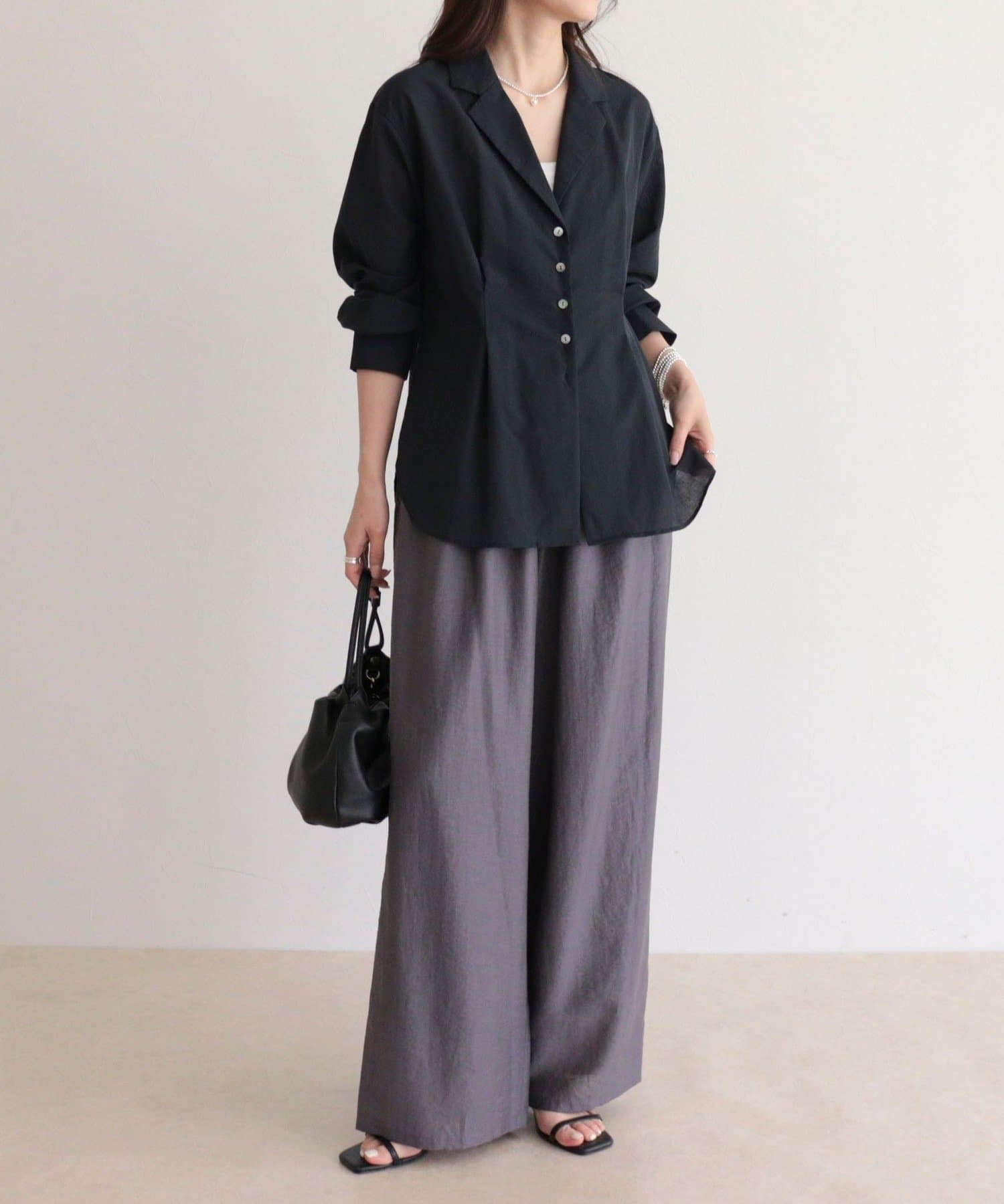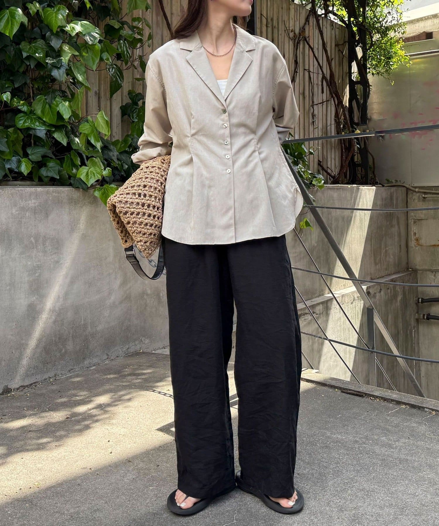 ・シャリっとした麻混のシアー素材を使用し、軽やかで清涼感のある仕上がりに