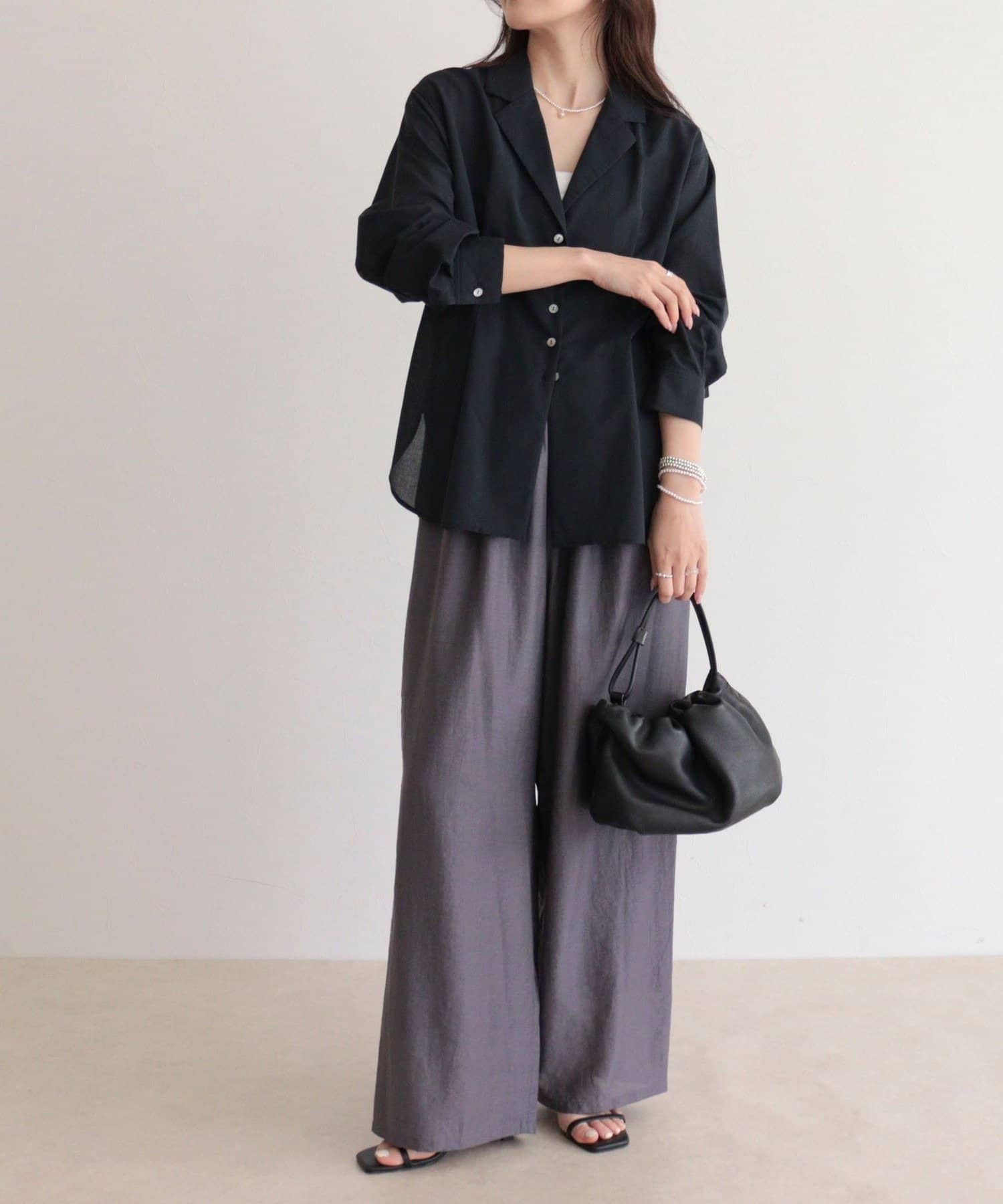 ・ほんのり透けるシアー感が抜け感のある大人スタイルをプラス