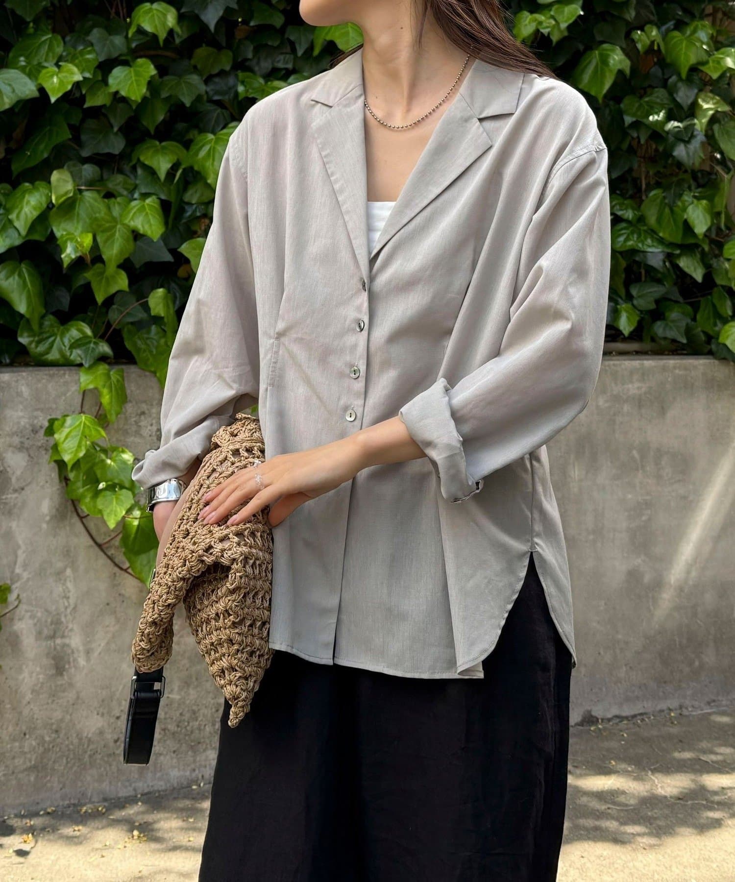 さらっと羽織れる軽い着心地で、暑い夏にもちょうど良さそうです。ウエストが少しシェイプされたデザインで、低身長でもバランスが取りやすく、すっきり着こなせました!シアー素材で軽やかさと抜け感があり、重たく見えないのも嬉しいポイント◎ 前を閉じてトップスとしても、羽織りとしても着回しやすい一枚です。
