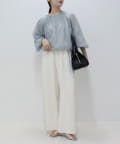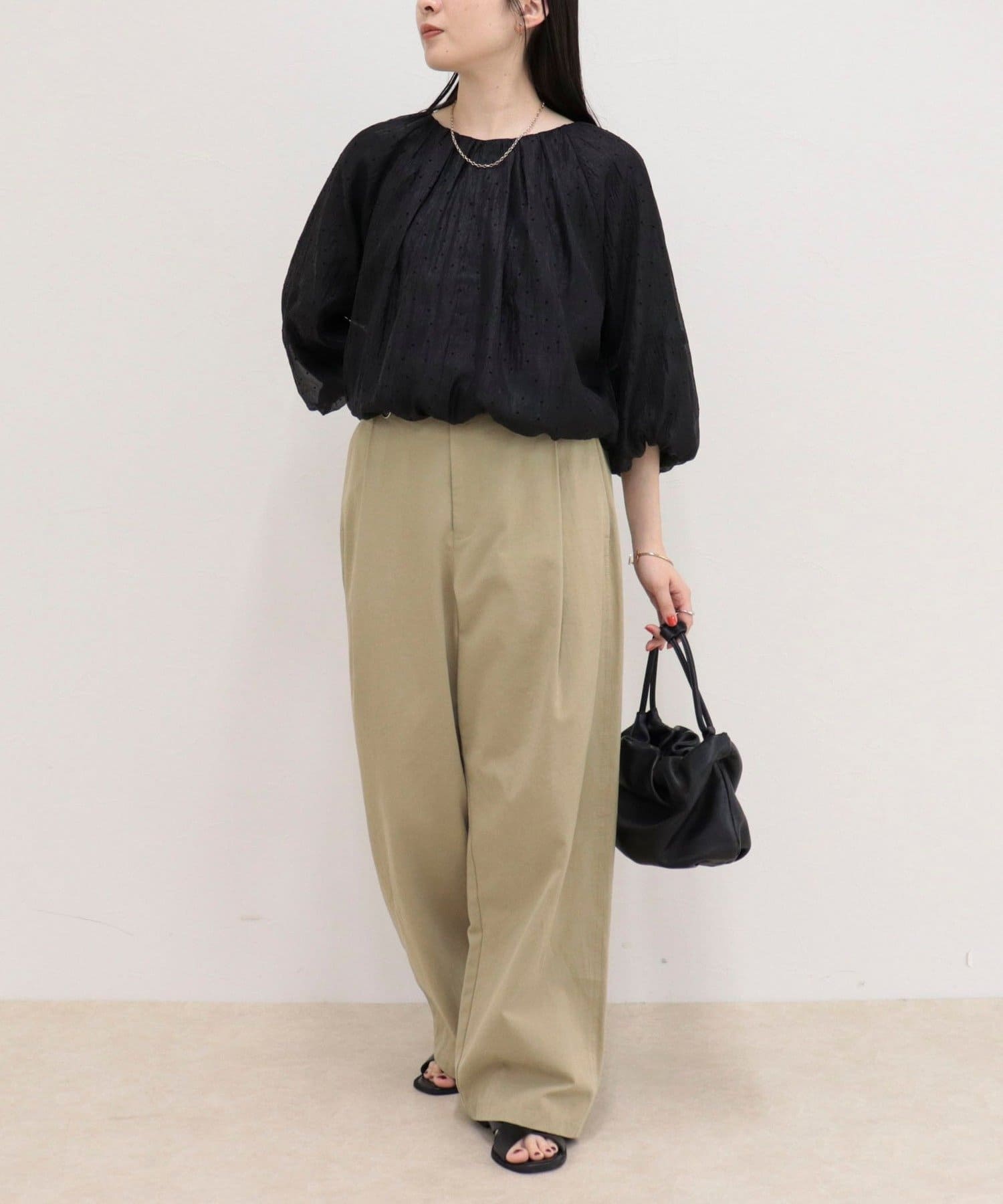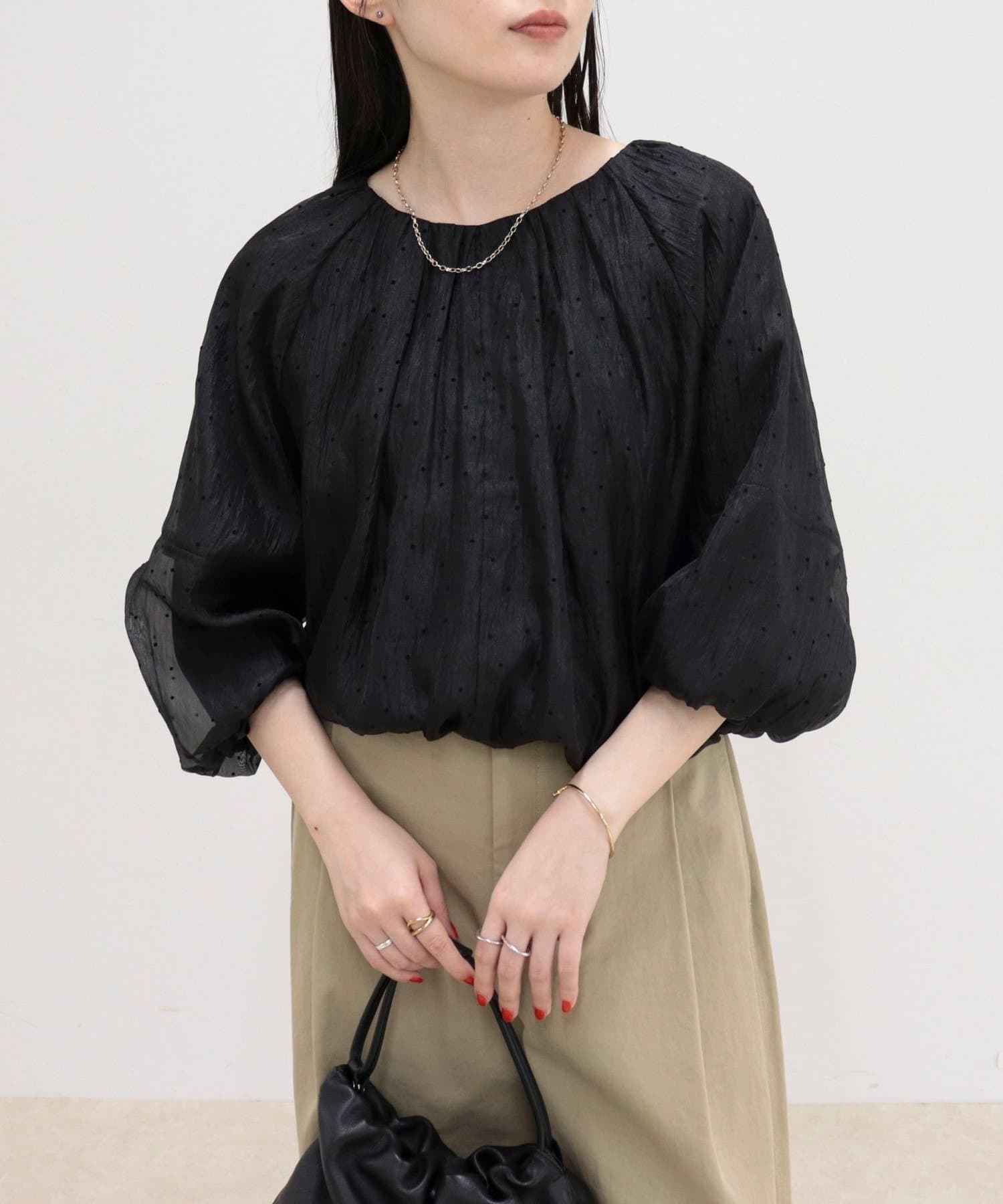 ・ふんわりとしたバルーンシルエットが目を惹くギャザーブラウス