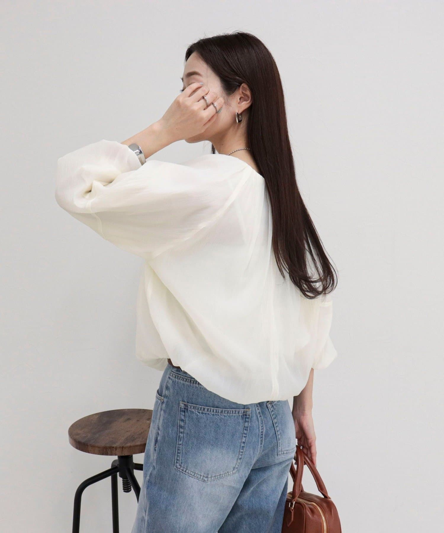 ふんわり立体シルエットのバルーンギャザーブラウス