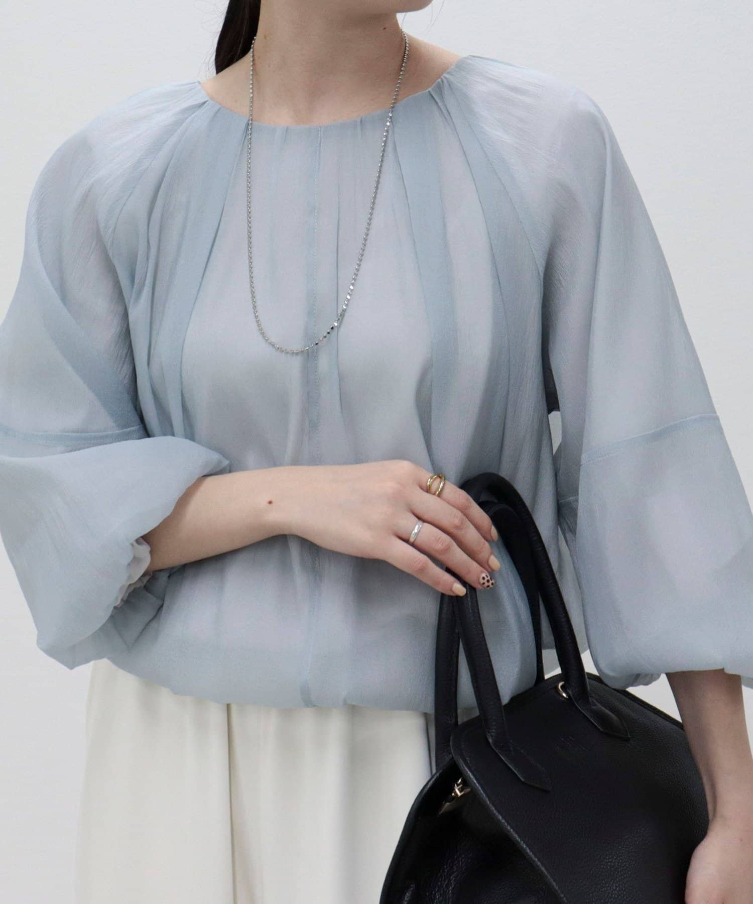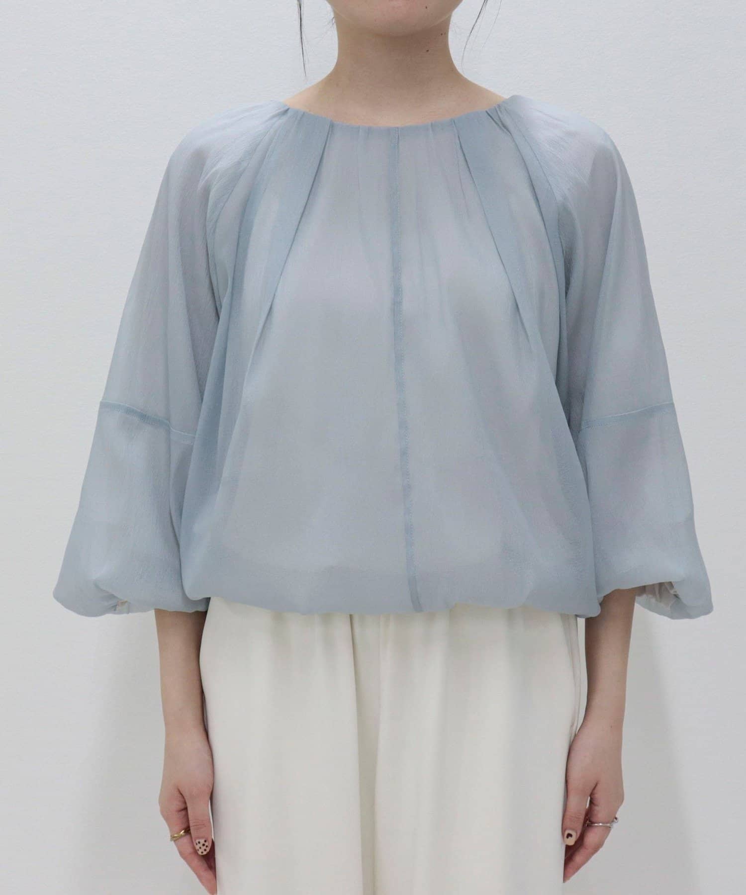 ・シアー素材を使用し、身頃も袖もバルーンデザインに