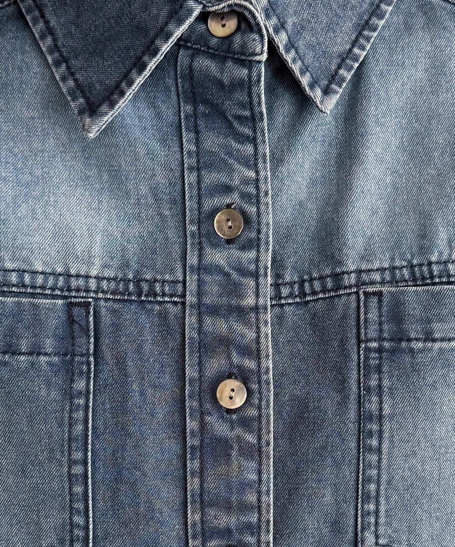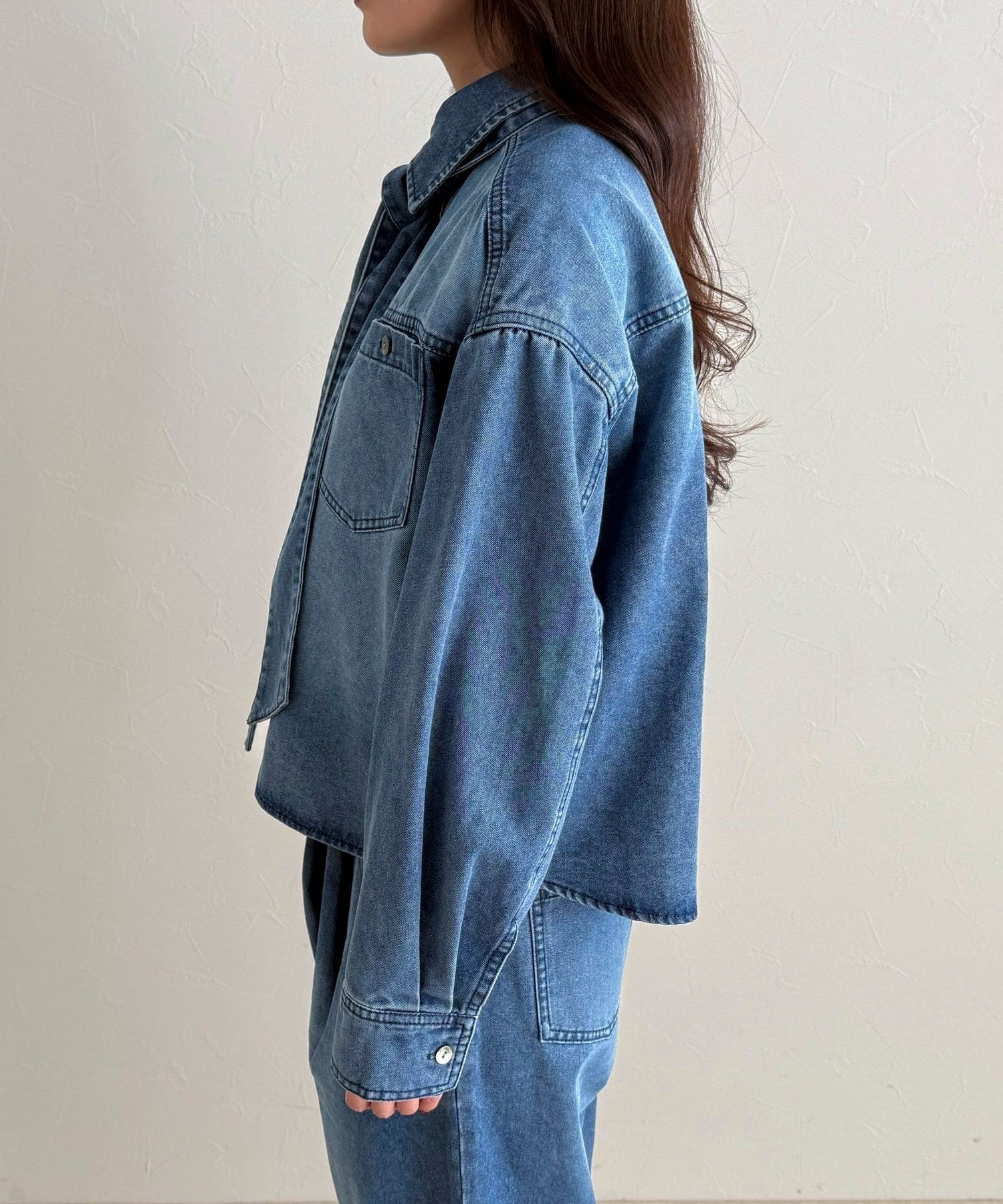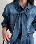 デニムボウタイクロップドシャツ