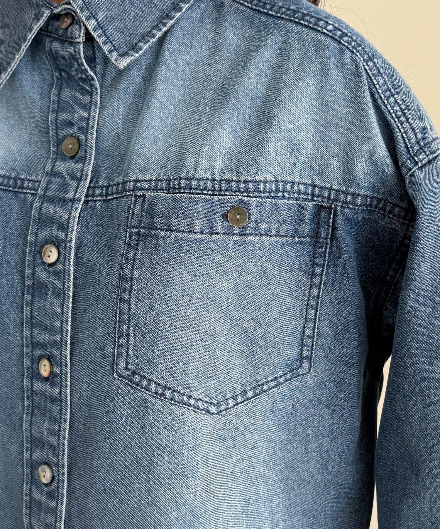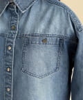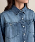 一枚で着映えるデニムボウタイクロップドシャツ