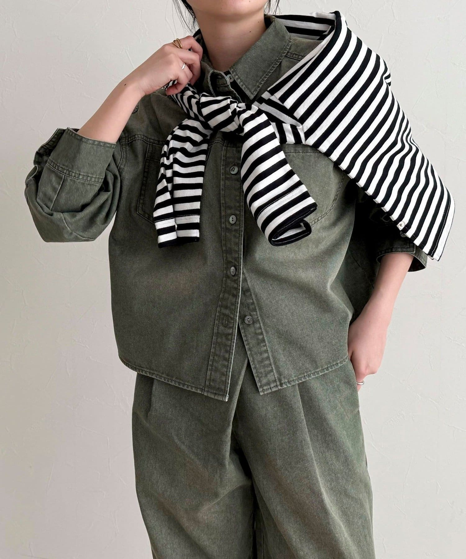・同素材のパンツと合わせれば、統一感のあるスタイリングも楽しめます