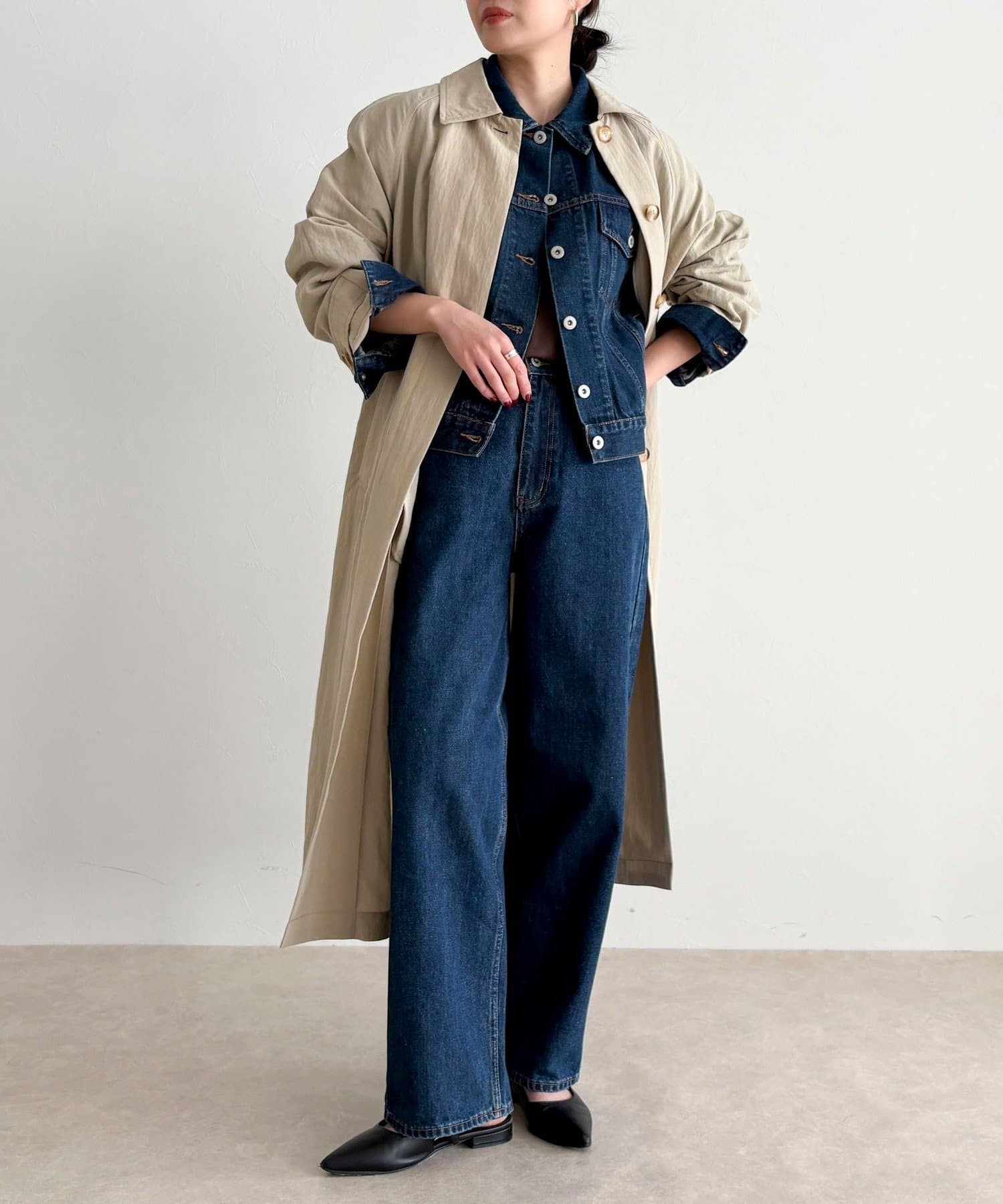 ・同素材のデニムと合わせれば、統一感のあるスタイリングも楽しめます