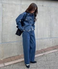 ・ワイドシルエットから裾に向かってすっきりとしたラインを描く、バランスの取りやすいワイドテーパードデニム