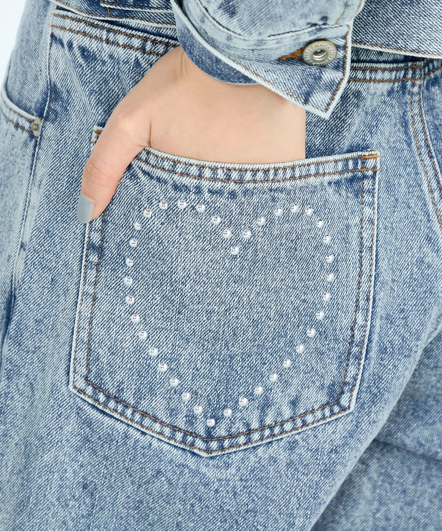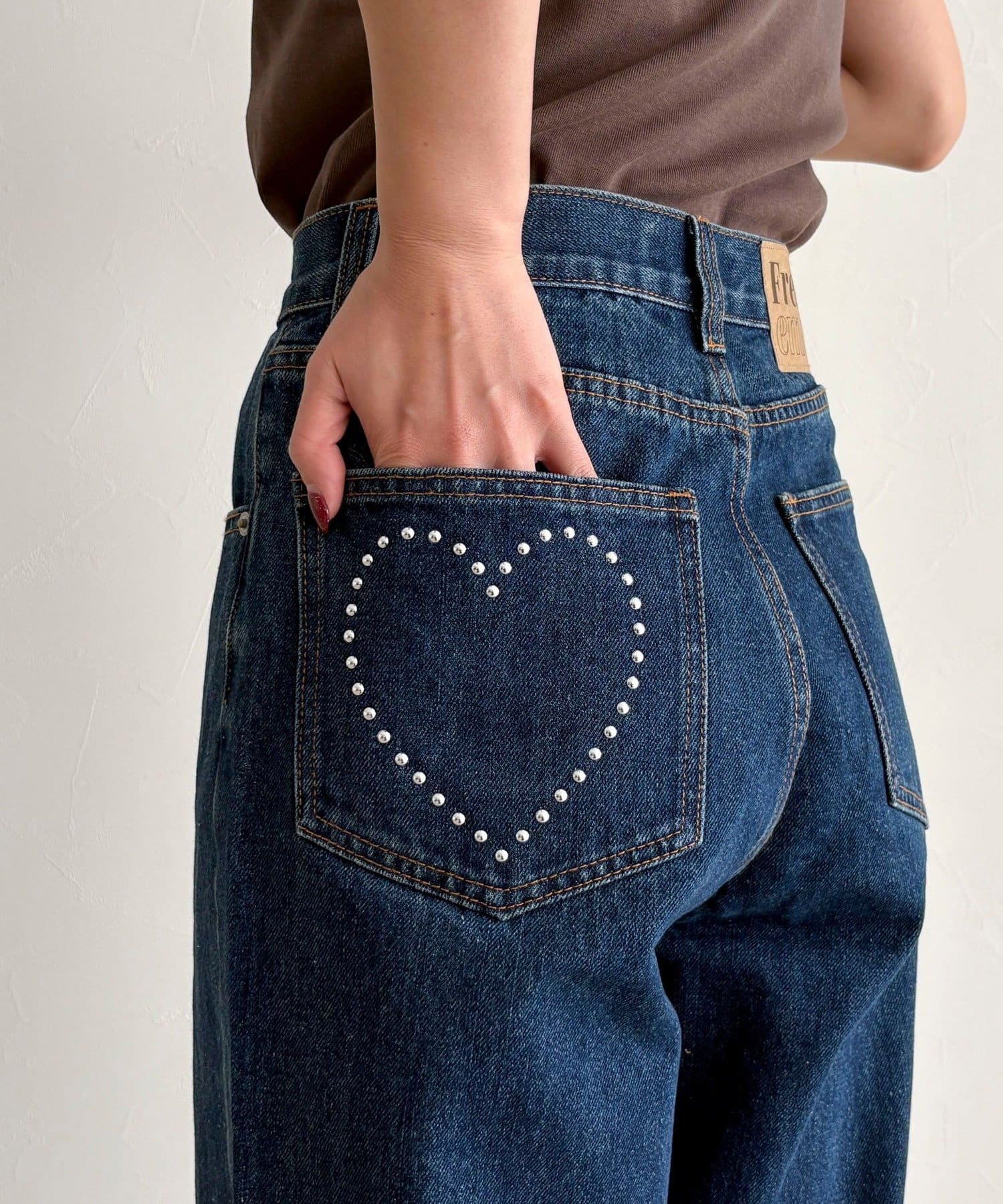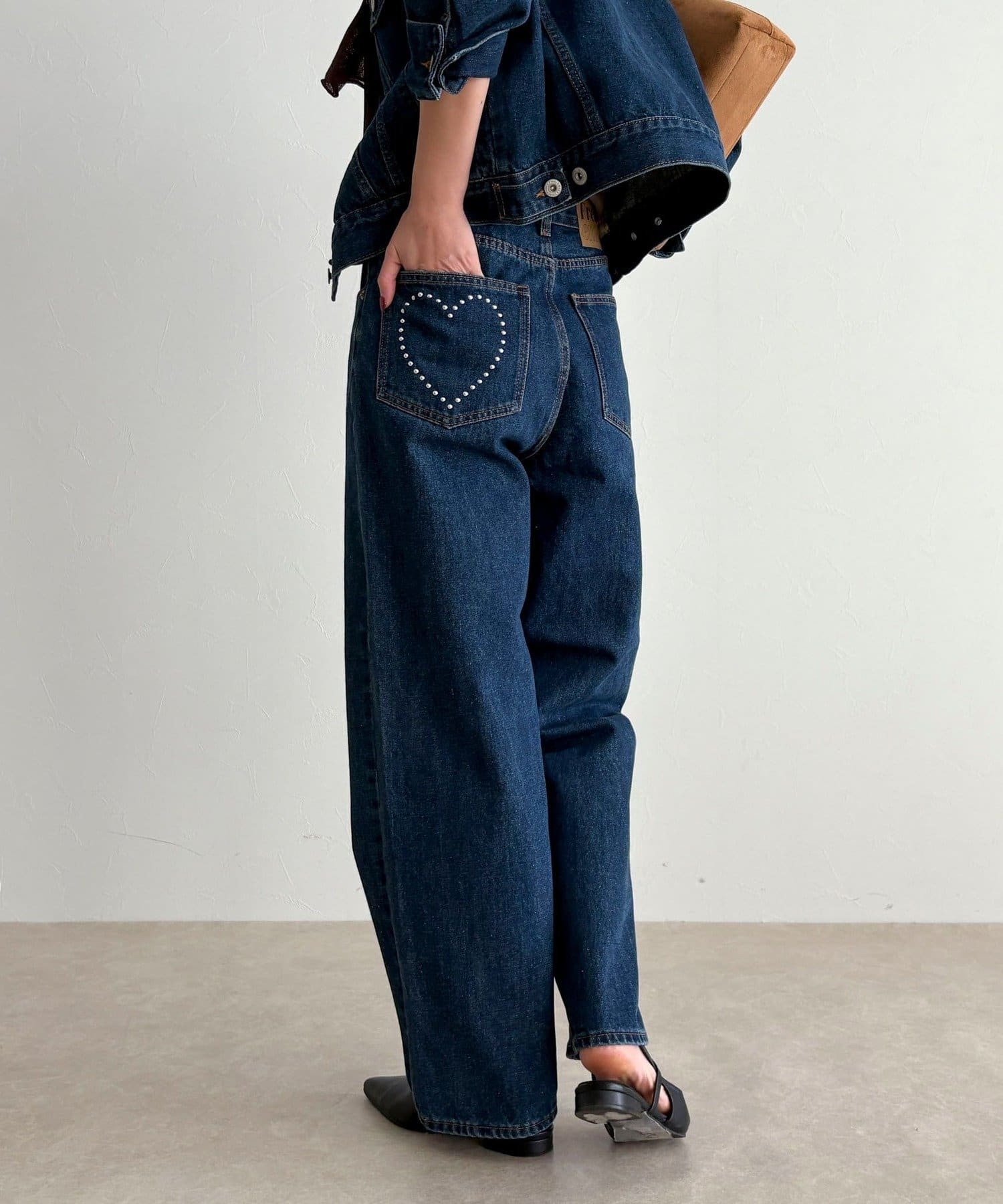 ・後ろポケットにはスタッズであしらったハートモチーフを施し、さりげない遊び心をプラス