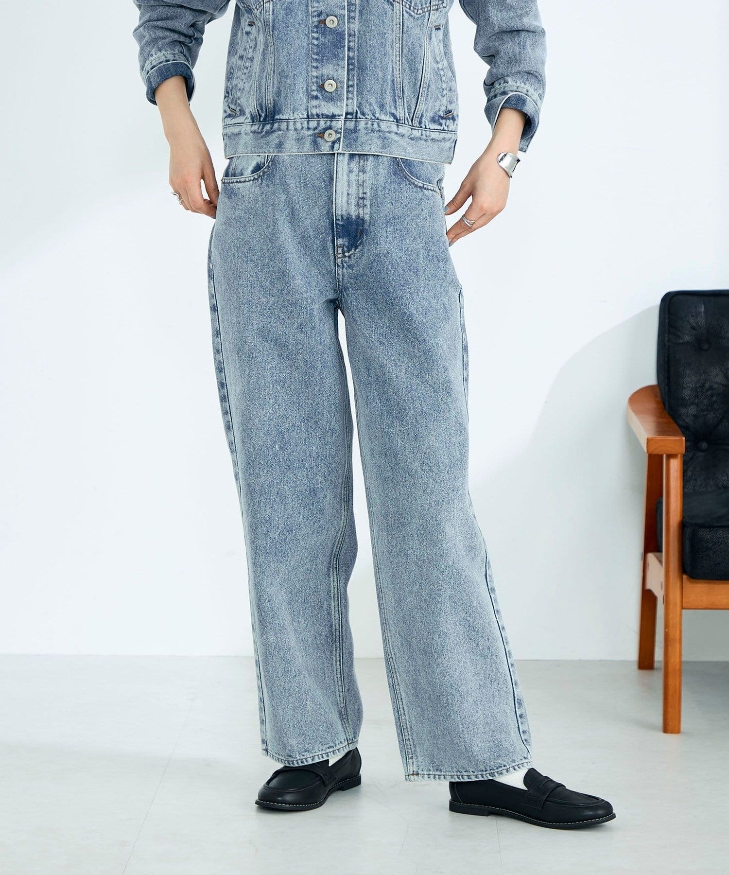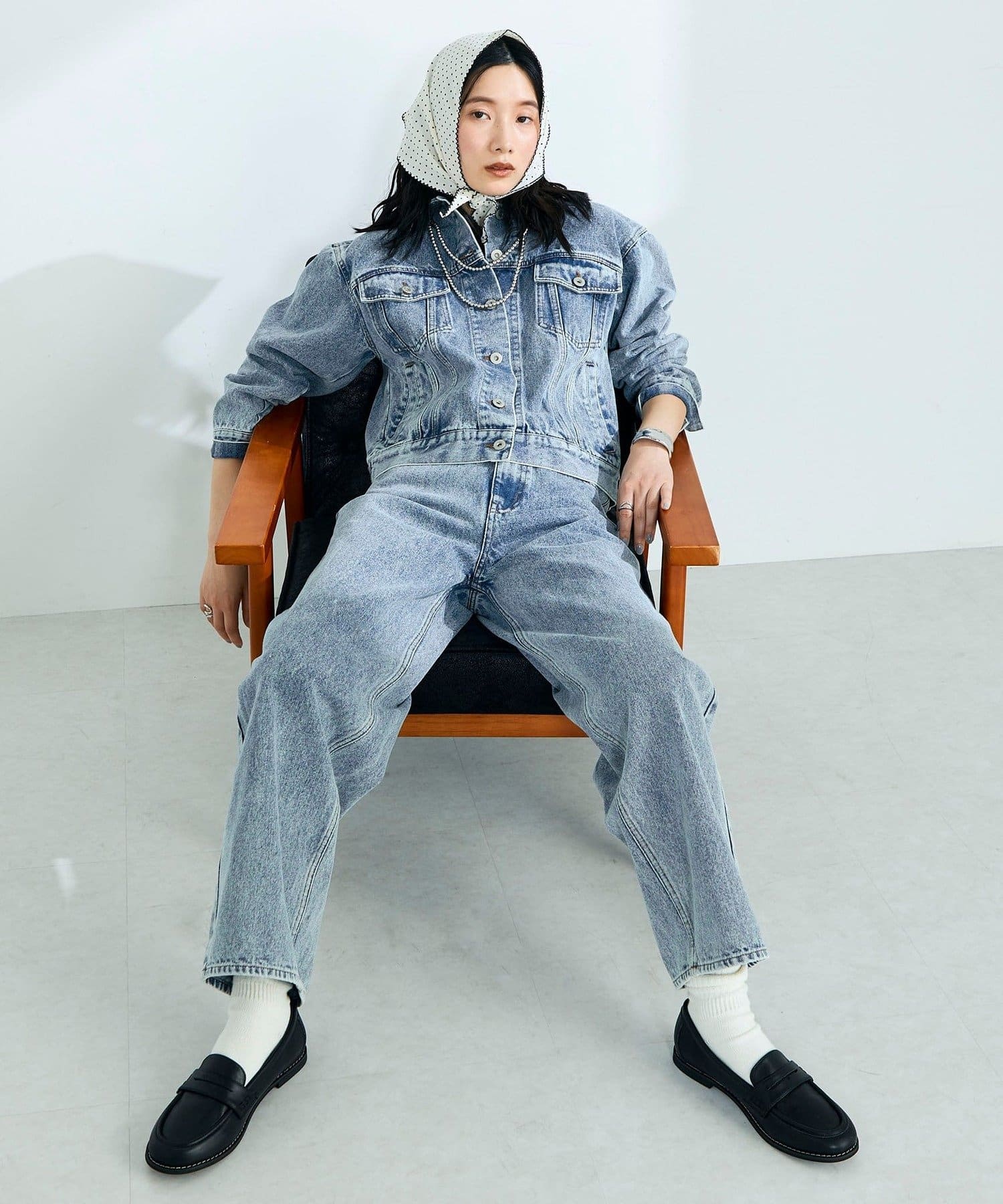 ・同素材のデニムジャケットとのスタイリングもおすすめです
