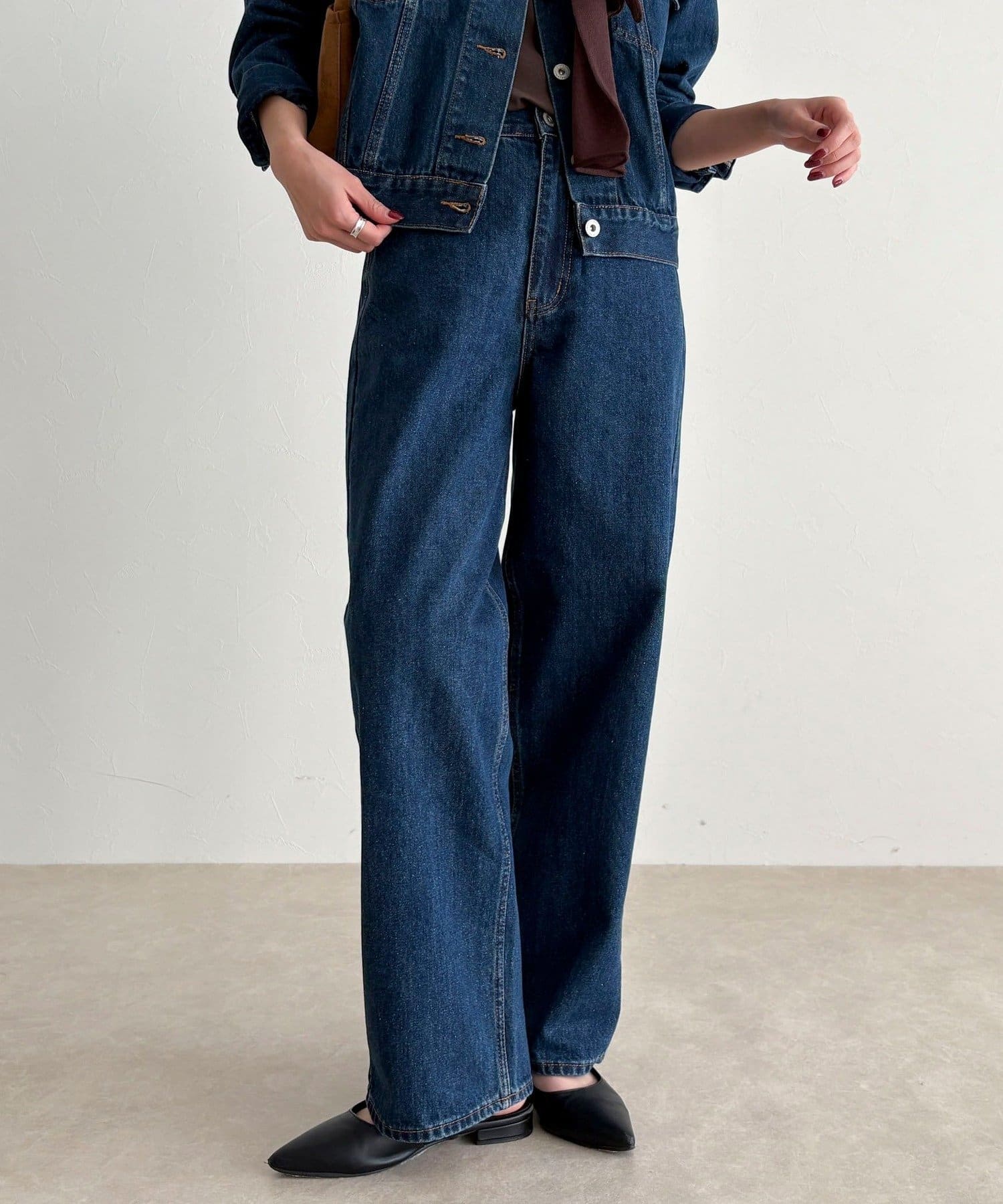 《セットアップ対応》ワイドテーパードデニムパンツ