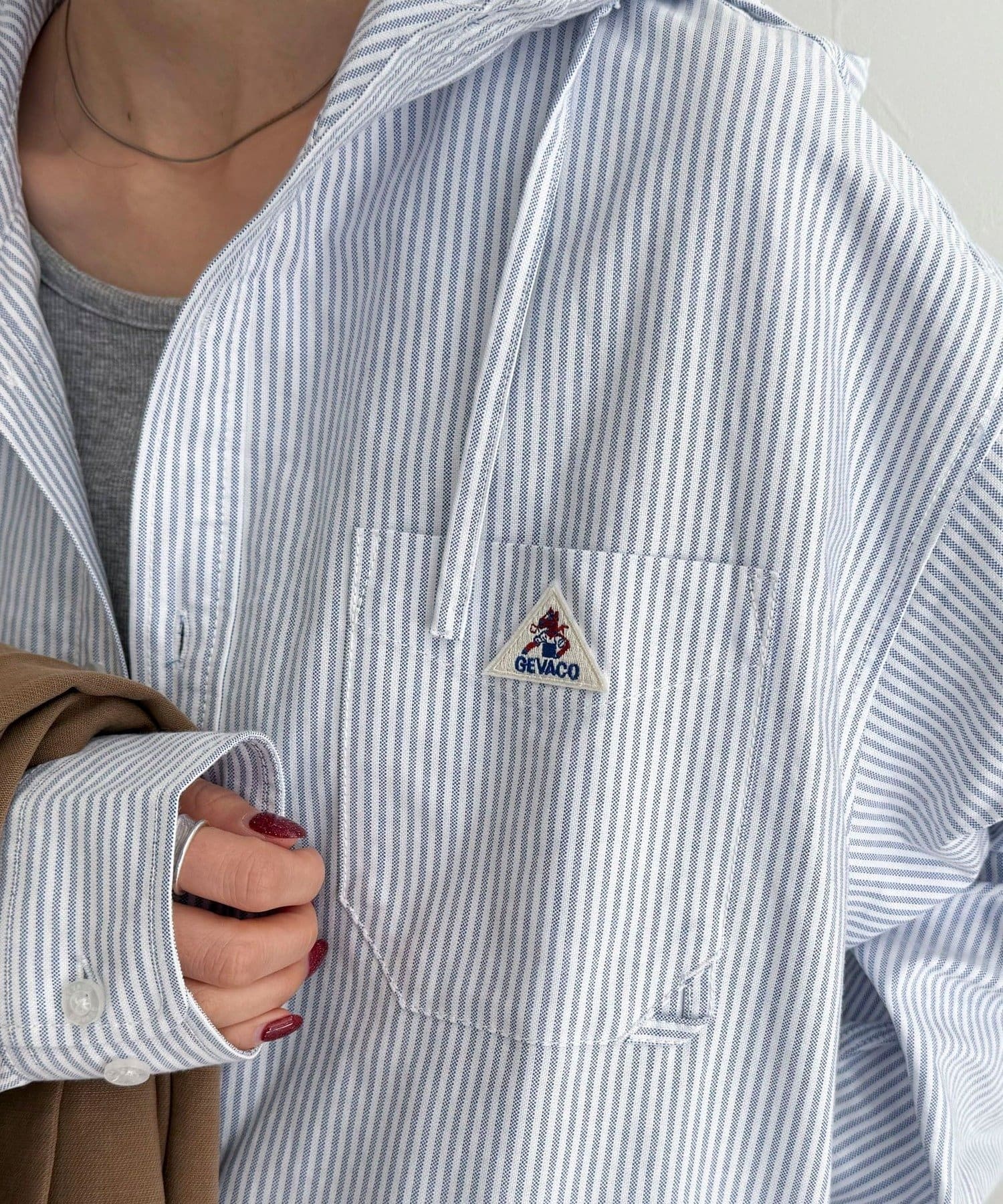 ・胸元にはGEVACO定番の三角ワッペンがアクセントに